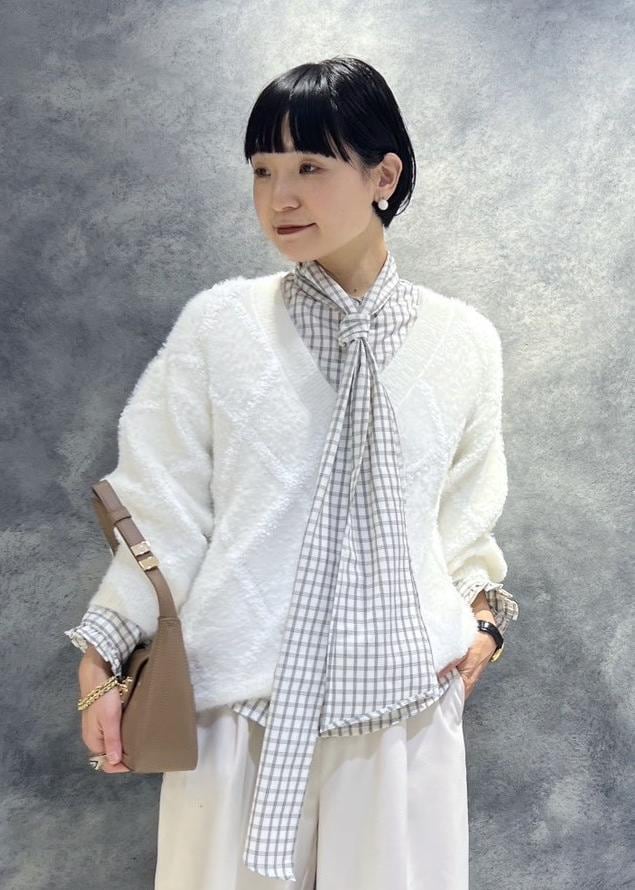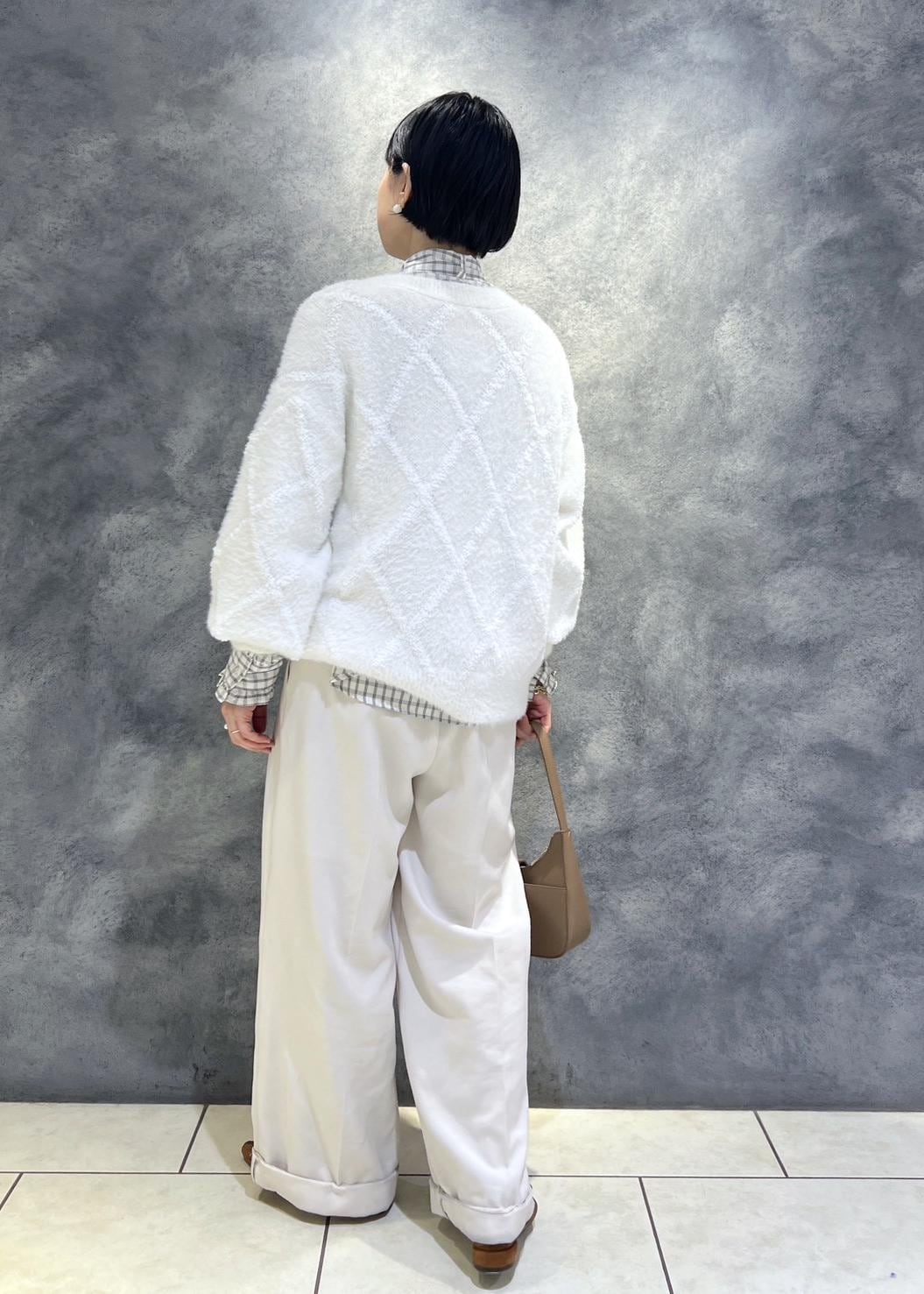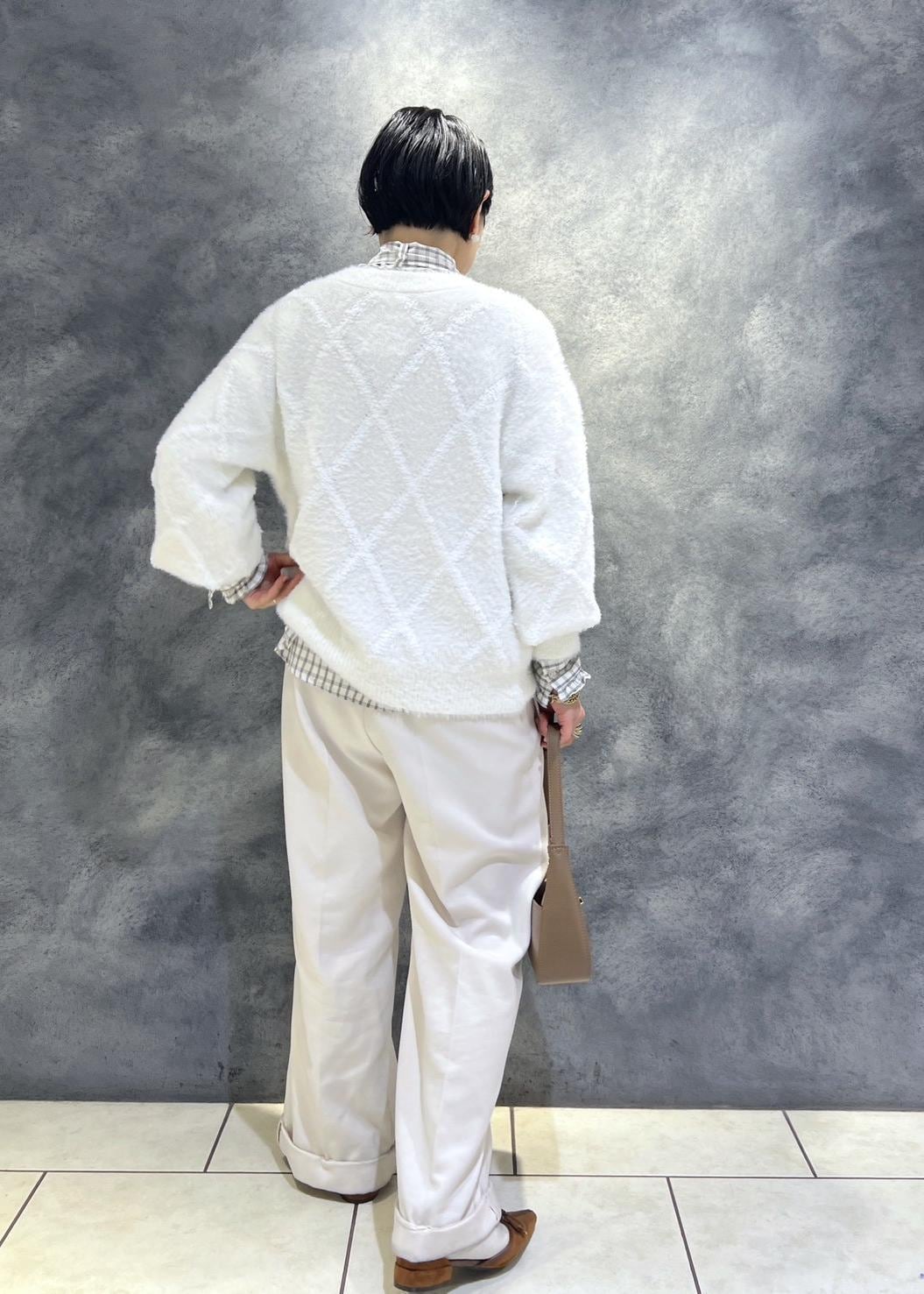 VISアーガイルフェザーニット/2WAY・イージーケアオフホワイト / F¥6,589レビュー154センチでお尻隠れる着丈です。