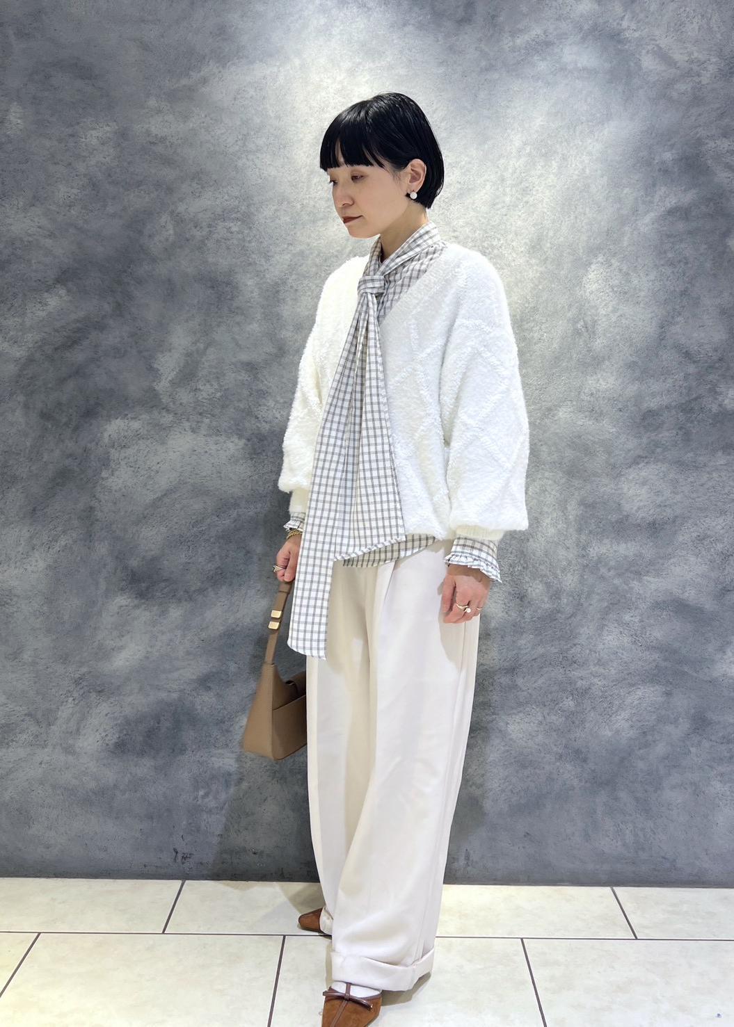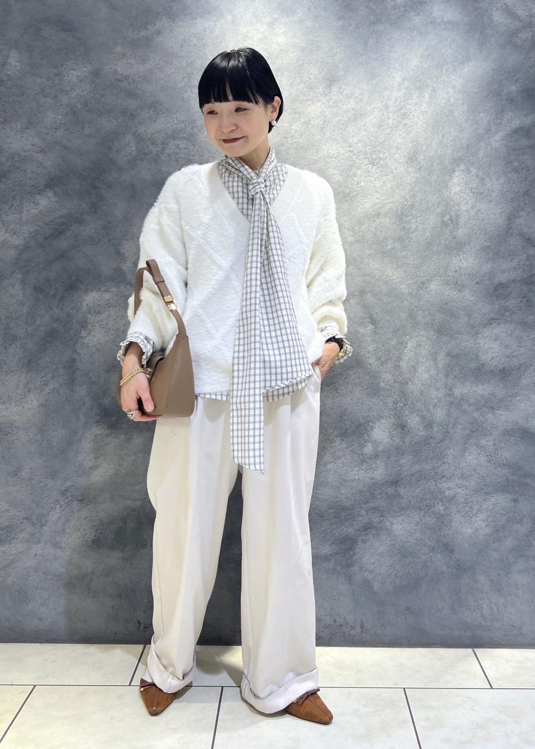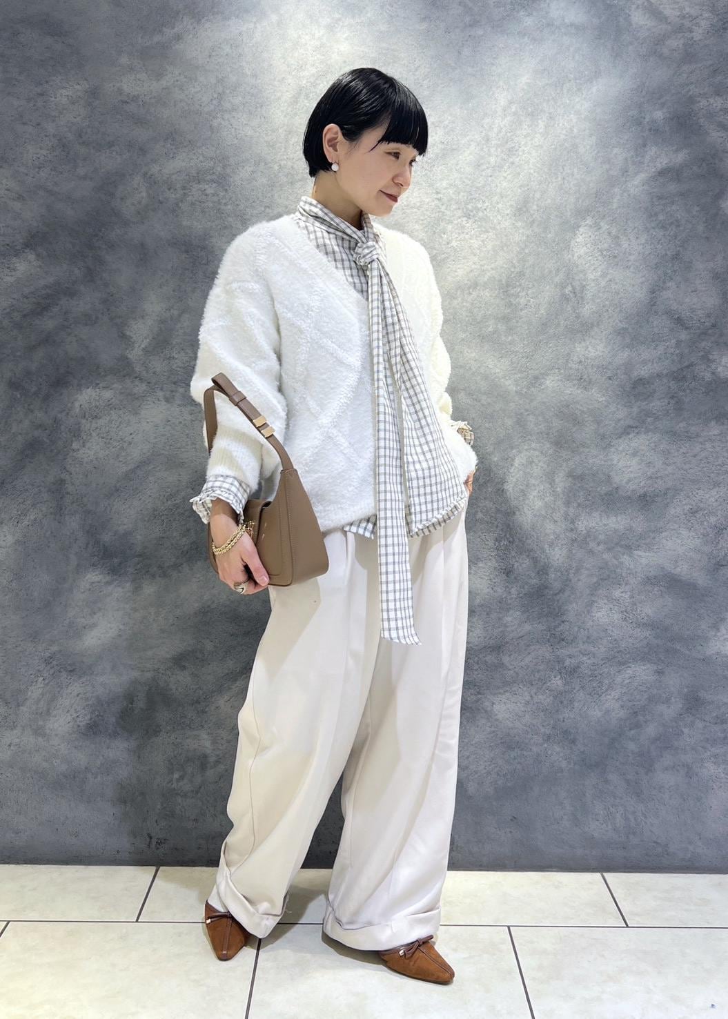 VISアーガイルフェザーニット/2WAY・イージーケアオフホワイト / F¥6,589レビュー154センチでお尻隠れる着丈です。