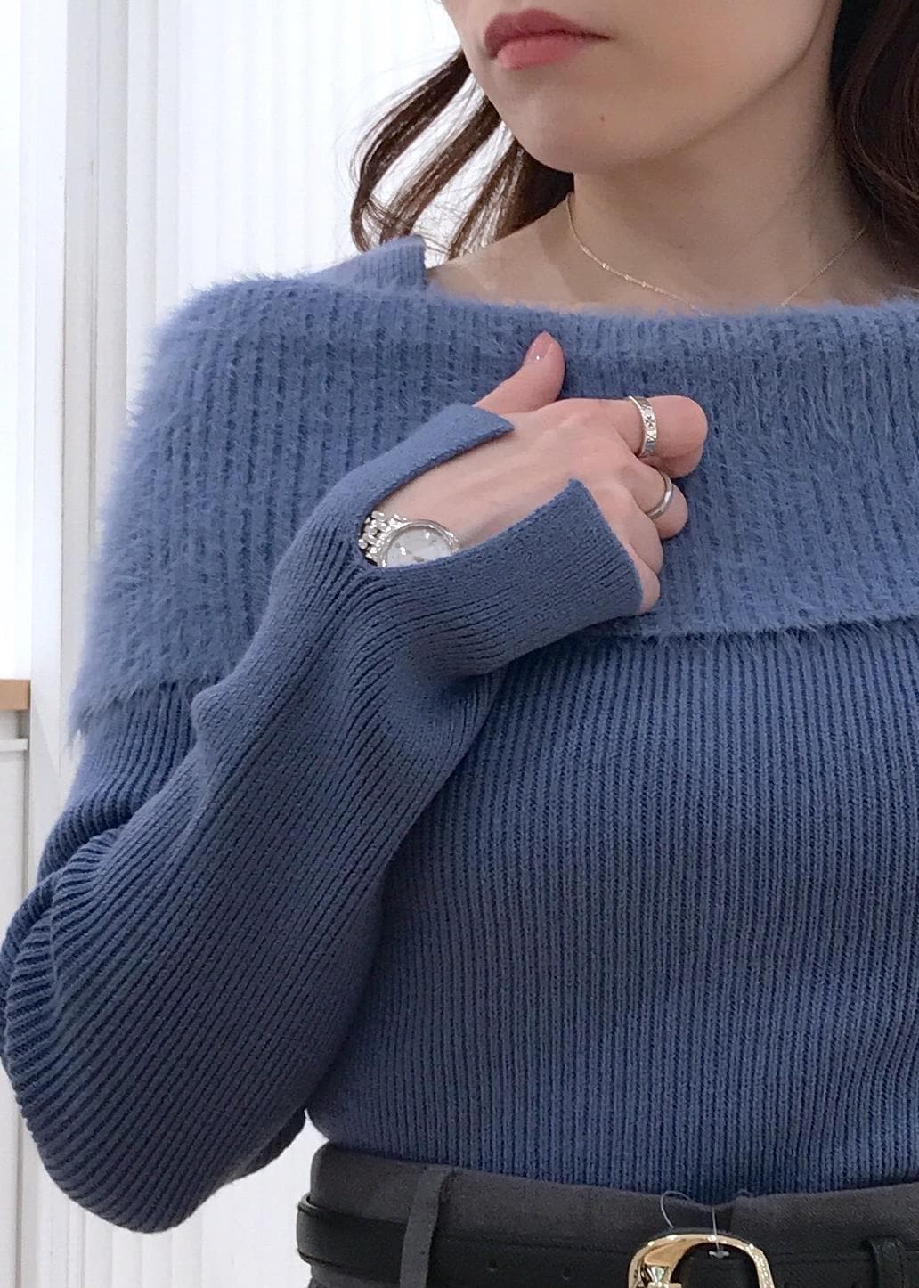 VISフェザーヤーンオフショルもちもちリブニット/イージーケアブルー系 / F¥5,929レビュー着丈はお尻に少し掛かるくらいの長さです。