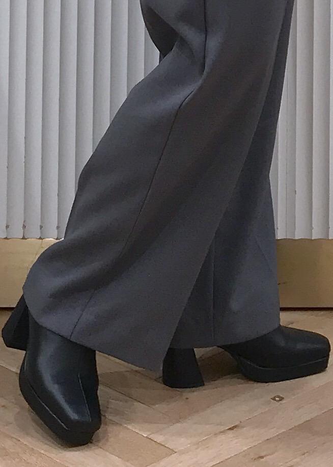 フラットシューズに合わせても引きずりませんが、気になる場合は少しヒールのある靴を合わせるのがおすすめです。