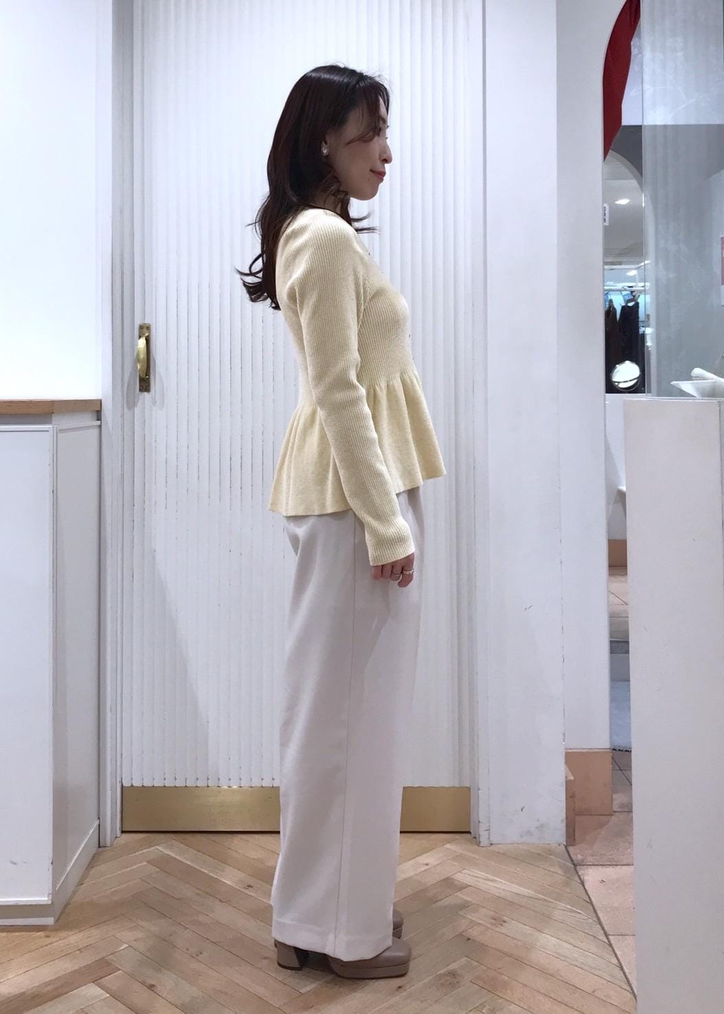 身幅は身体にぴったり沿うサイズ感ですが、みぞおち辺りからのペプラムになっているのでウエスト周りは体型カバーができます。