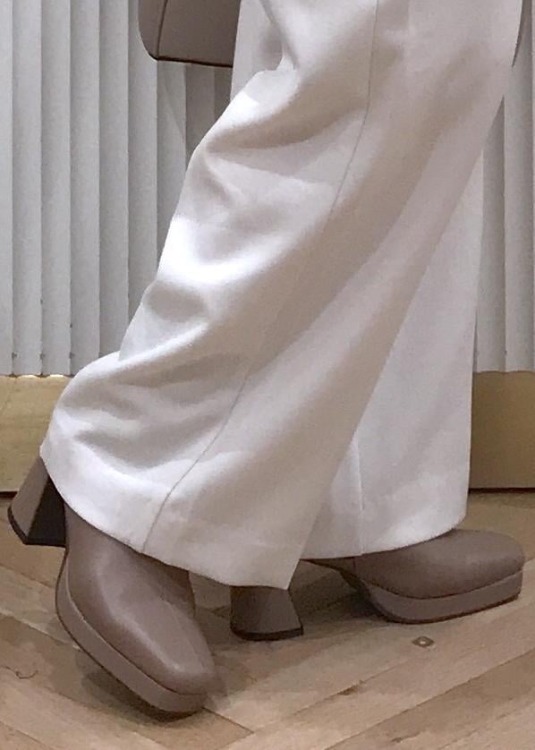 フラットシューズに合わせても引きずりませんが、気になる場合は少しヒールのある靴を合わせるのがおすすめです。