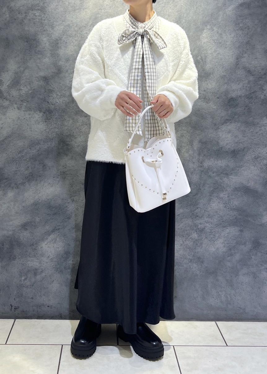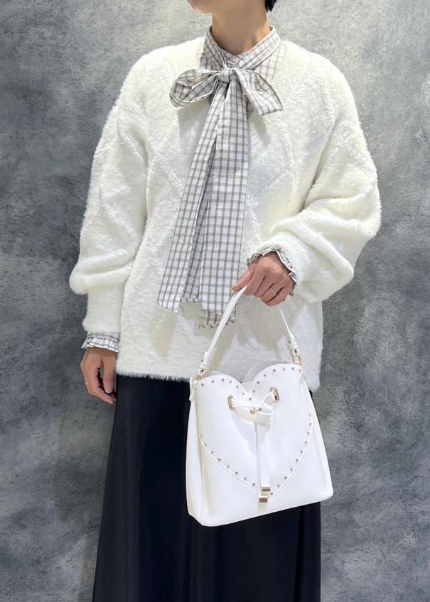 NEW!VISラインストーン&スタッズハートカットバッグオフホワイト / F¥7,909