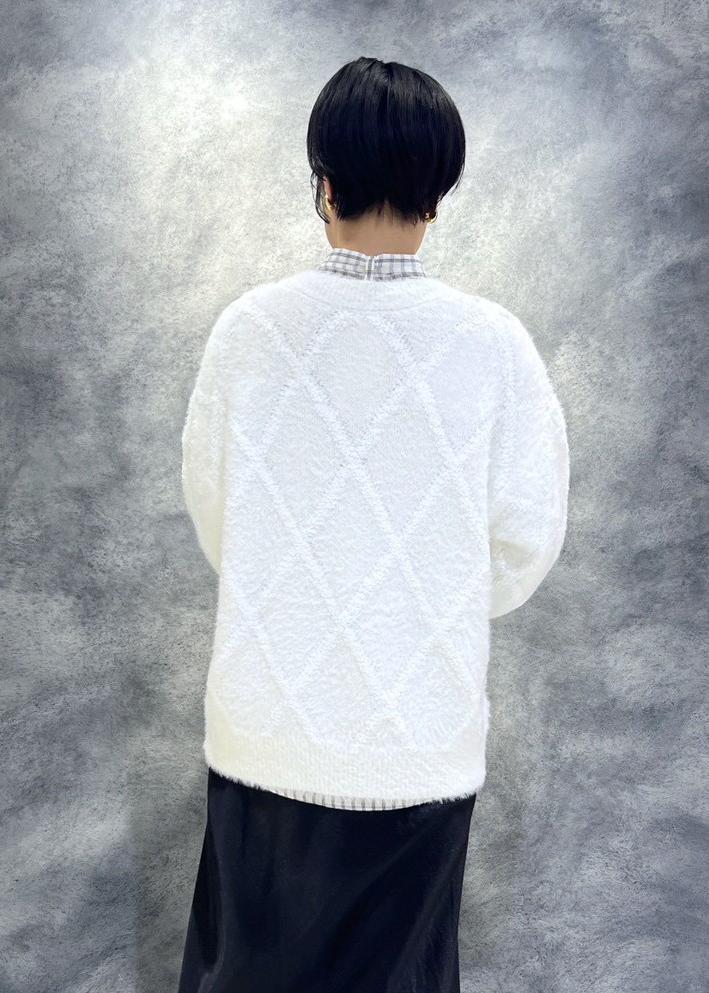 VISアーガイルフェザーニット/2WAY・イージーケアオフホワイト / F¥6,589レビューチクチク感が全く無く柔らかな肌触りです。