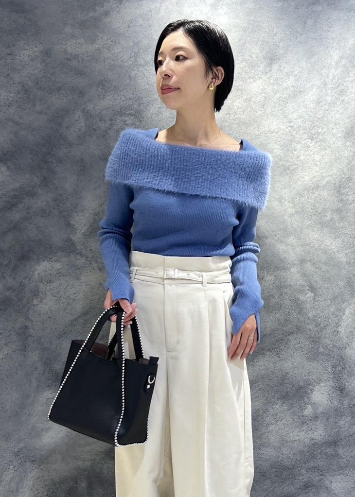 NEW!VISフェザーヤーンオフショルもちもちリブニット/イージーケアブルー系 / F¥5,929レビュー滑らかな素材で肌触り◎です。