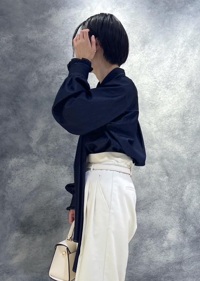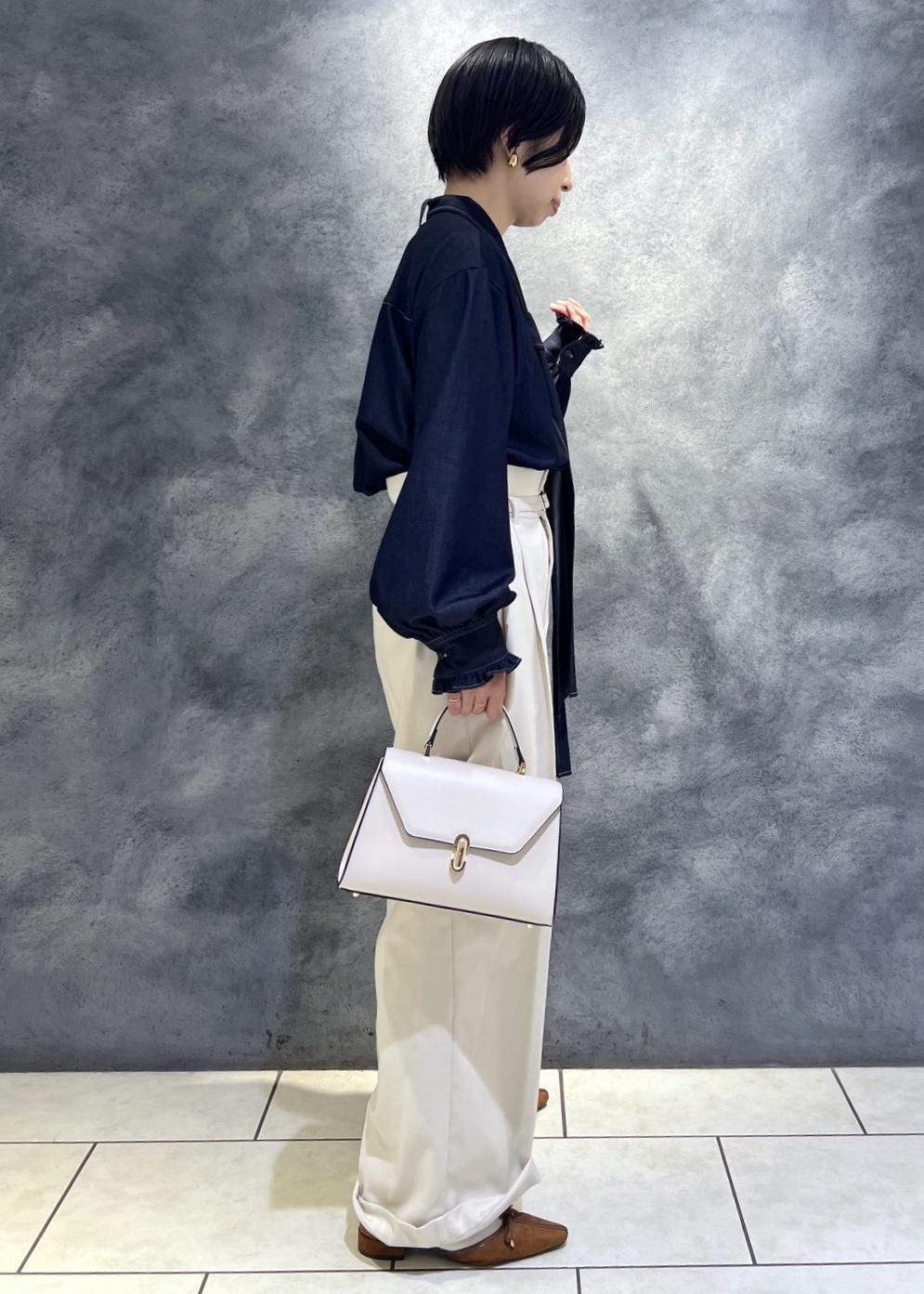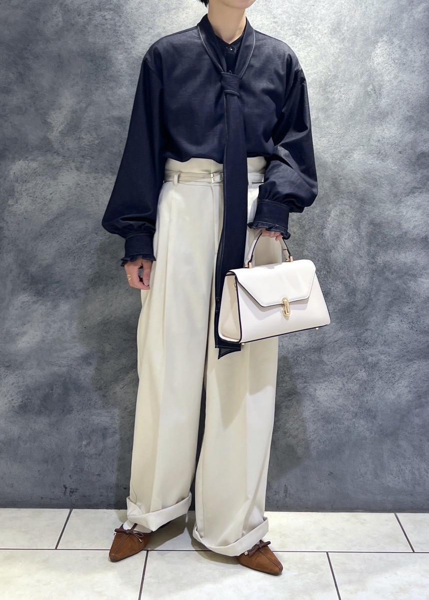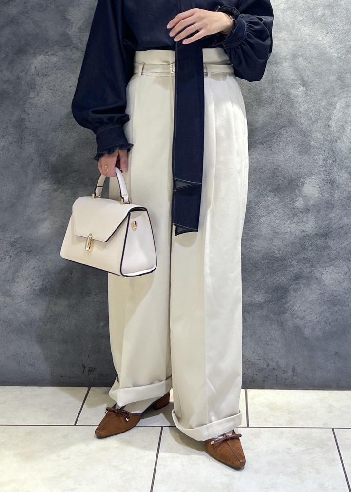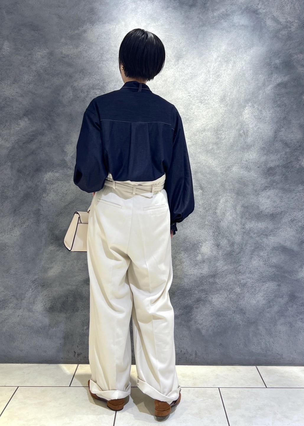 ゆったりしたシルエットで履きたかったので、敢えてワンサイズ上げて裾をロールアップしています。