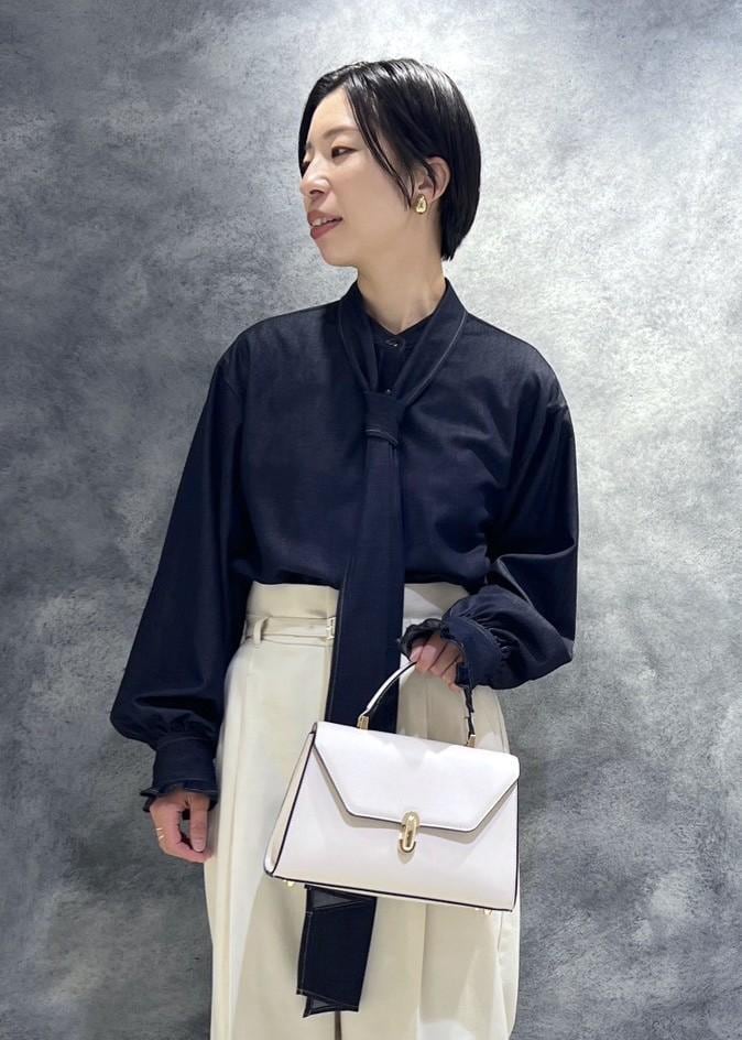 ラウンドデザインなので、ニットとの重ね着にもオススメです。 -