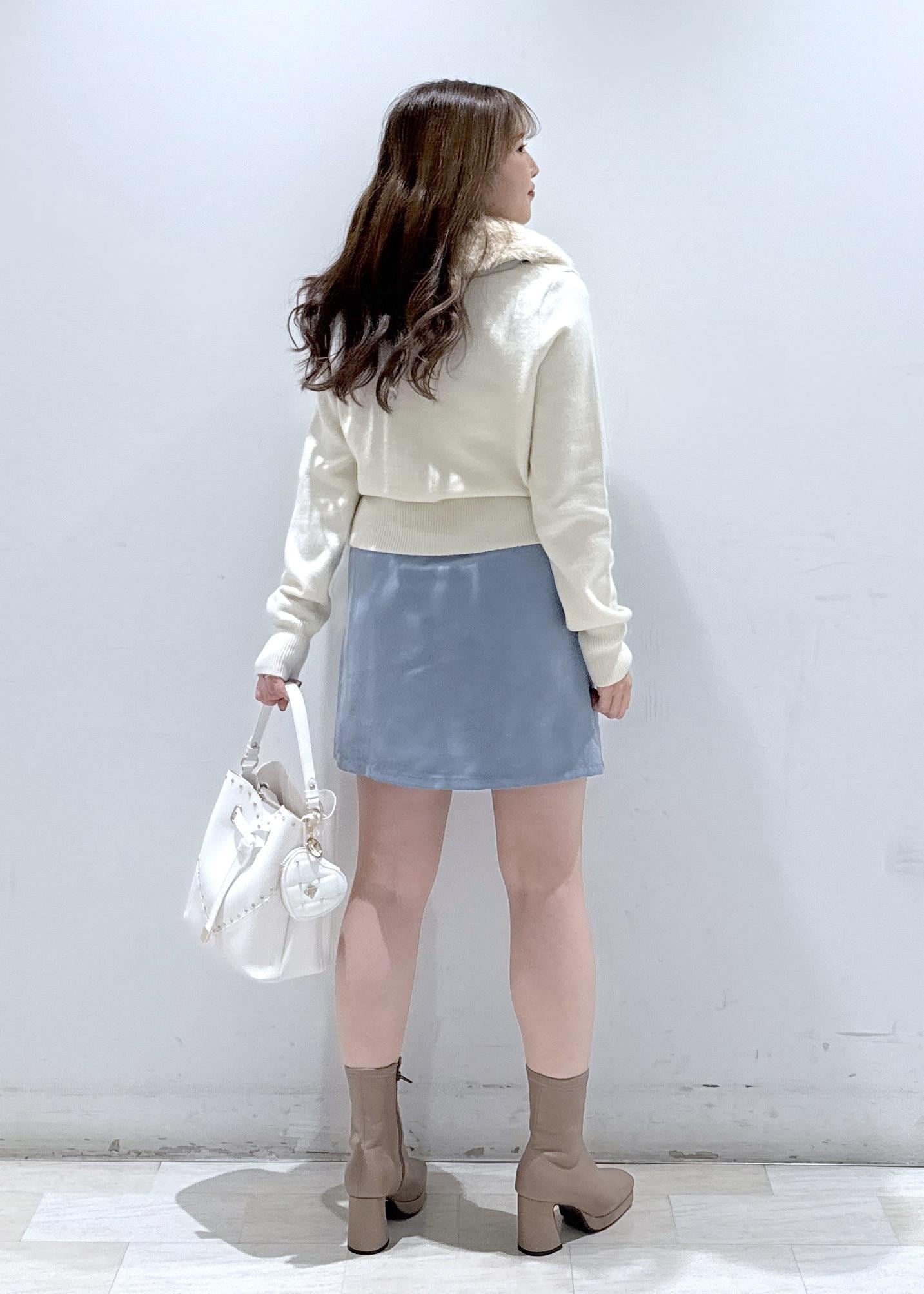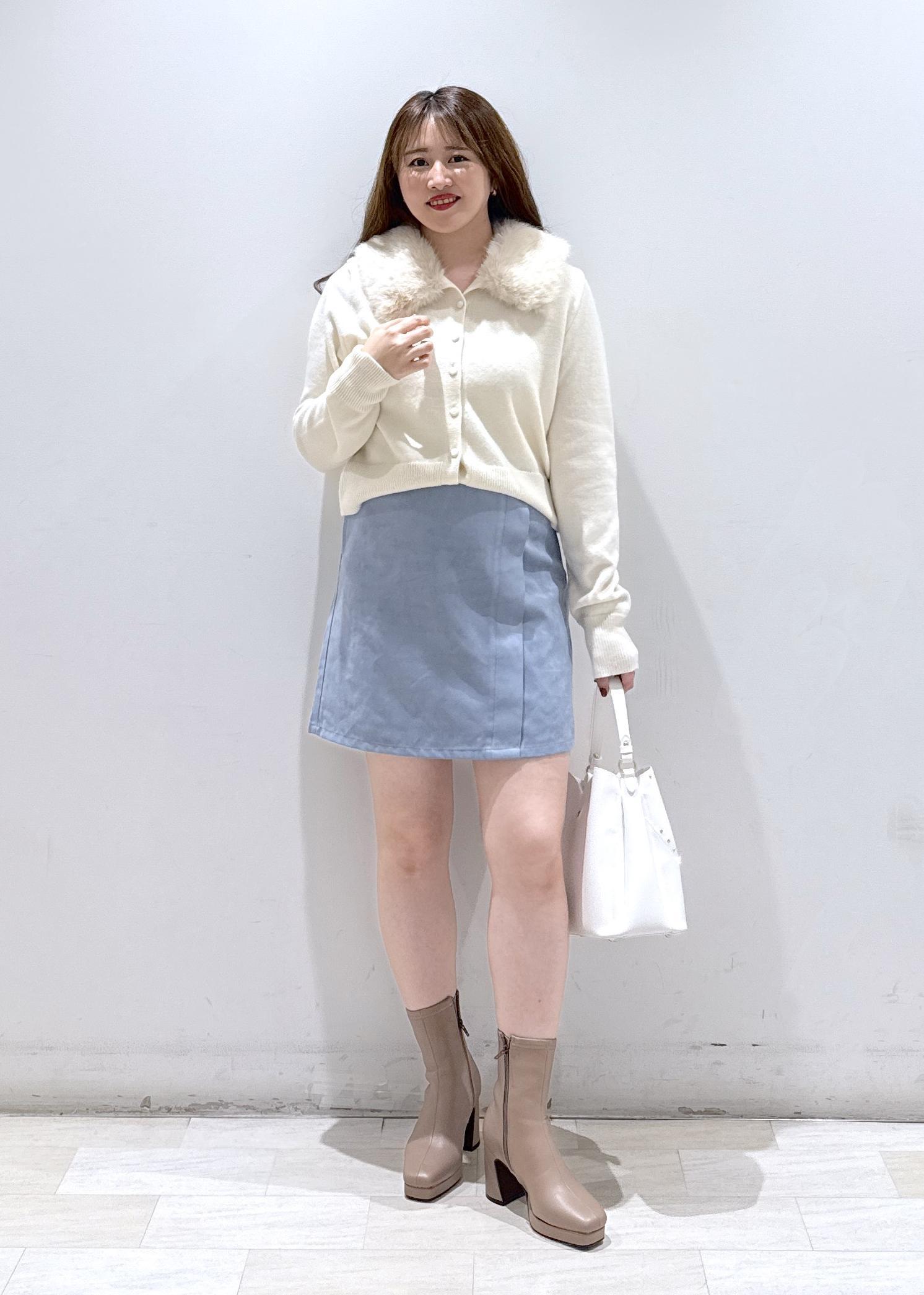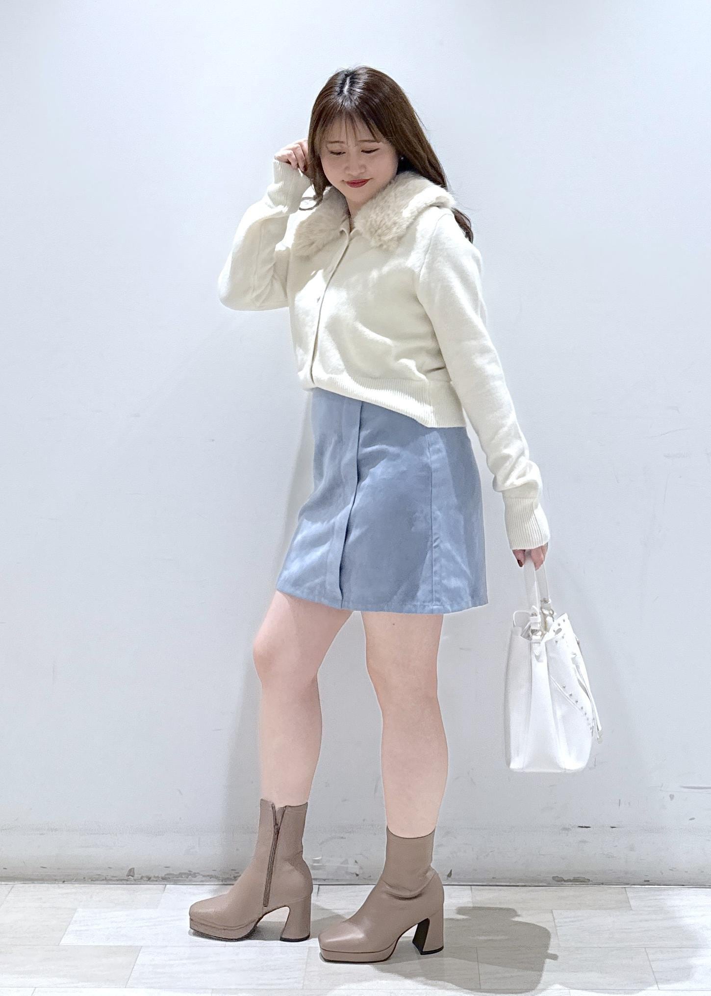 今回は新作で入荷しました2wayで使えるファー付きカーディガンとミニスカートを合わせて、プライベートで使えるクリスマスコーデです*