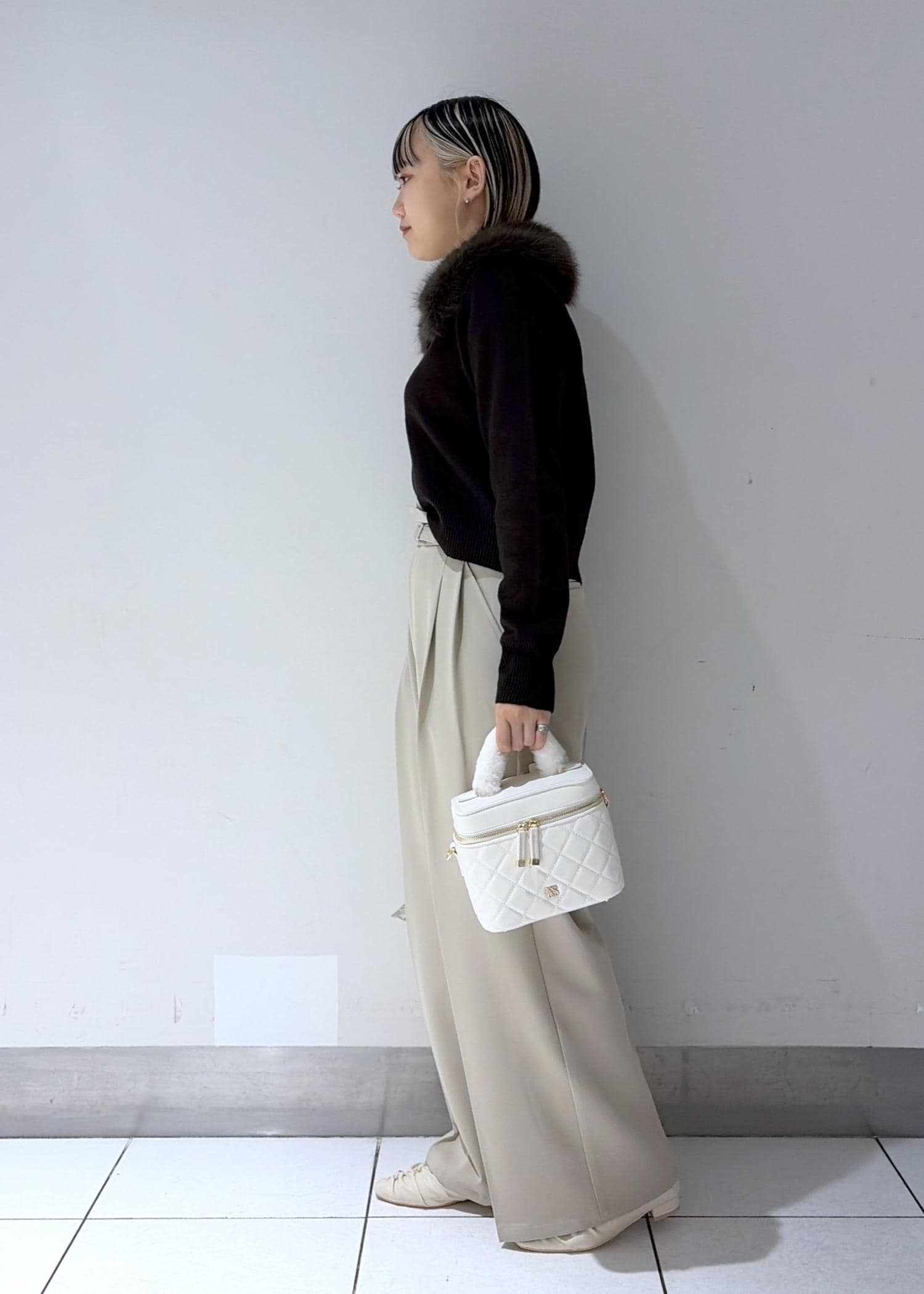 VISファーハンドルキルティング&ツイードバニティバッグ/2WAYオフホワイト / F¥7,909レビュー冬にぴったりなデザインです!