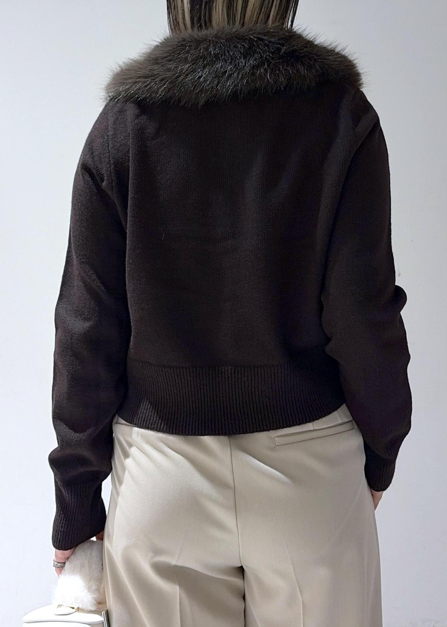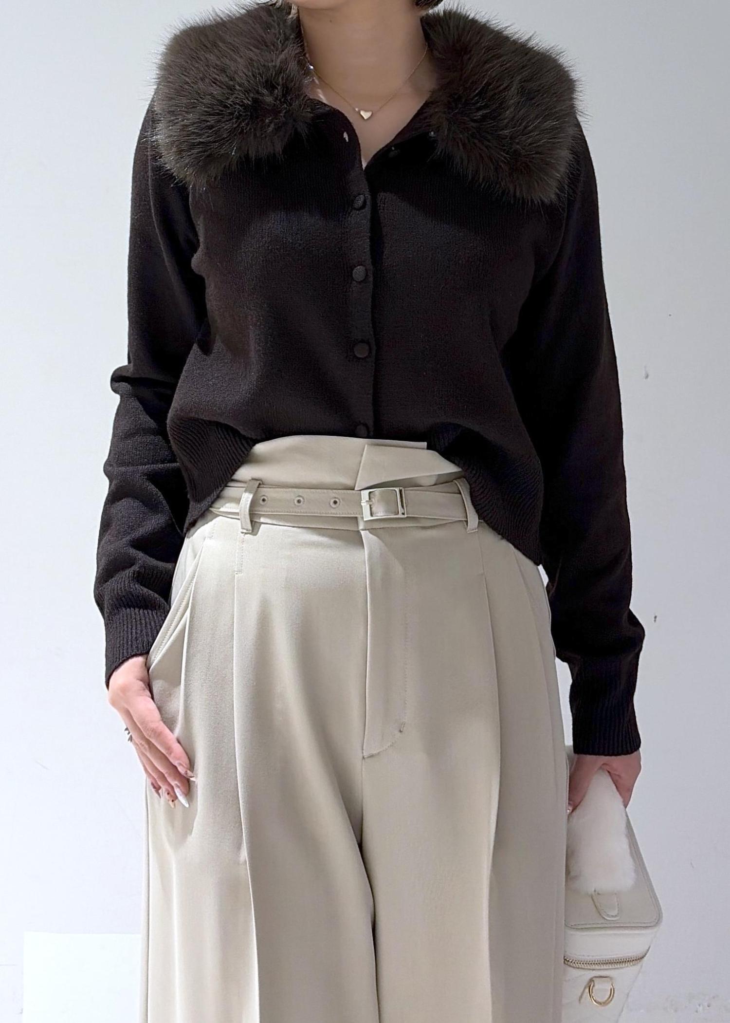 VIS衿ファー取り外しカーディガンダークブラウン / F¥6,589レビューふわふわのファーが顔の近くにあるので、