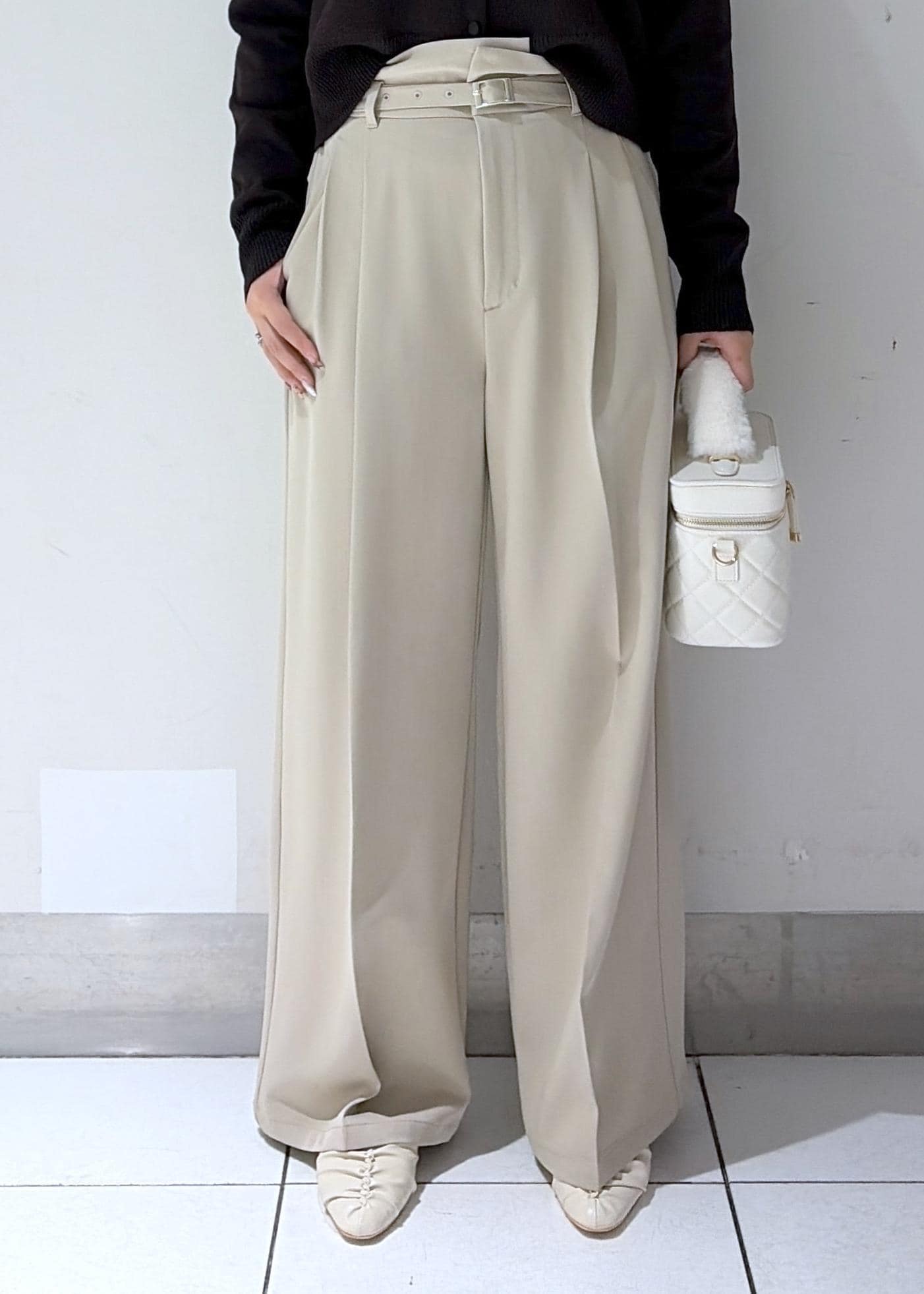 VISベルトディテールタックワイドパンツ/イージーケアベージュ / M¥6,589レビュー160cmでMサイズを着用しました。