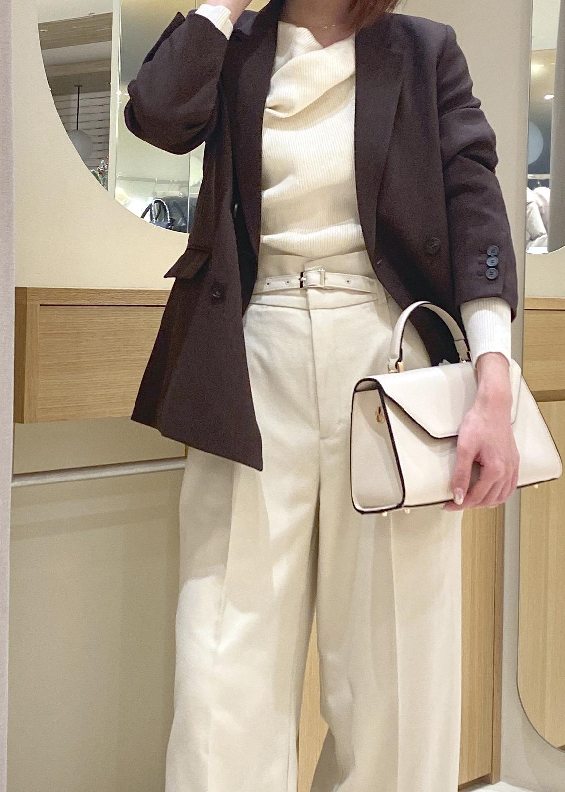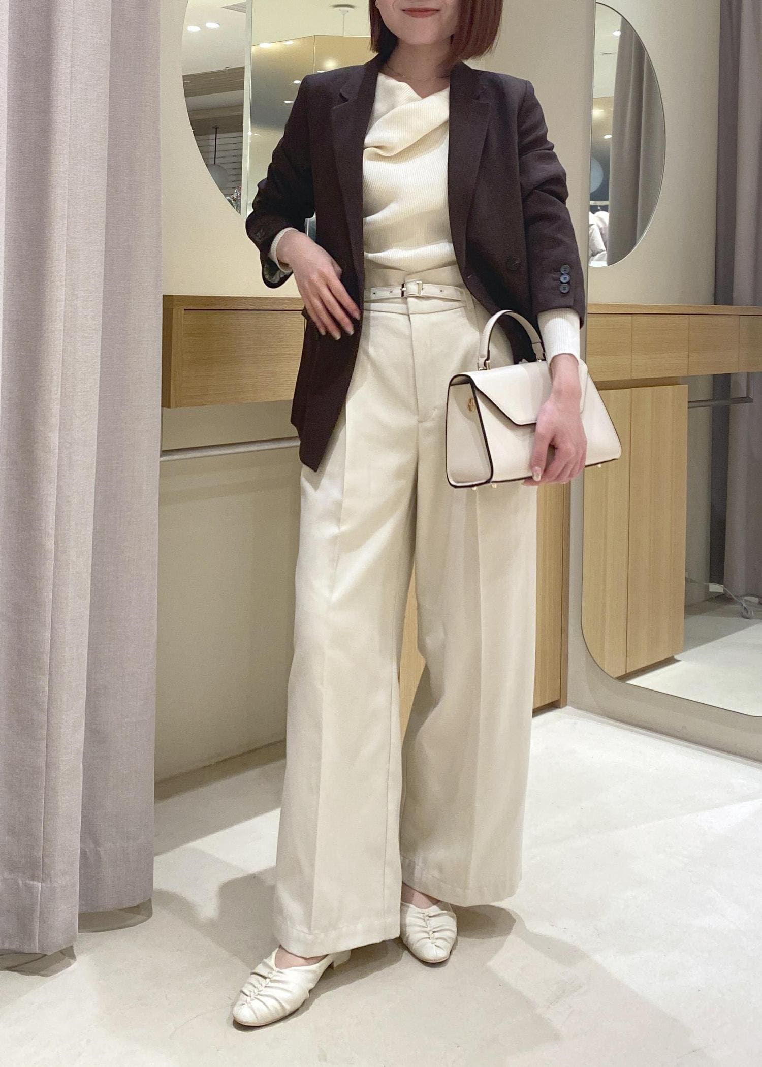 ジャケットを脱ぐとオールホワイトになる、オフィスカジュアルコーデです!