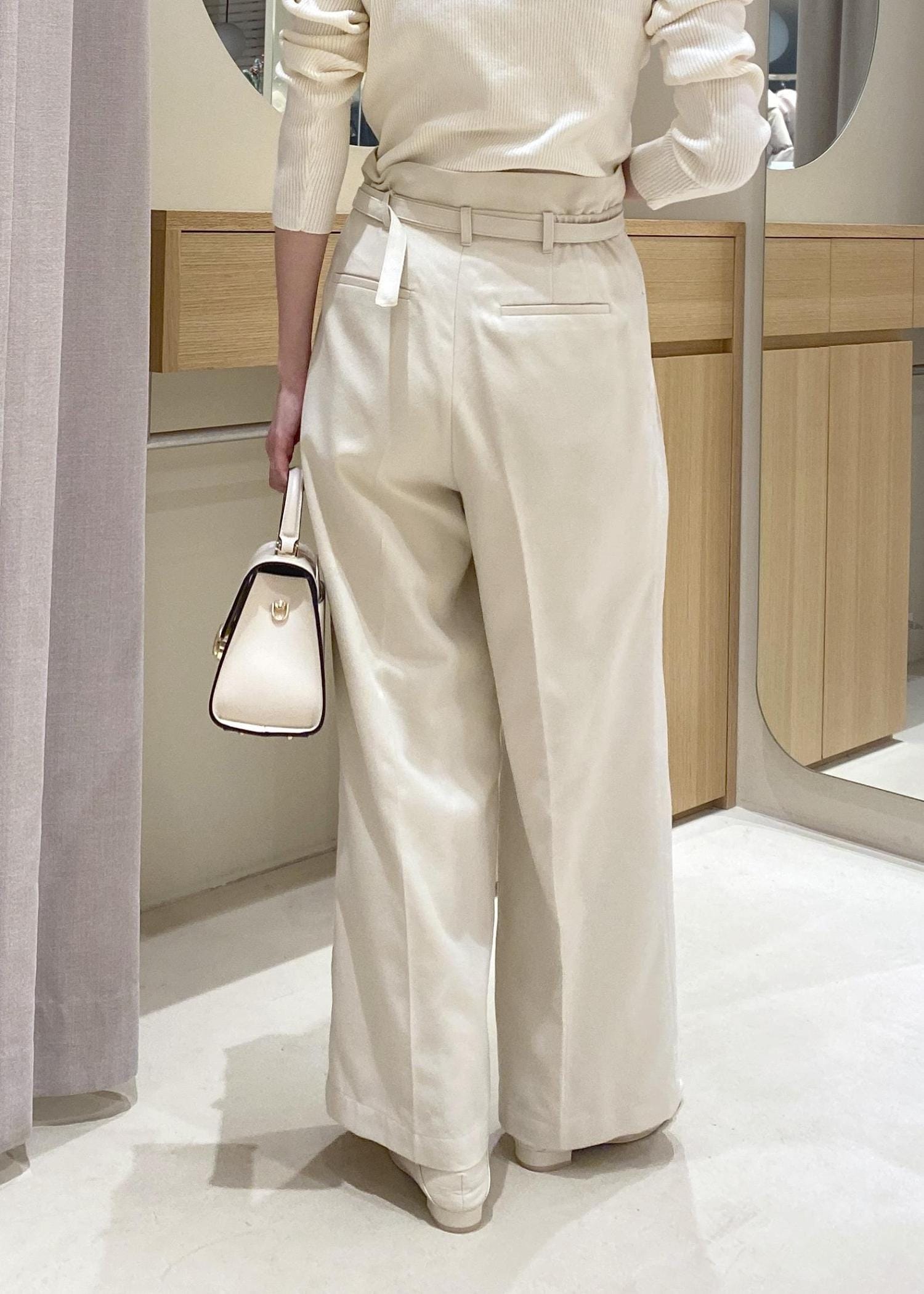 ベルトでウエストマークが叶い、自然に脚長効果に◎