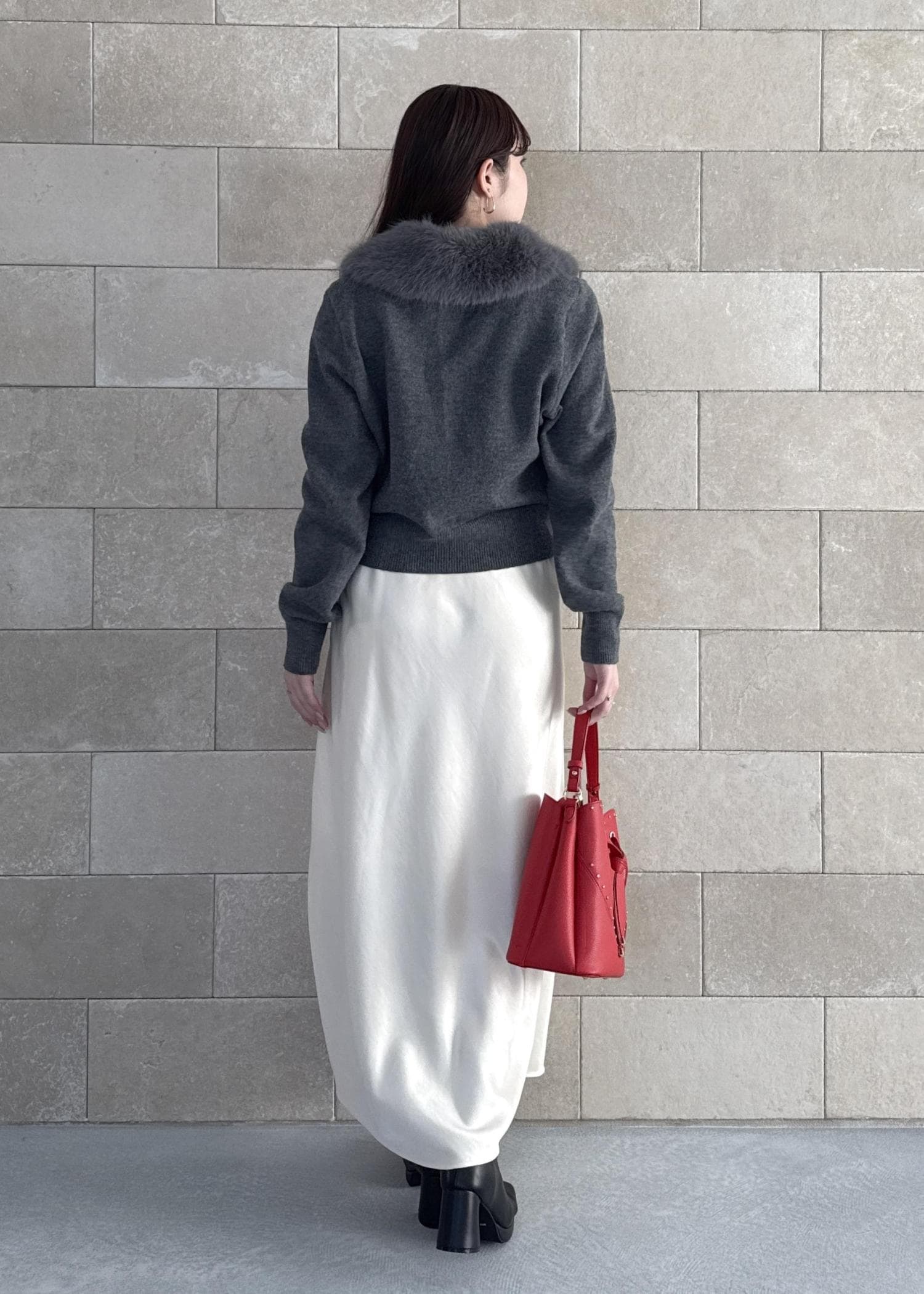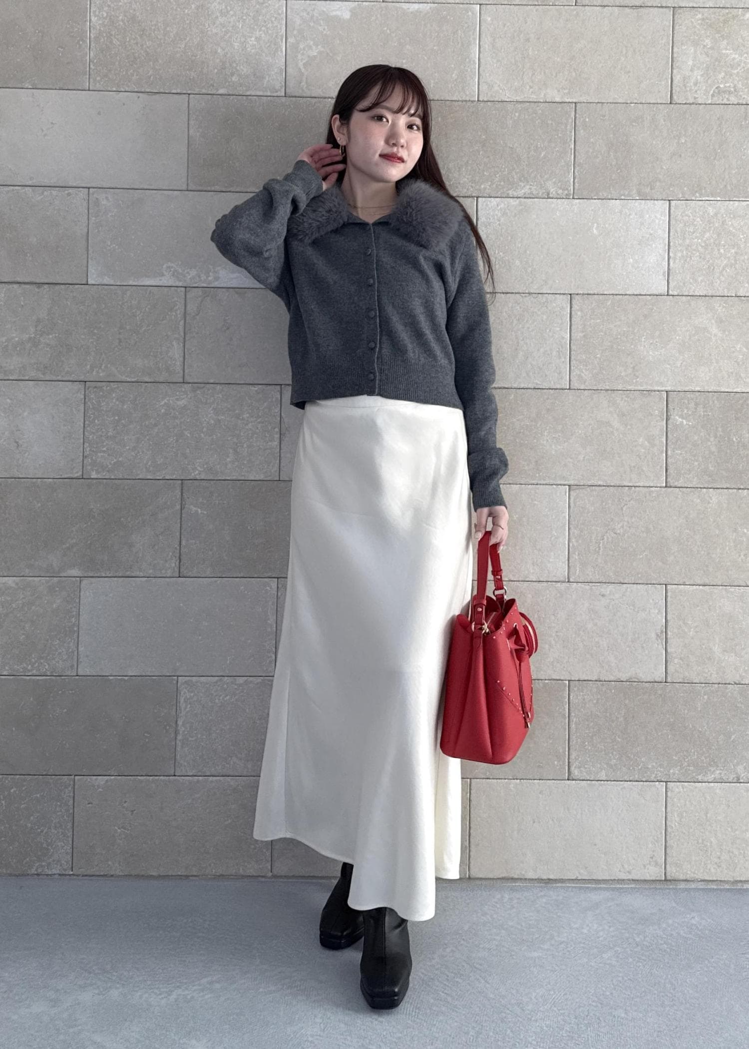 光沢感ある艶やかなスカートで、しっかり裏地もついているため、透け感など気になりにくいです◎ -