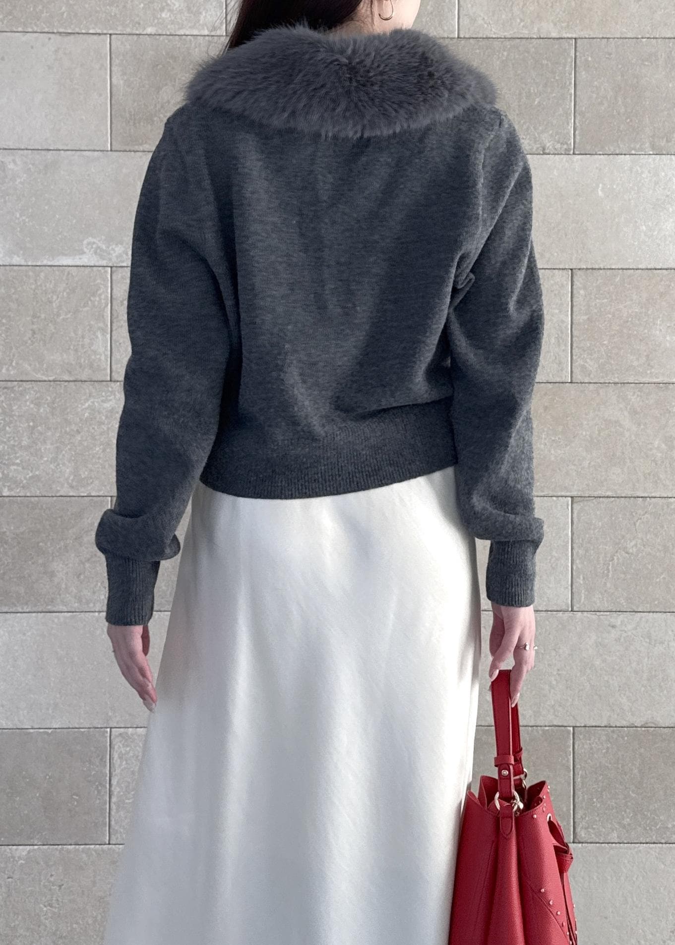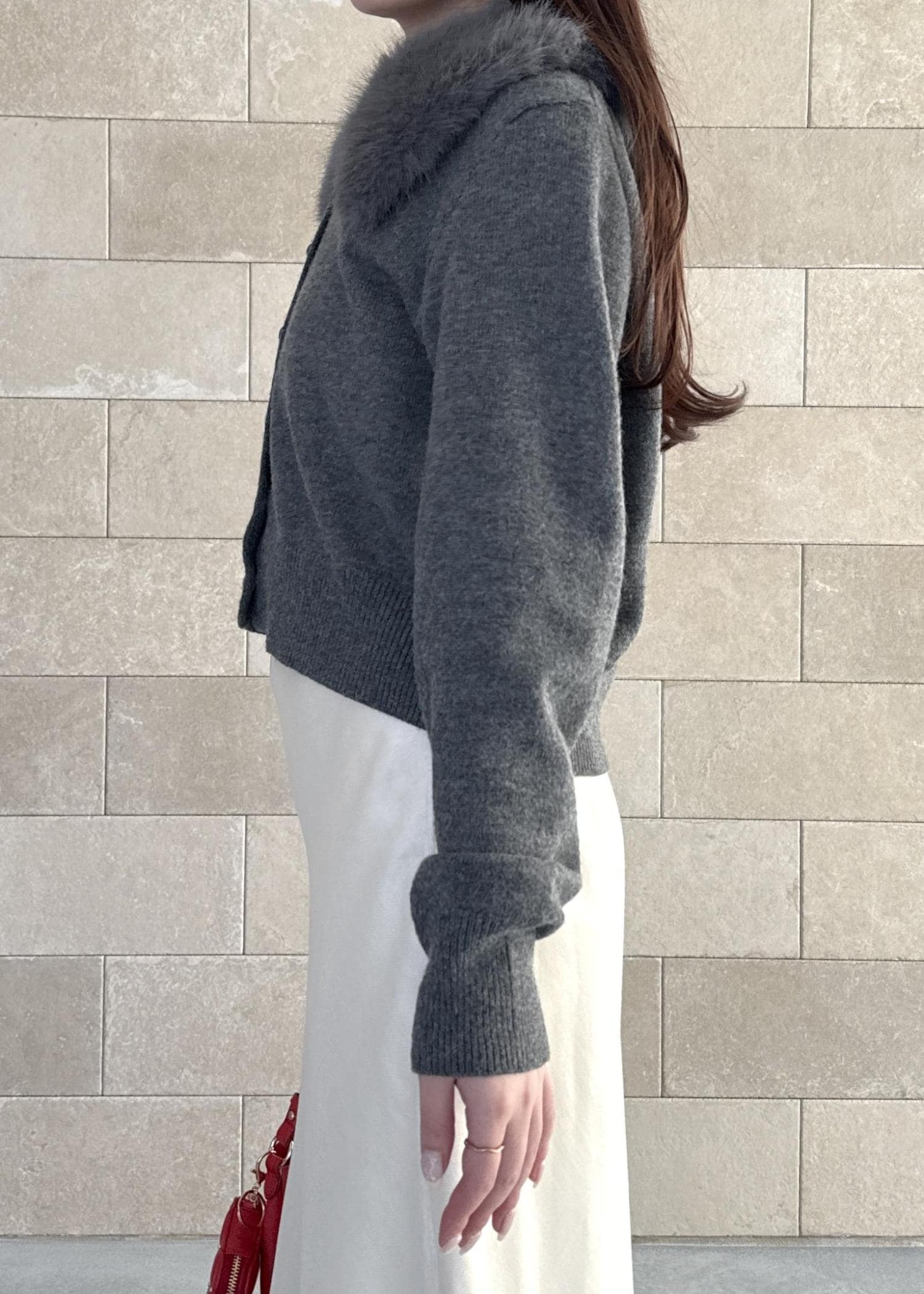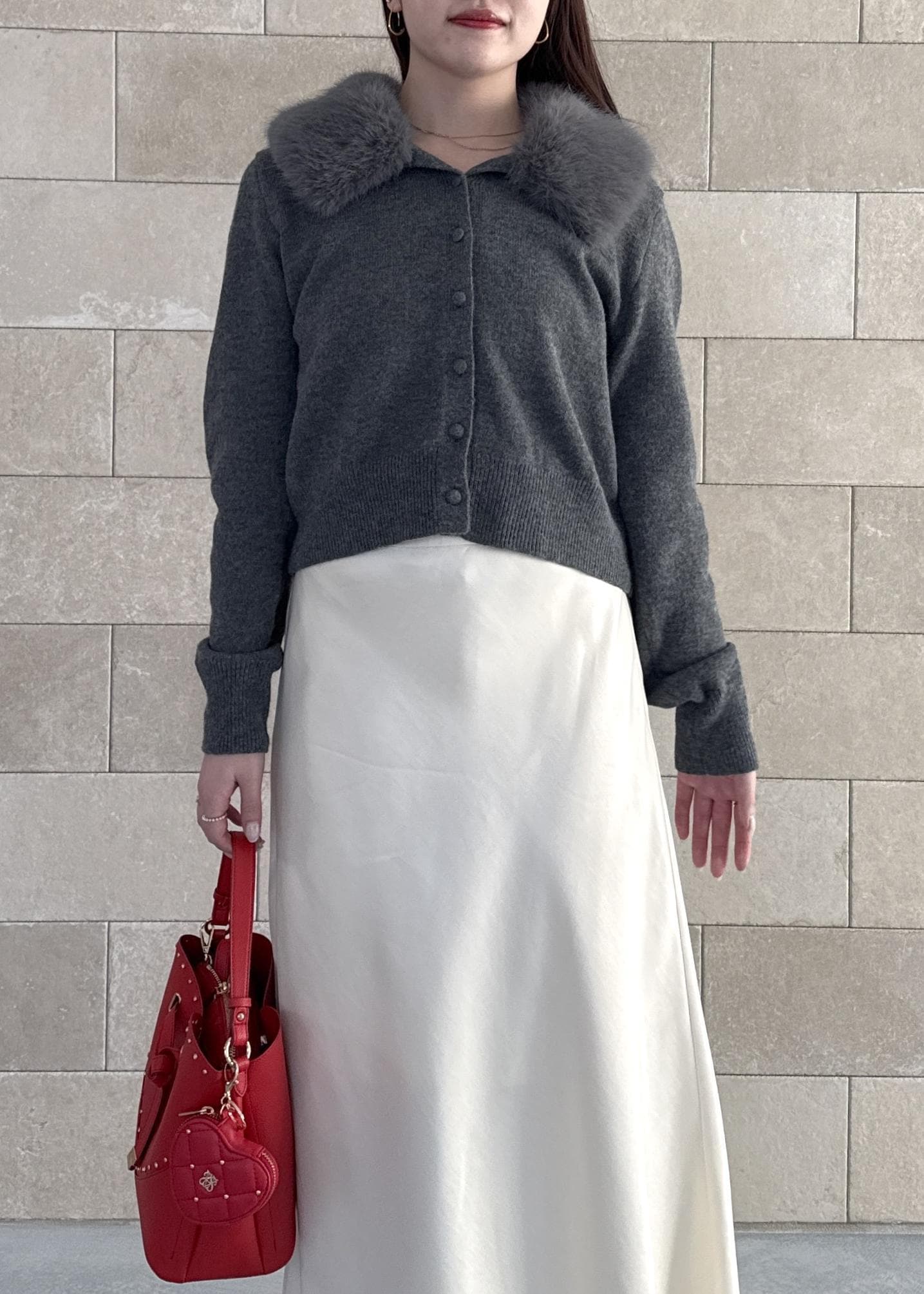 VIS衿ファー取り外しカーディガングレー / F¥6,589レビュー身長158cmで丈感は、ウエストライン隠れる長さ。