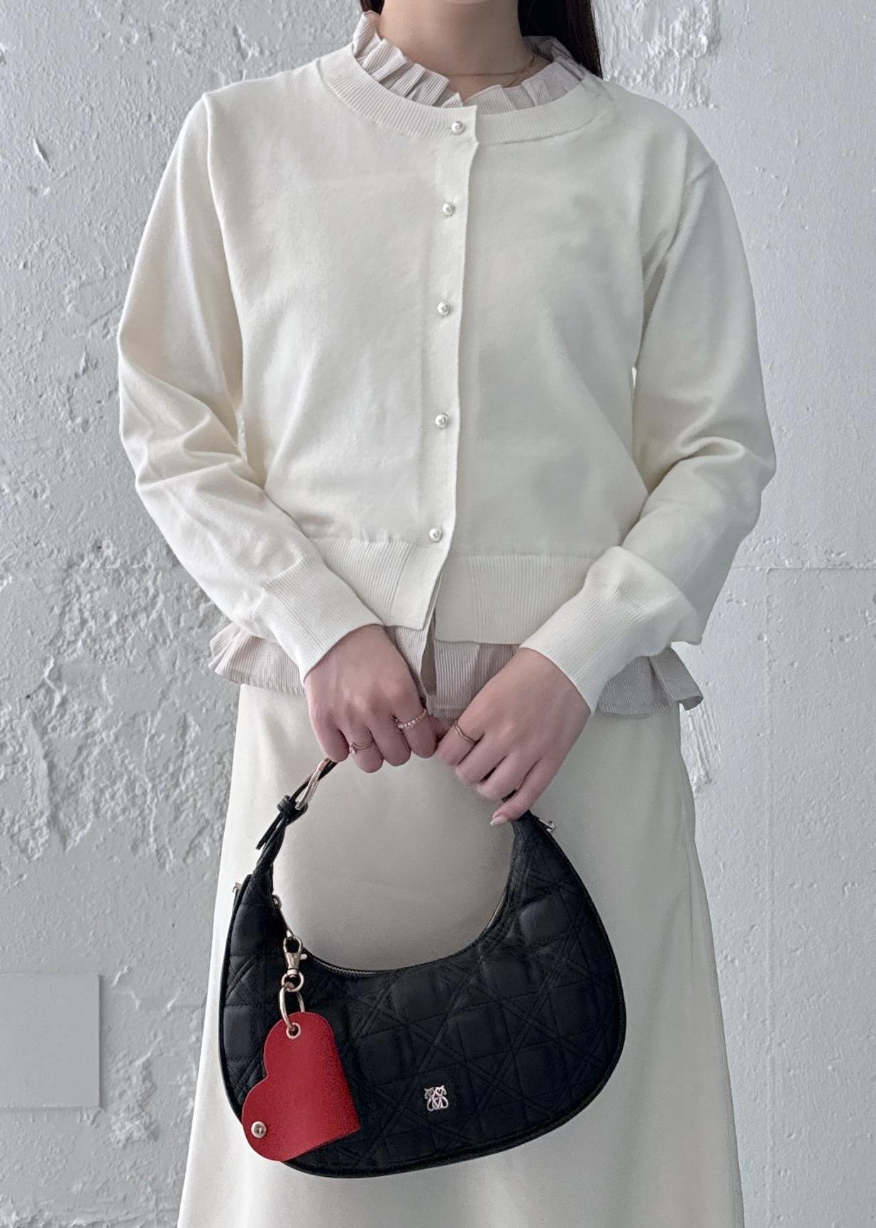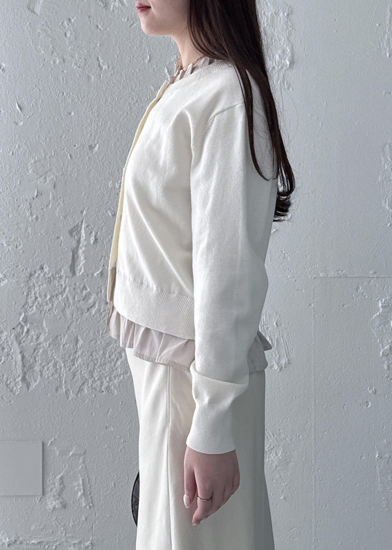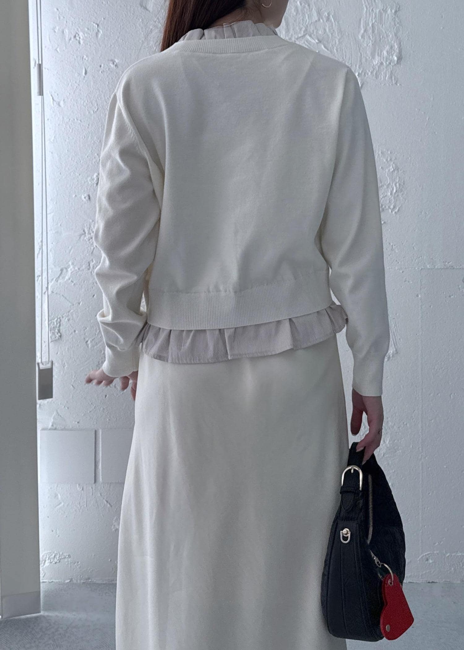 NEW! 予約VISフリル襟ドッキングニットカーディガントップスオフホワイト / F¥5,929レビューカーディガン部分は、厚すぎない程良いニット素材で肌触りが良く着心地良いです◎