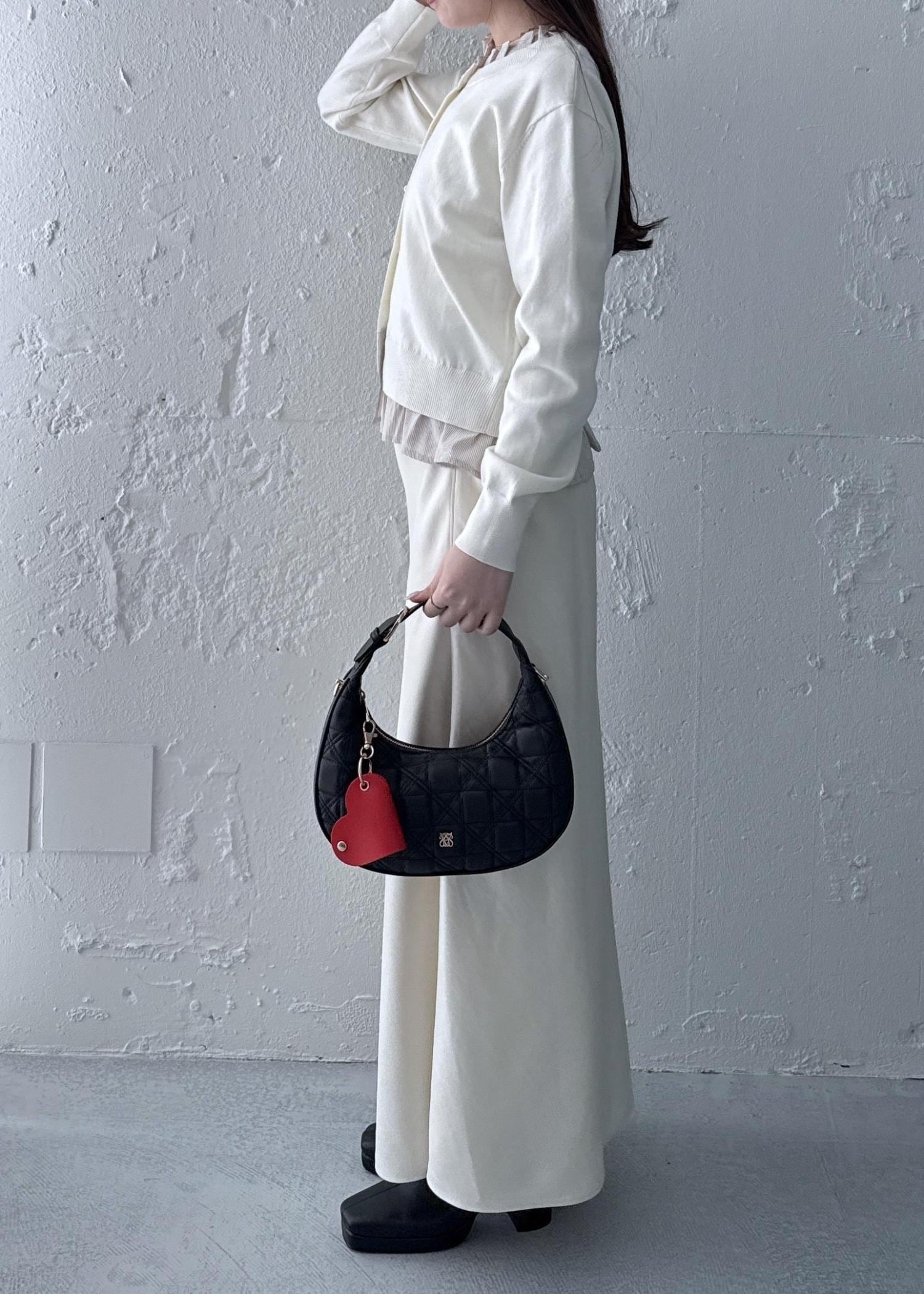 ホワイトでまとめつつ、小物はブラックでコーデに締まりを◎