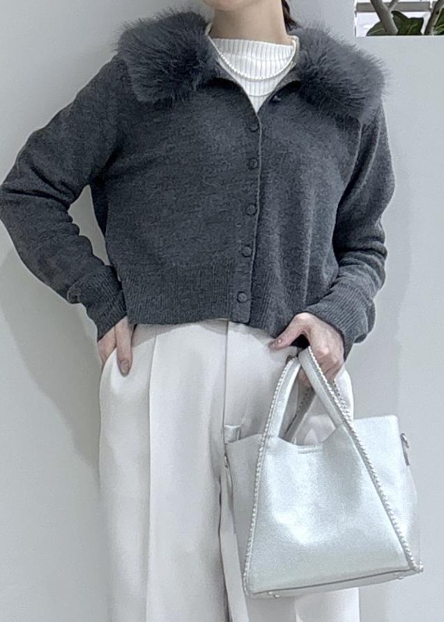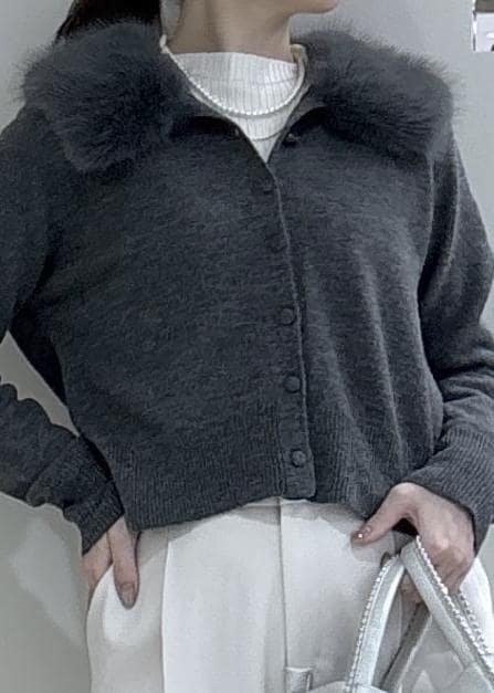 VIS衿ファー取り外しカーディガングレー / F¥6,589レビュー程よくゆとりがあって動きやすいニットカーディガン。