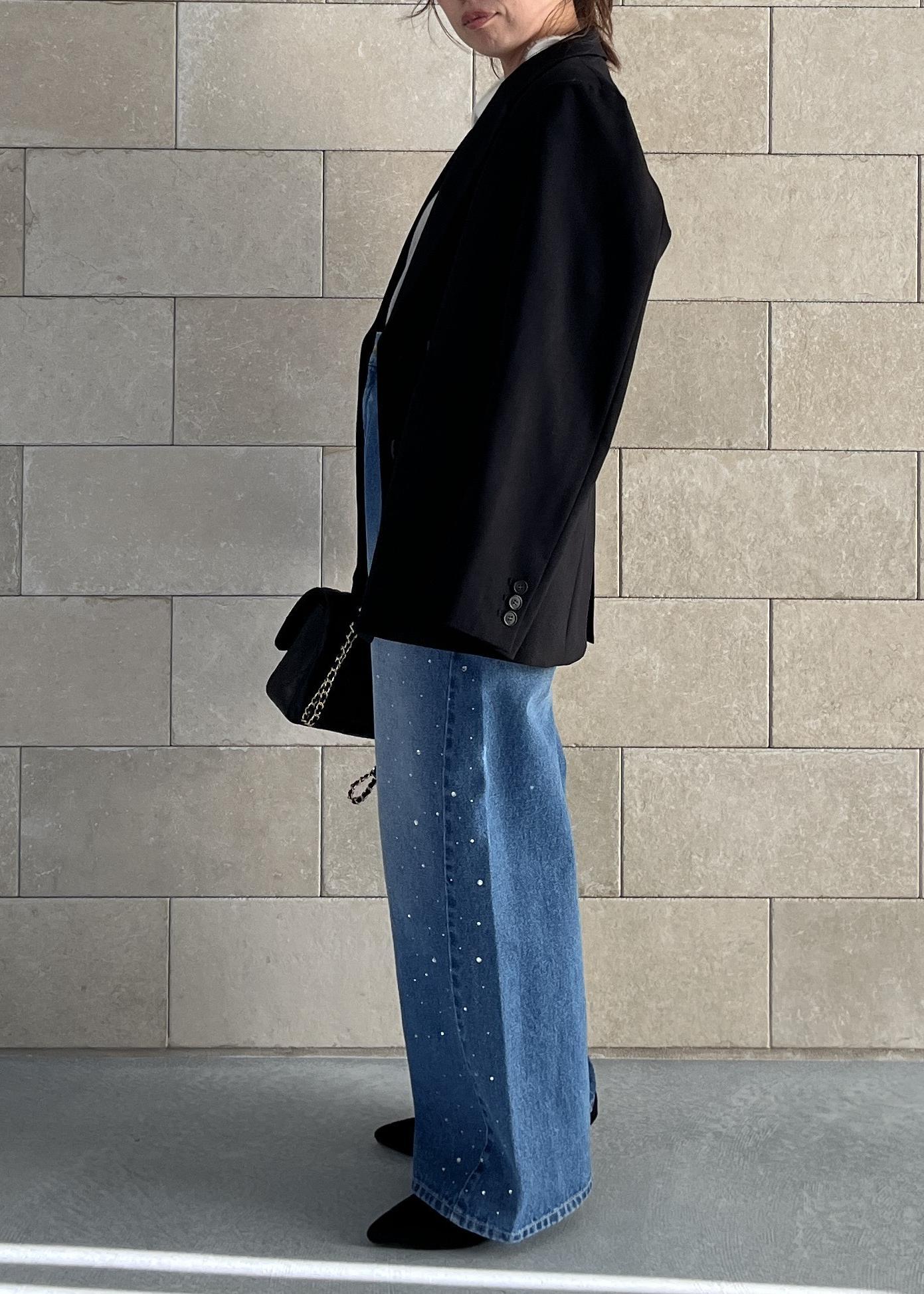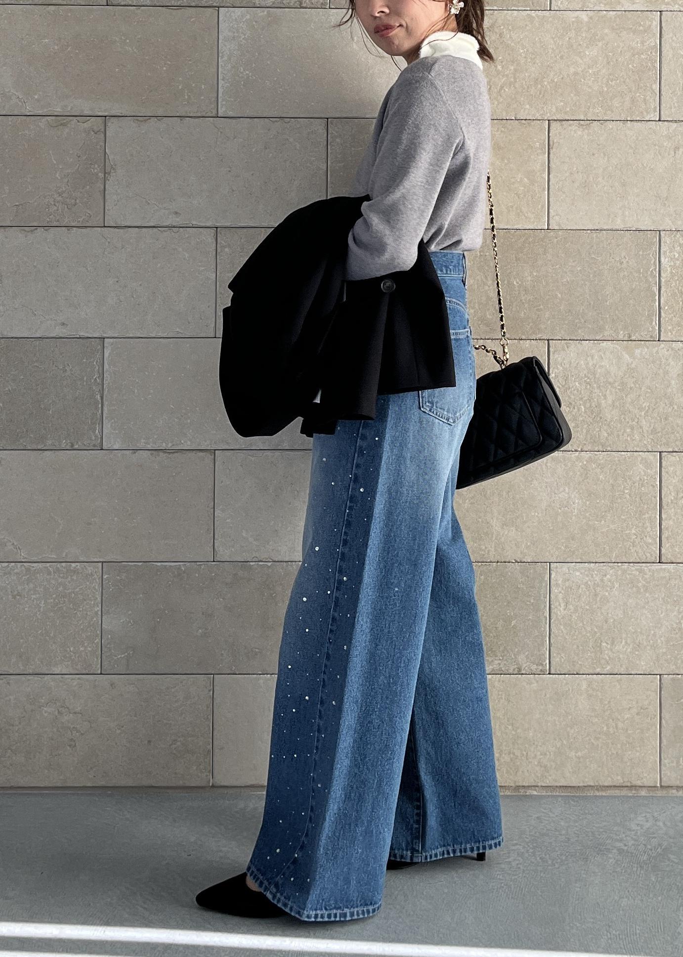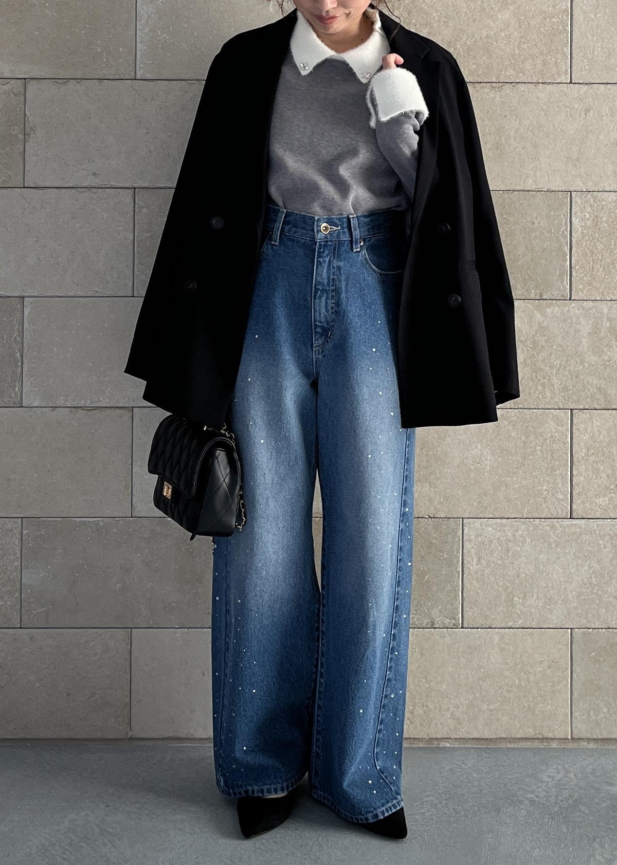 ビジュー入りワイドデニムで抜け感と華やぎをプラス。
