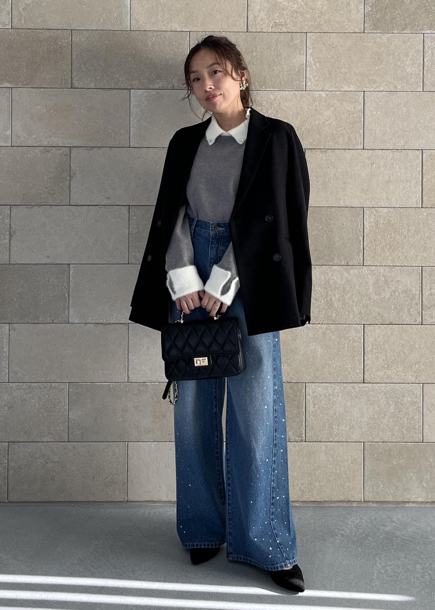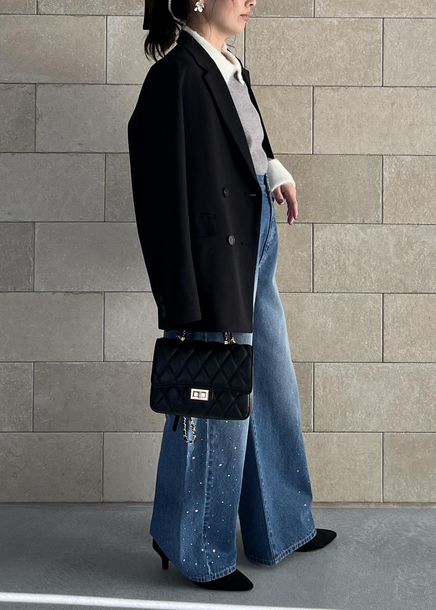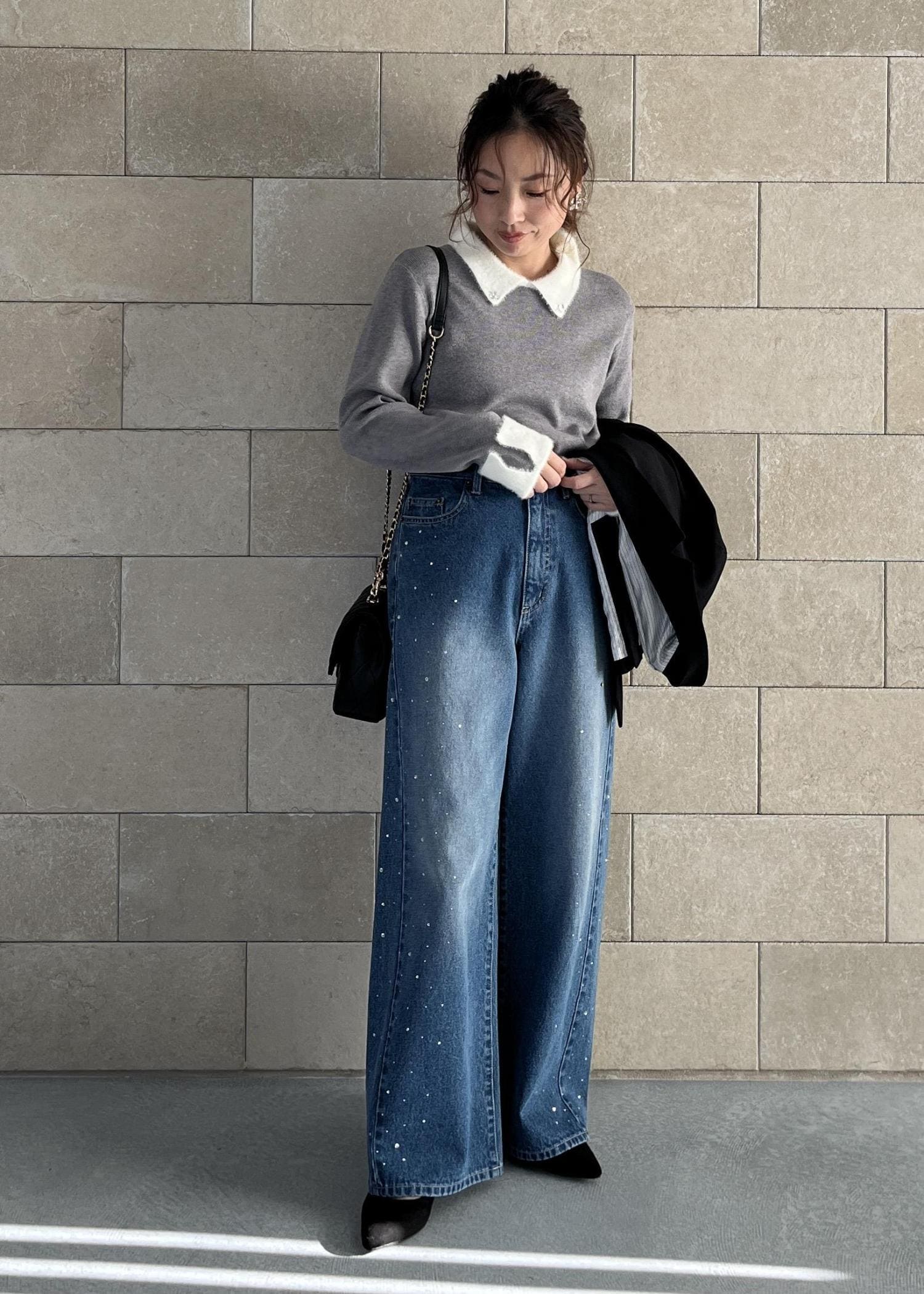 ビジュー入りワイドデニムで抜け感と華やぎをプラス。