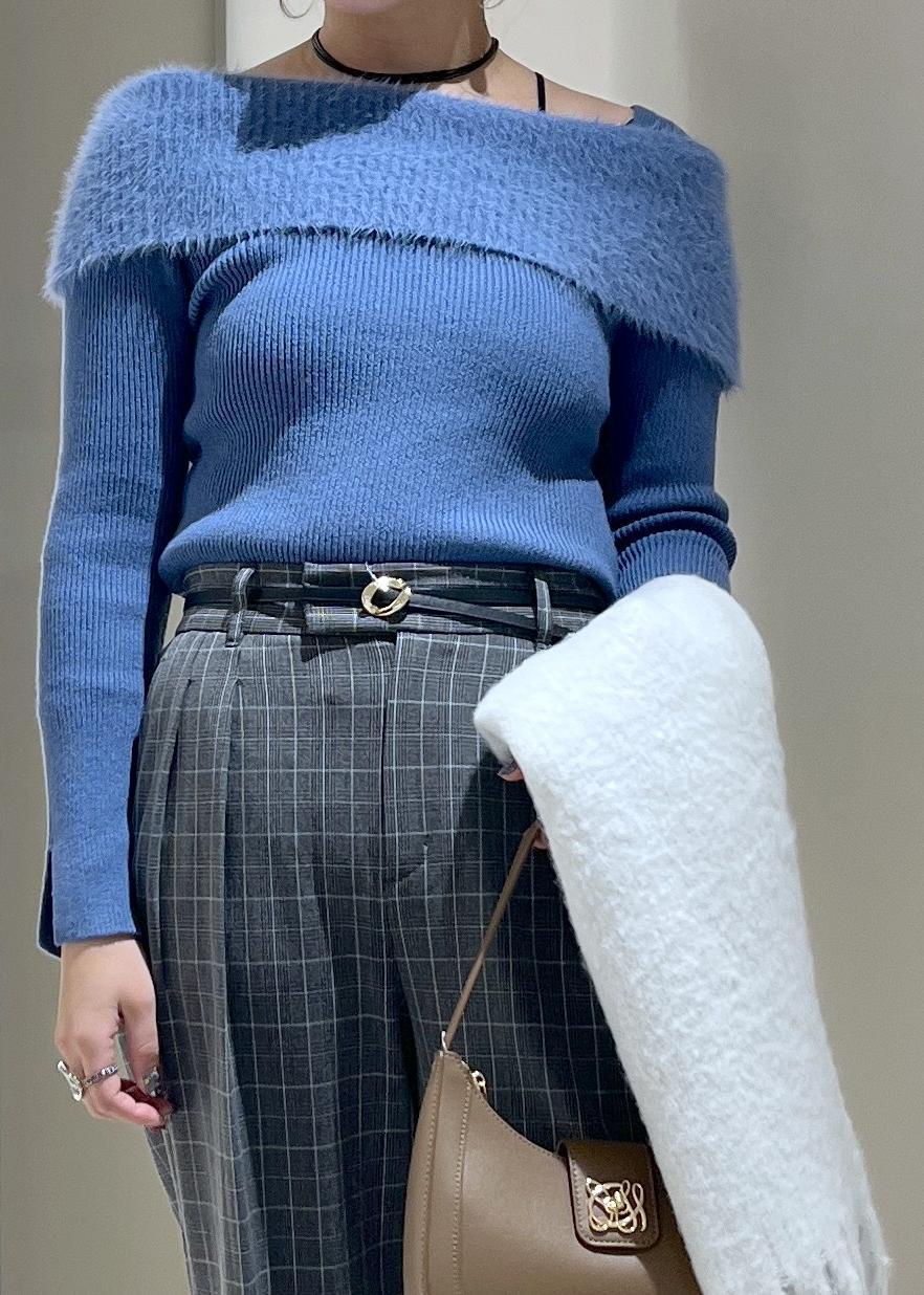 VISフェザーヤーンオフショルもちもちリブニット/イージーケアブルー系 / F¥5,929レビューもちもちの素材感で着心地がとても良いいいです!