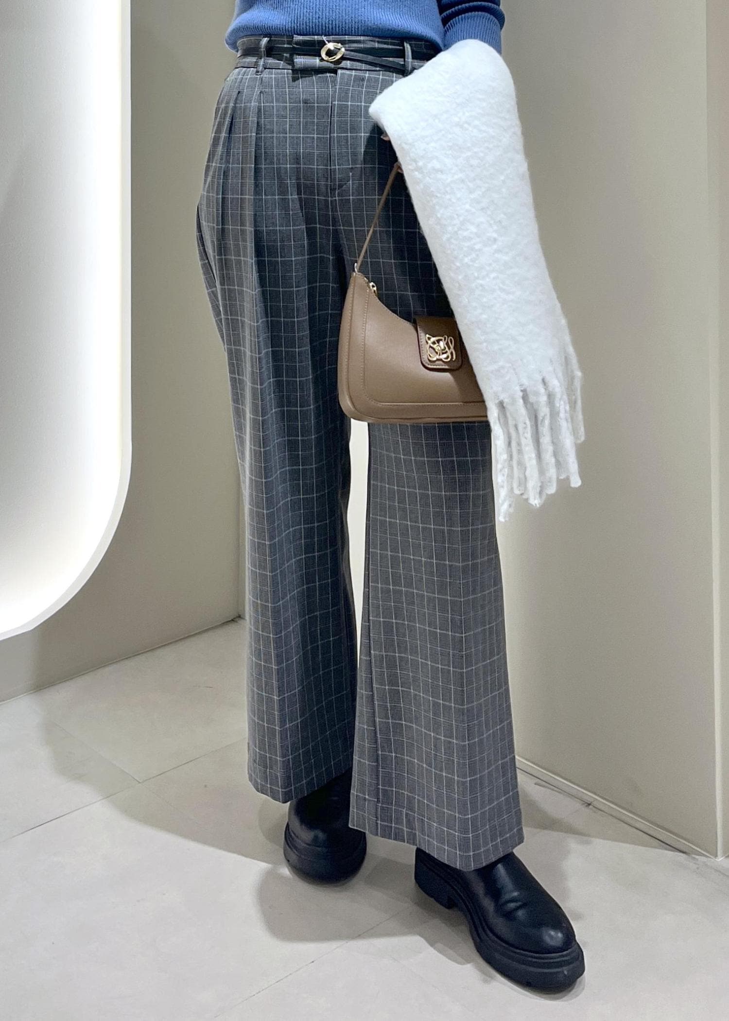 ツータックでゆるっと感が大人可愛く、シルエットも綺麗です。高身長/Lサイズ、腰で履いて踵にかかる丈感なので長さも十分!内側にサイズ調節のボタンがついているのもうれしいポイントです! -
