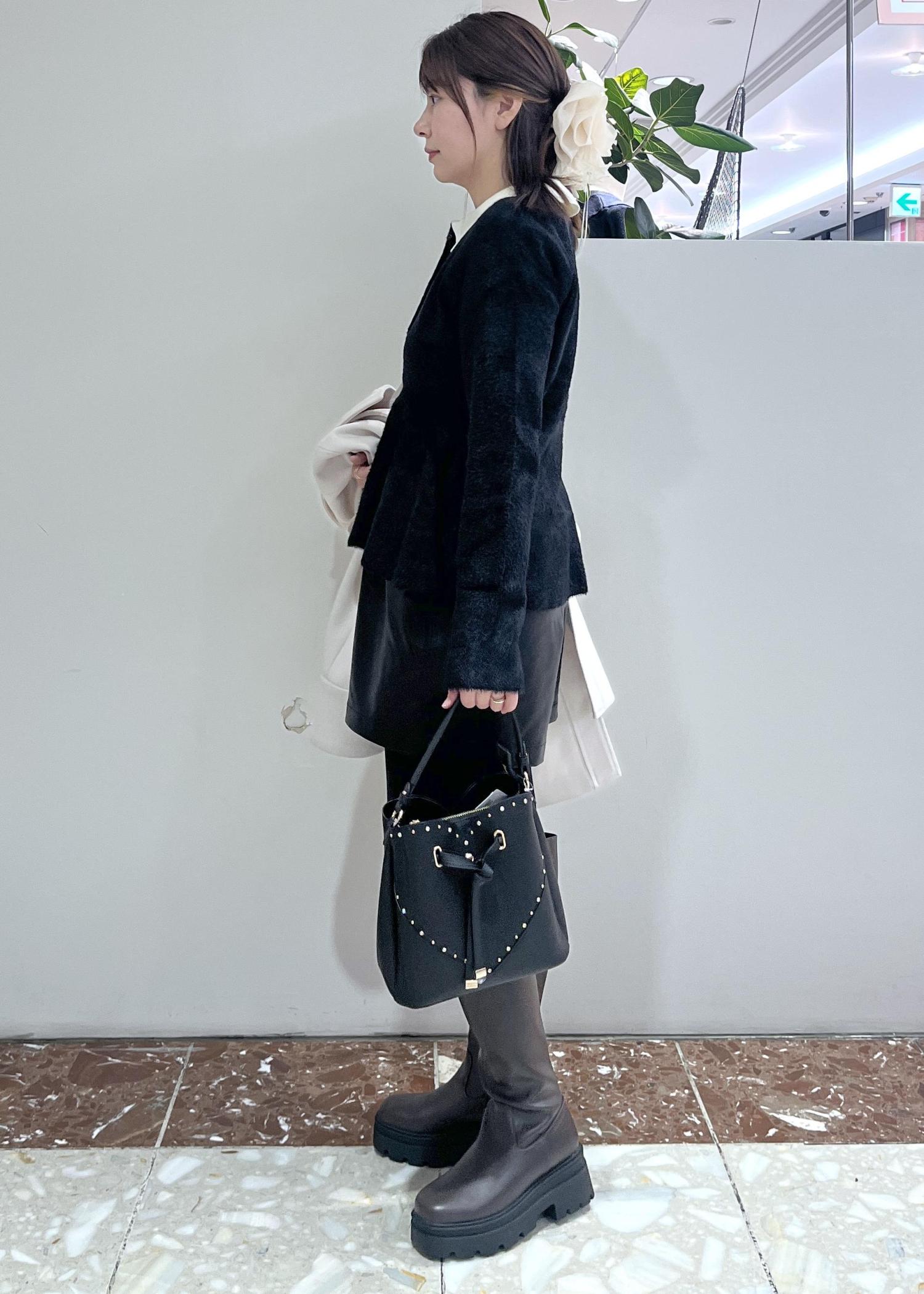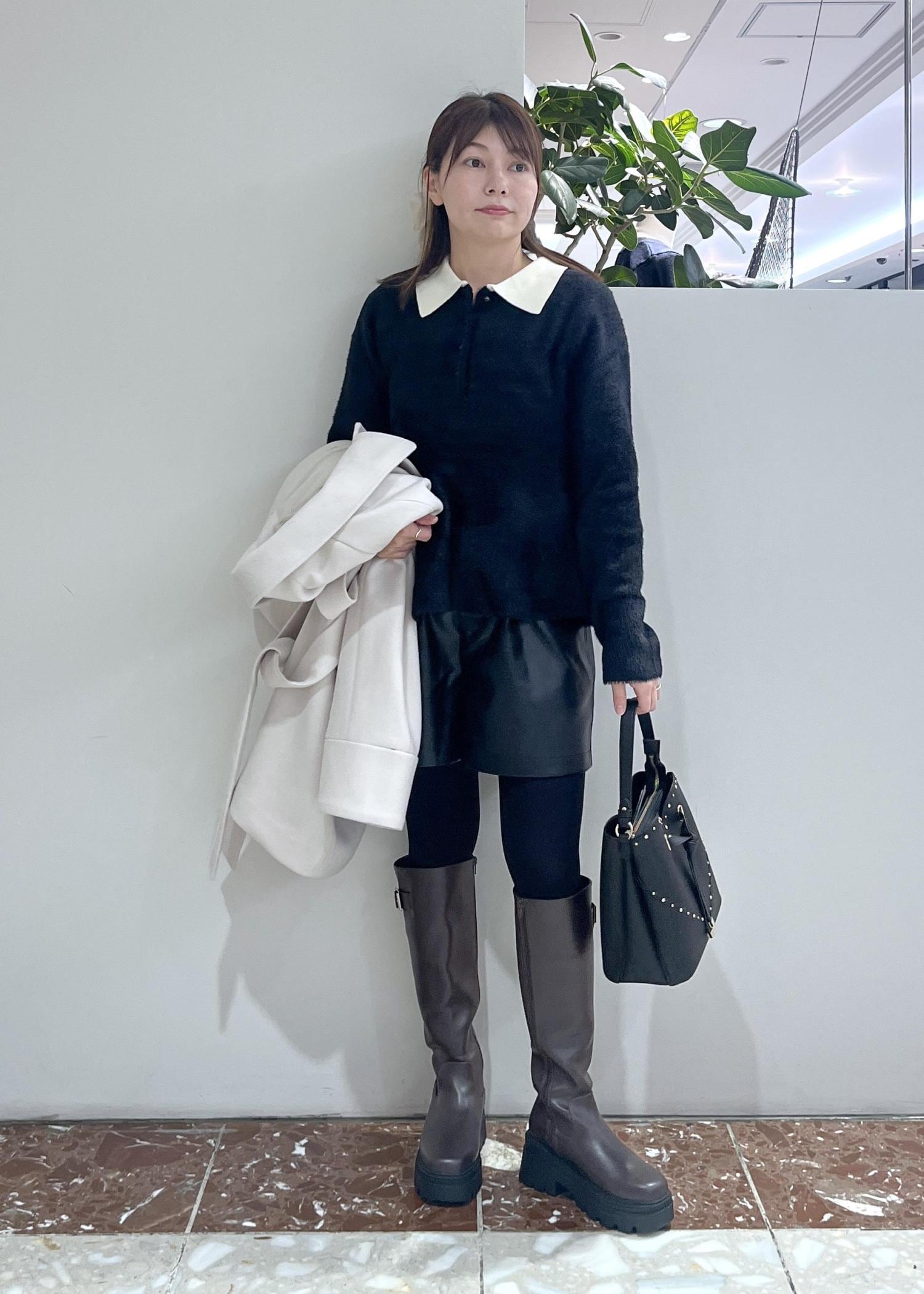 VISペプラムデザインシャギーニットブラック / F¥5,929レビュー柔らかい肌触りのニットです。衿がカラー違いになっていたり、ペプラムデザインがポイントになり一枚でも様になるトップスです。157cmで着丈が短すぎず丁度良く着られました!