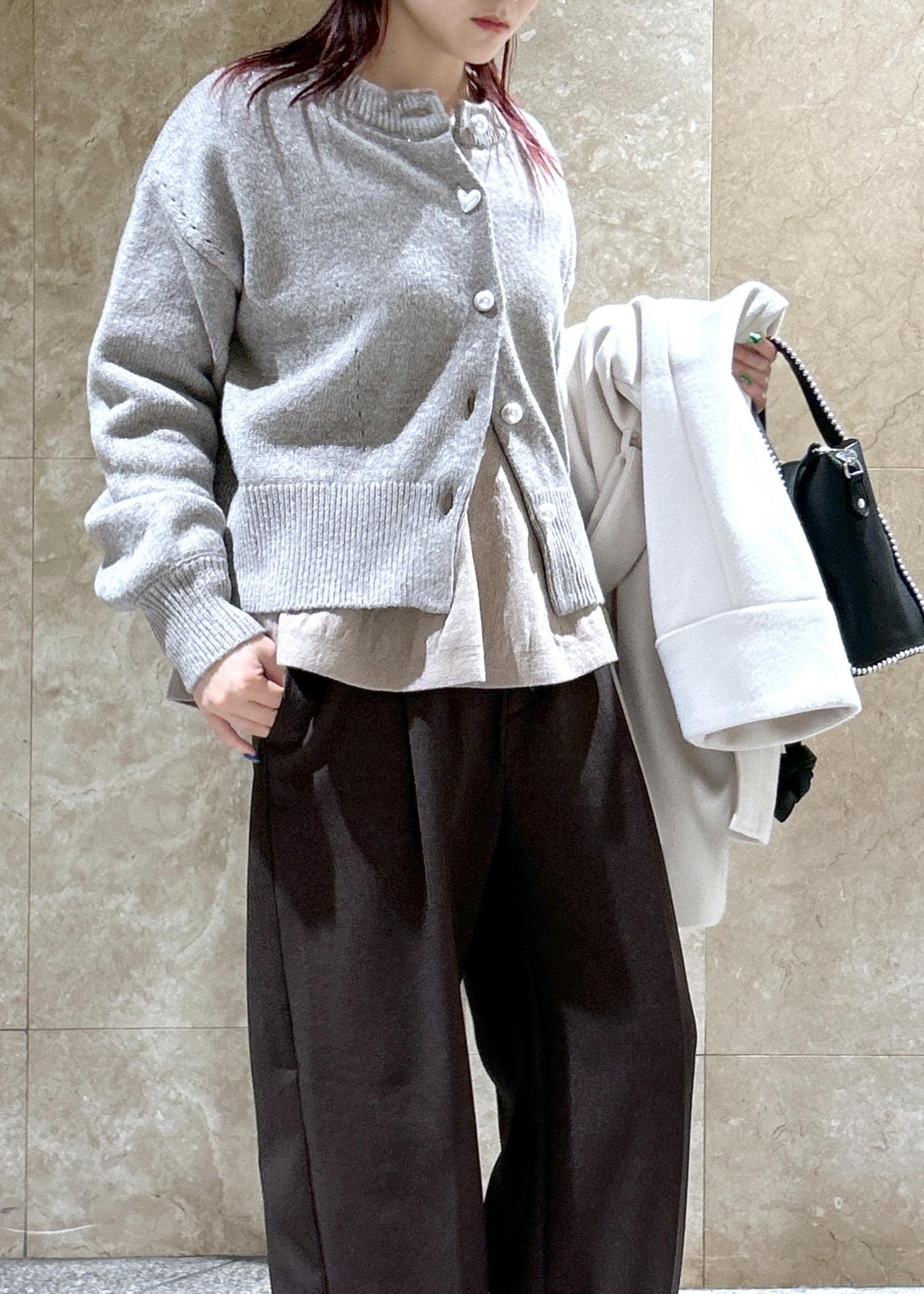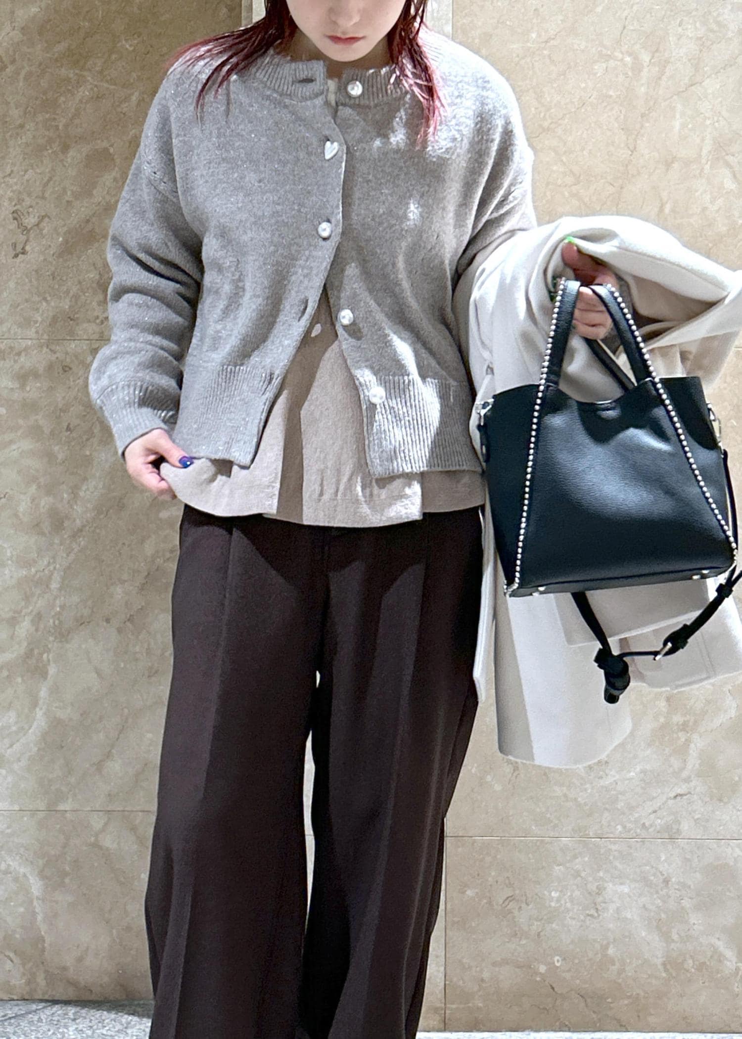 VISハートアソートパール釦ラメミックスカーディガン/イージーケア・一部WEB限定カラーブラウン / F¥5,489レビュー第二ボタンがハートになっているラメ感がかわいいカーディガンです!