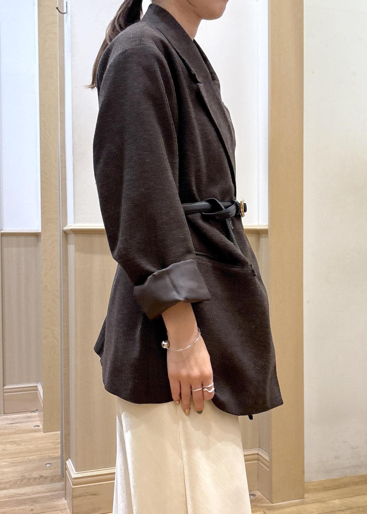 VISヘリンボーンツイードベルテッドジャケット/セットアップ対応ダークブラウン / F¥7,999レビュー生地が裏地付きでしっかりしていますが、軽くて着用しやすく、秋冬のお出かけ用の室内着としてもかさばらず、暑すぎずな素材でした。
