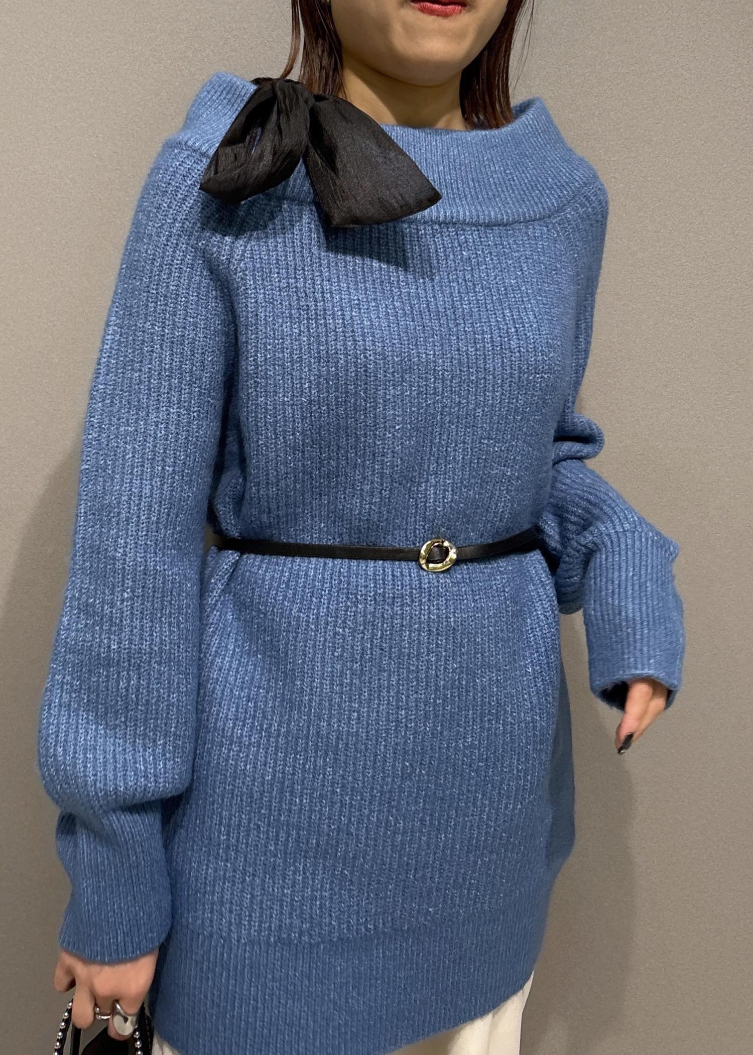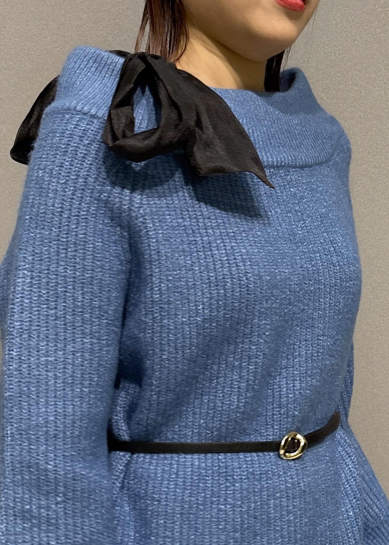 VIS肩リボンミニ丈ニットワンピース/2WAYブルー系 / F¥7,909レビューふわふわとした厚手の生地です。
