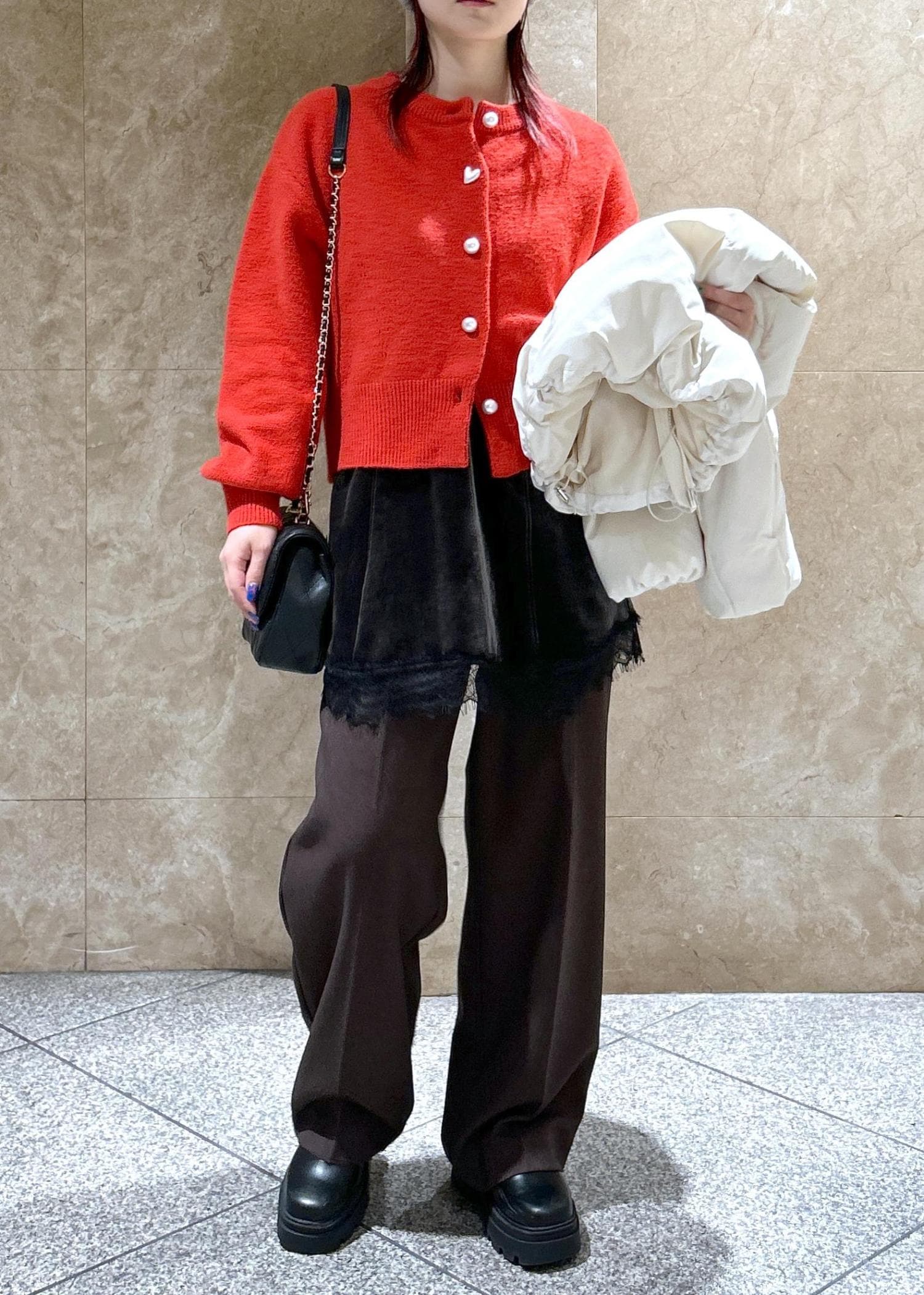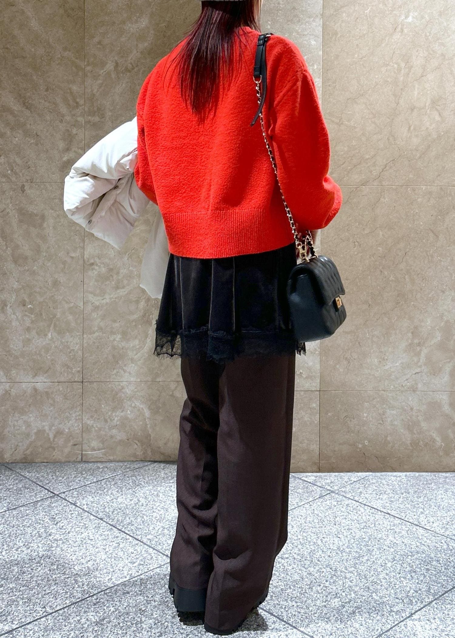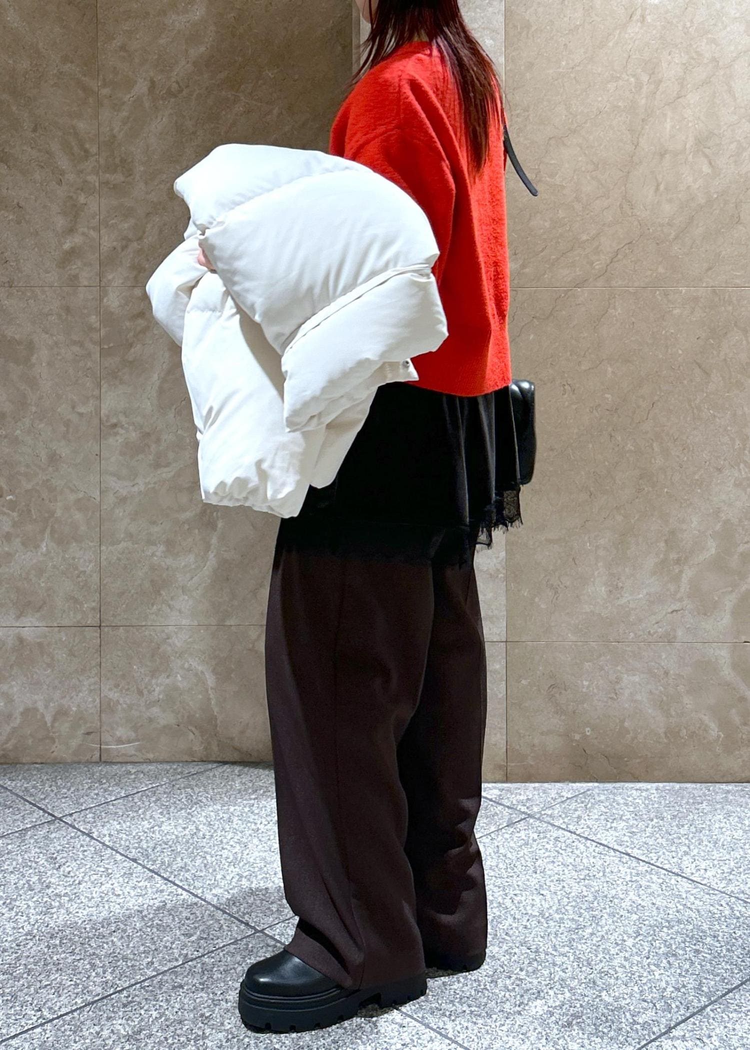 身幅は割とゆとりがあるので、ニットなどの上からでも着用可能です◎ -