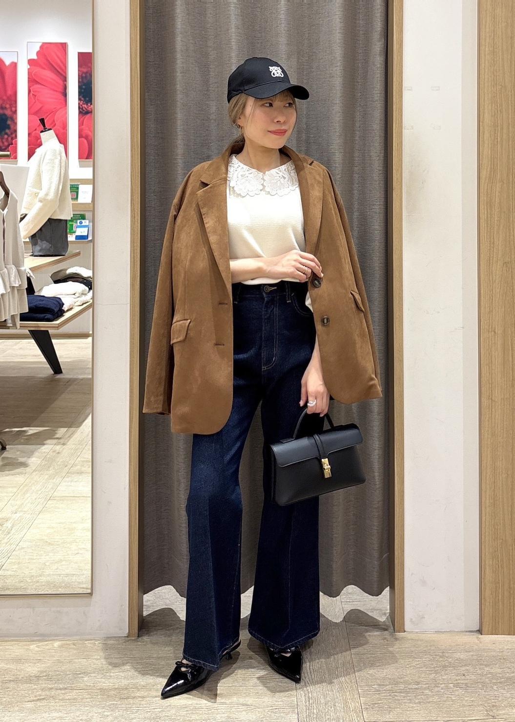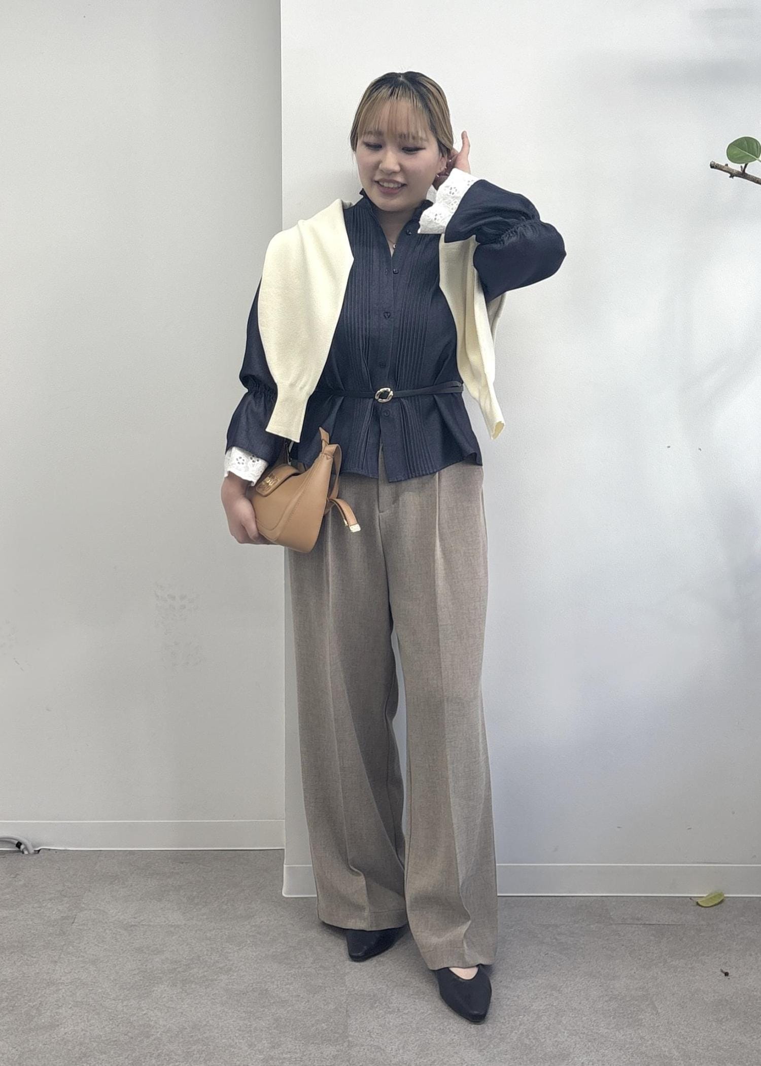 ボタンを外して着ても抜けんが出ますし、閉めても胸元に開きがあるのでスッキリ細見えします! -