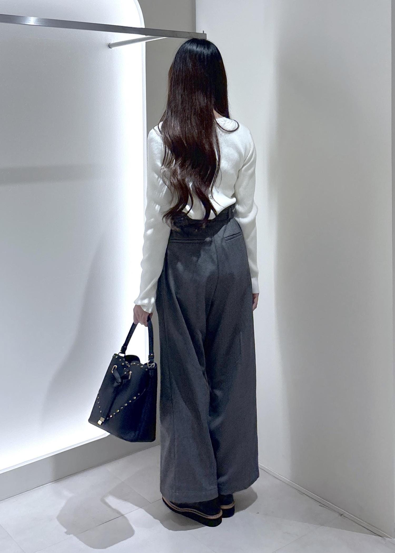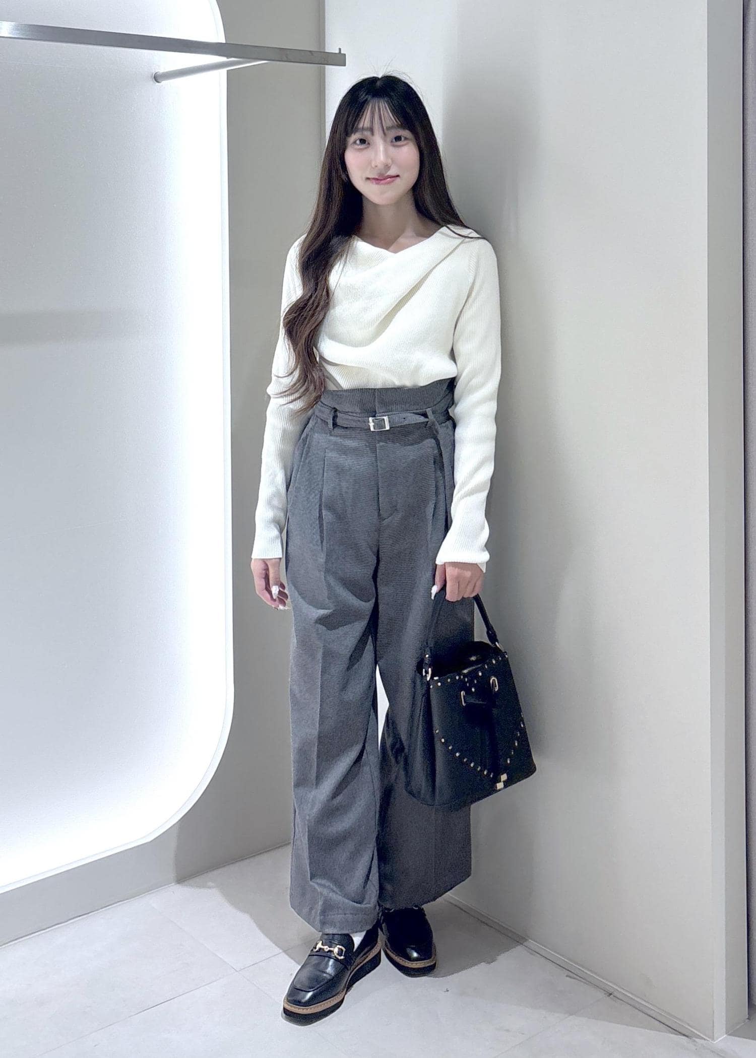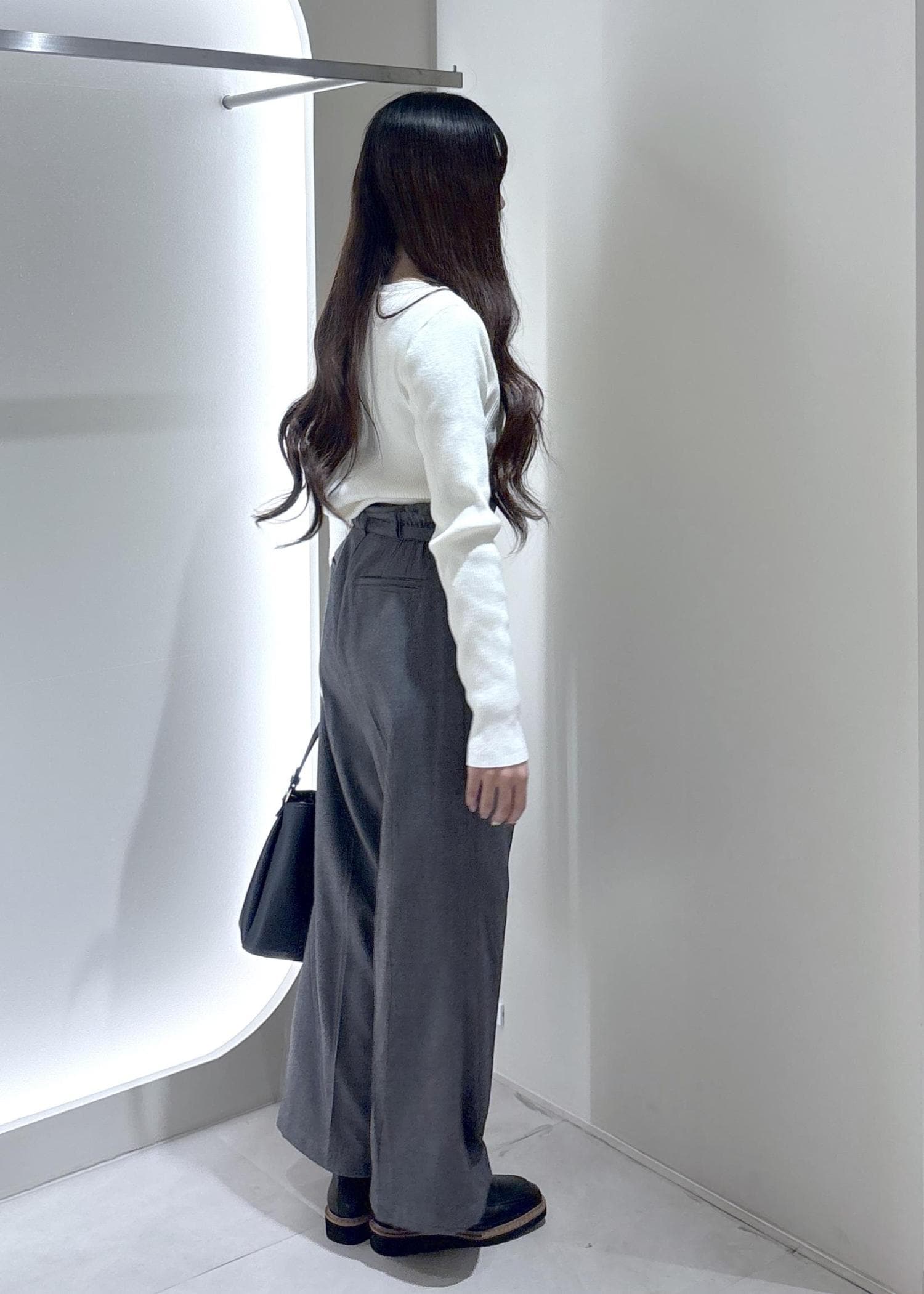 VIS起毛ウールライク版ベルトディテールタックワイドパンツグレー / S¥6,589レビュー身長155cmで約3cmの厚底を履くと床につかずちょうど良くはけます。
