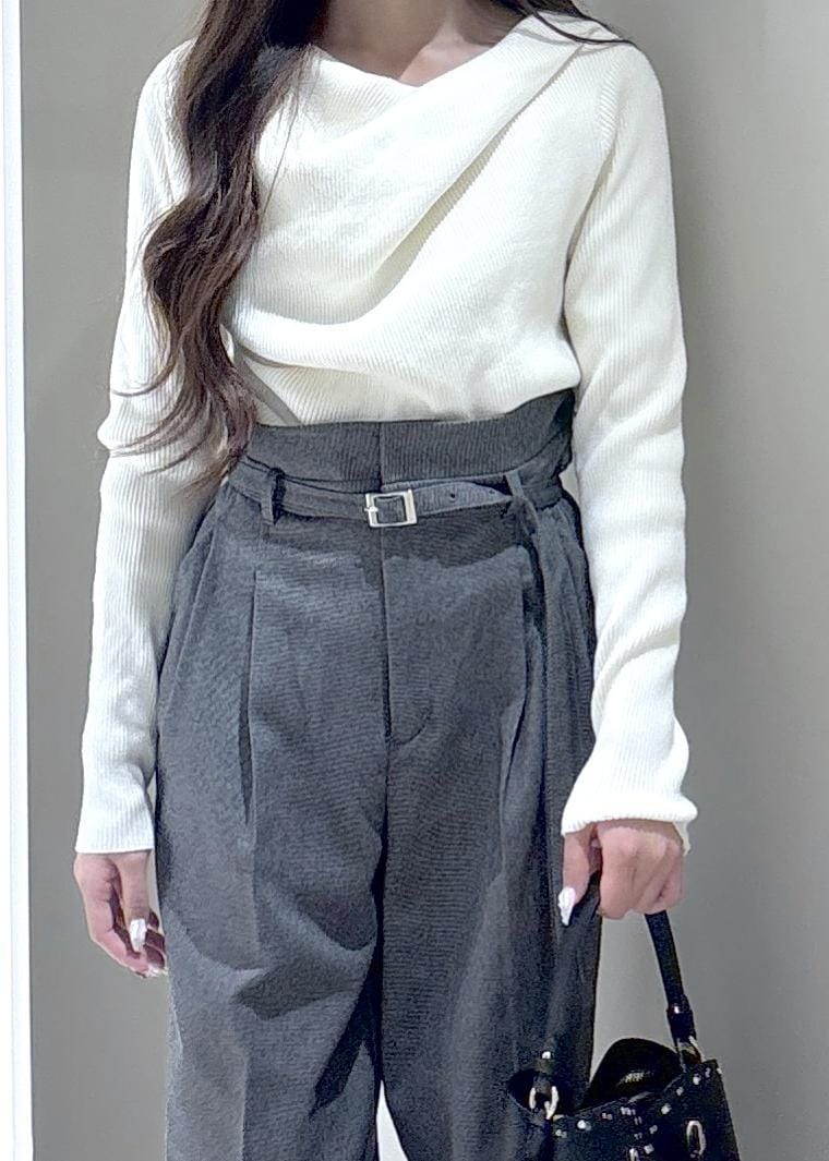 VISもちもちドレープリブニットトップス/イージーケアオフホワイト / F¥4,389レビュードレープのニットになっていて一枚で着ていただいてもシンプルすぎず着れます。