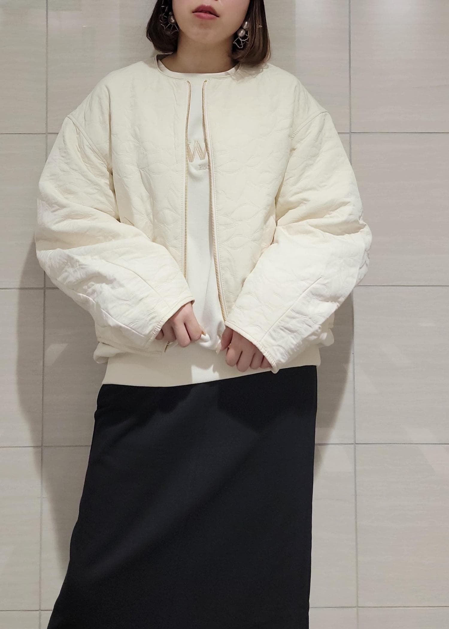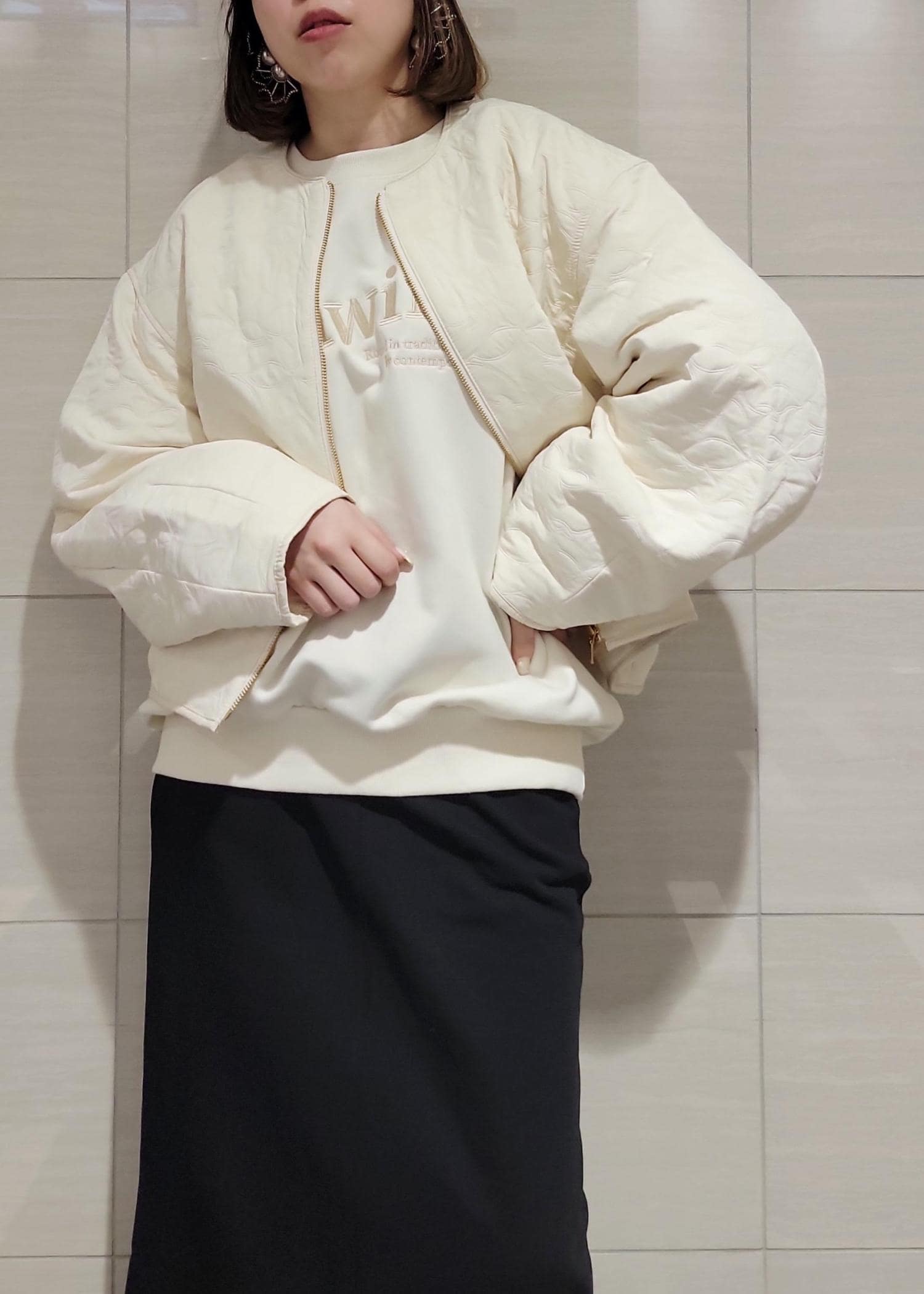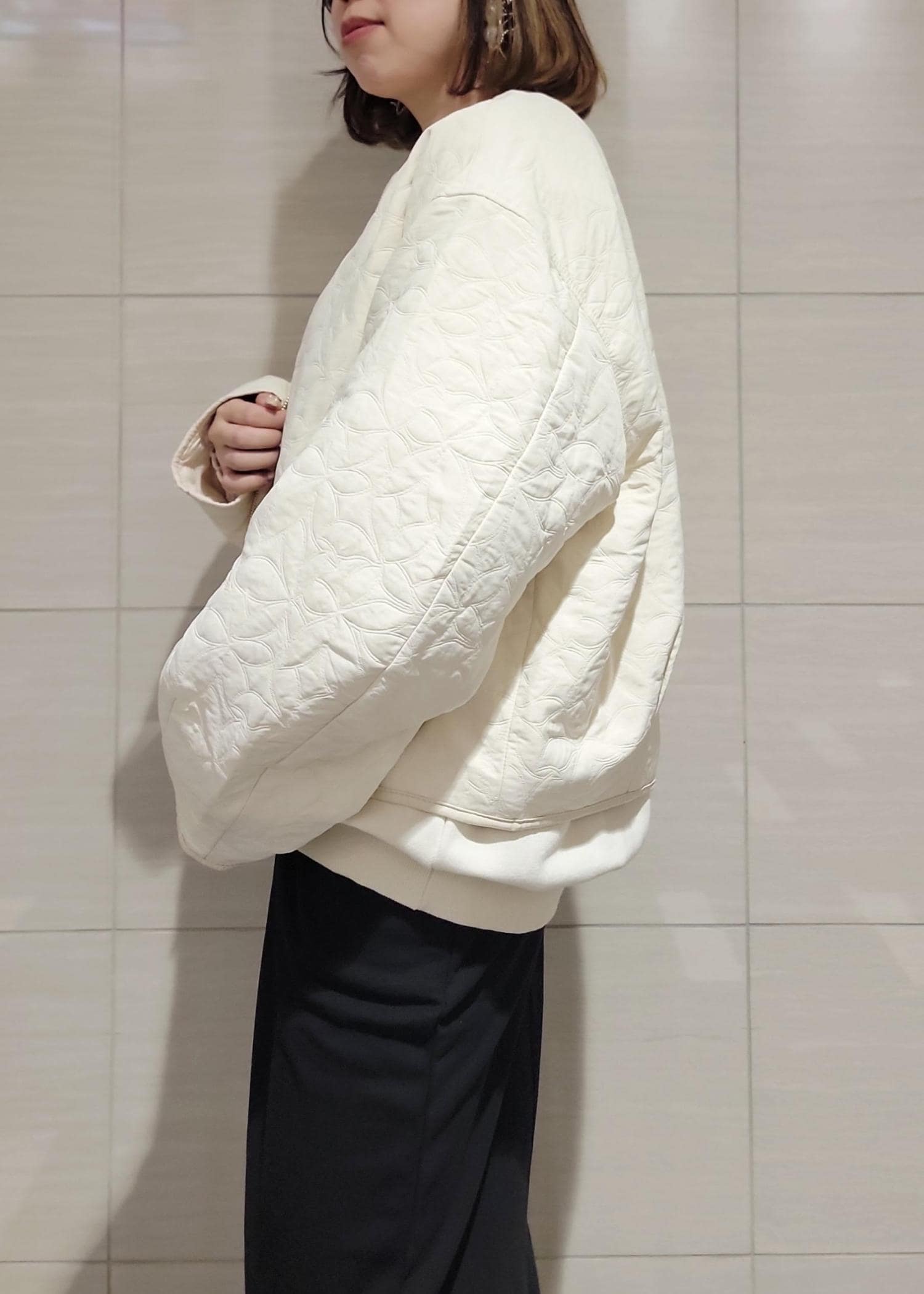 VIS合皮パイピングキルトアソートブルゾンオフホワイト / F¥8,899レビューとても軽量で羽織りやすく、長すぎない着丈がバランスも取りやすいです!