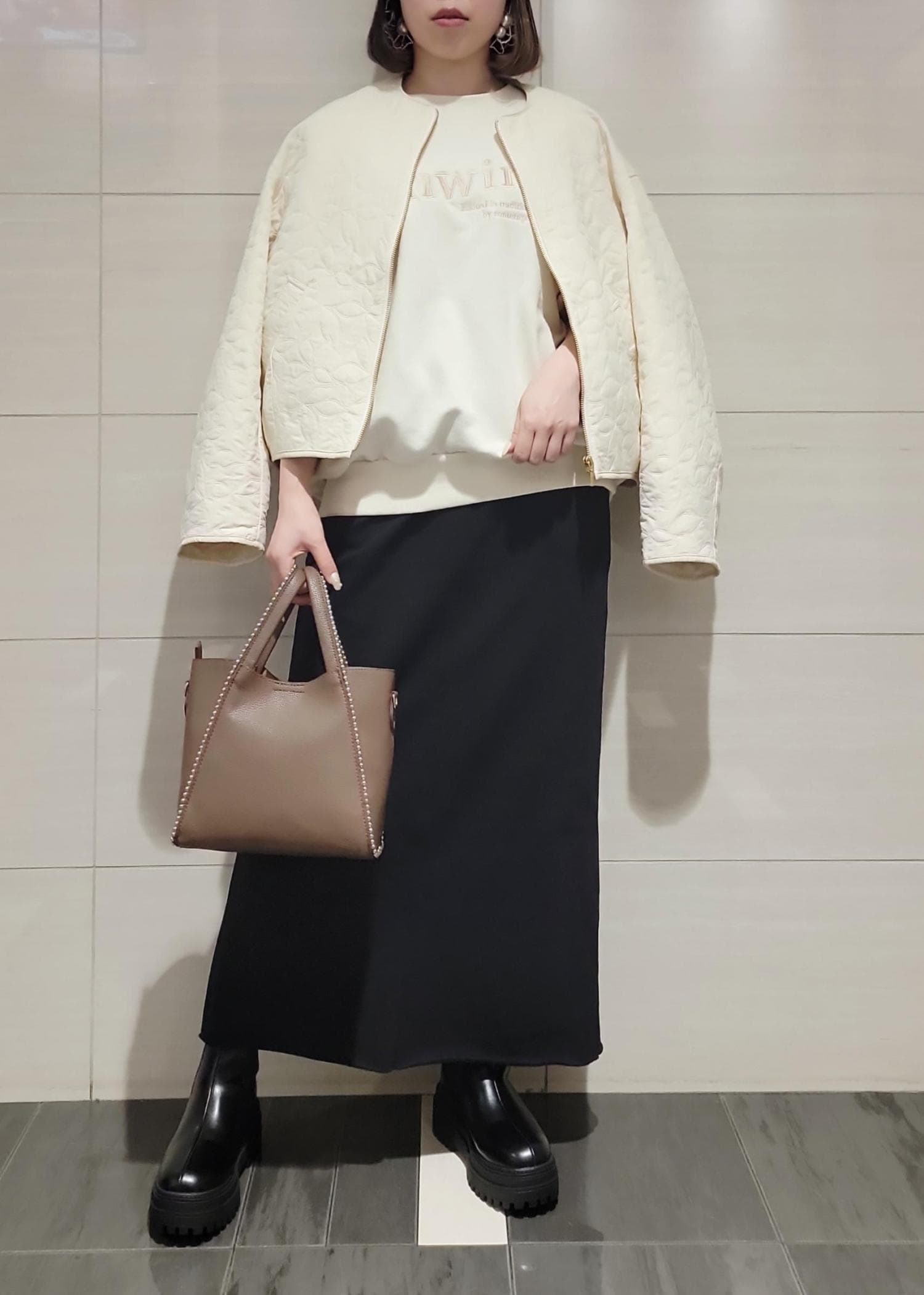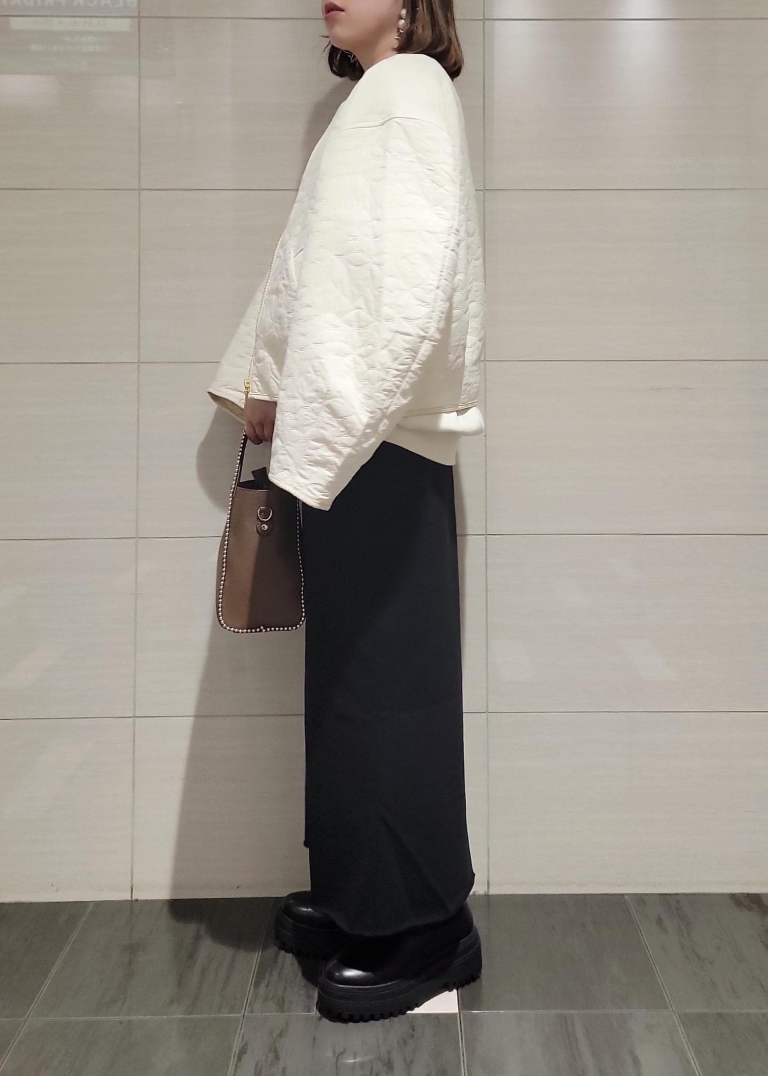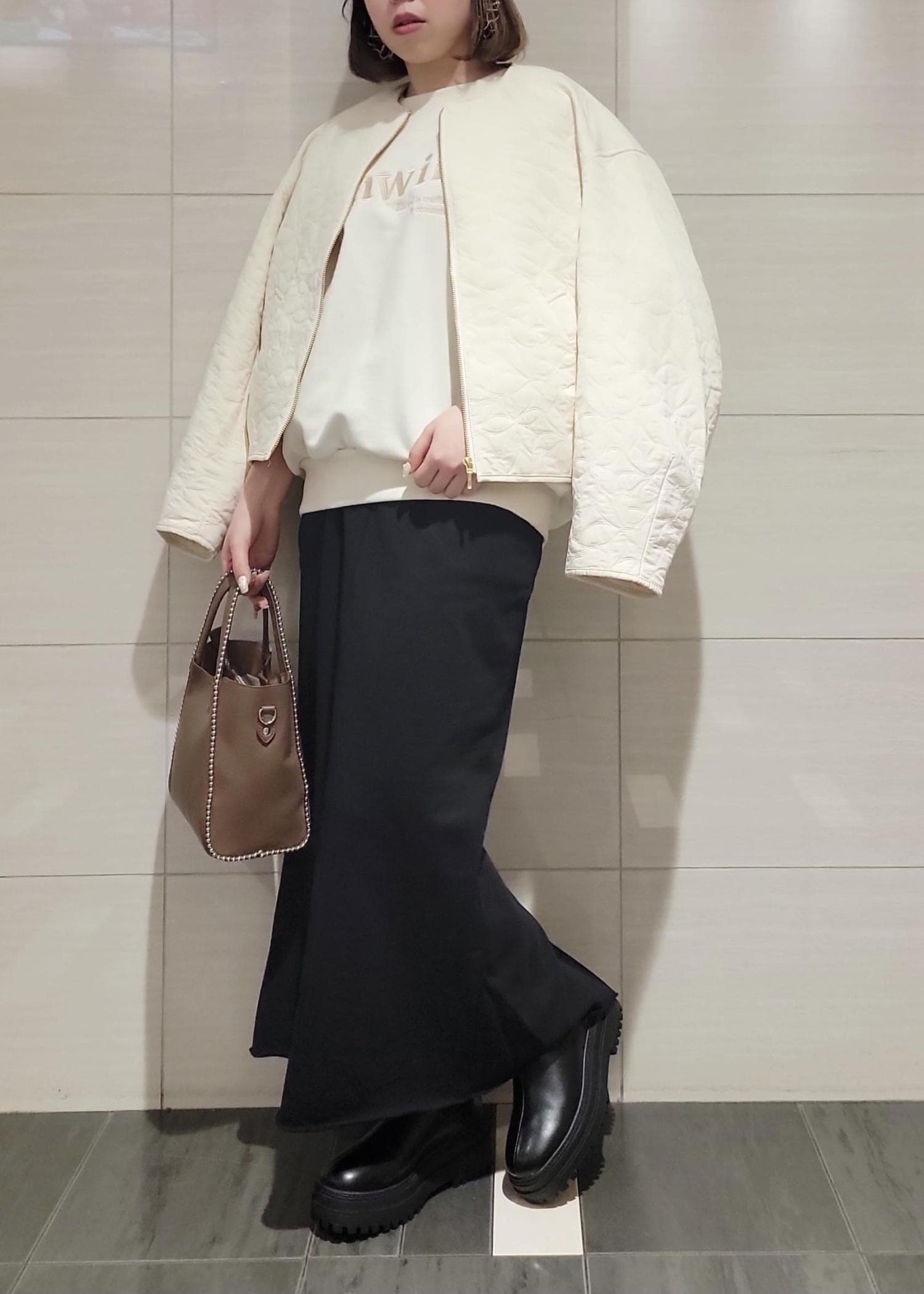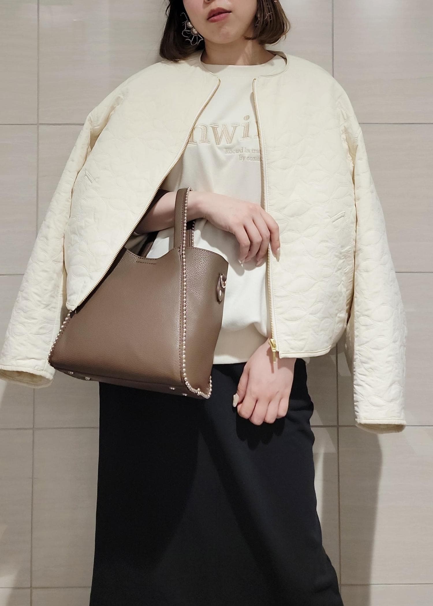 VIS合皮パイピングキルトアソートブルゾンオフホワイト / F¥8,899レビューとても軽量で羽織りやすく、長すぎない着丈がバランスも取りやすいです!