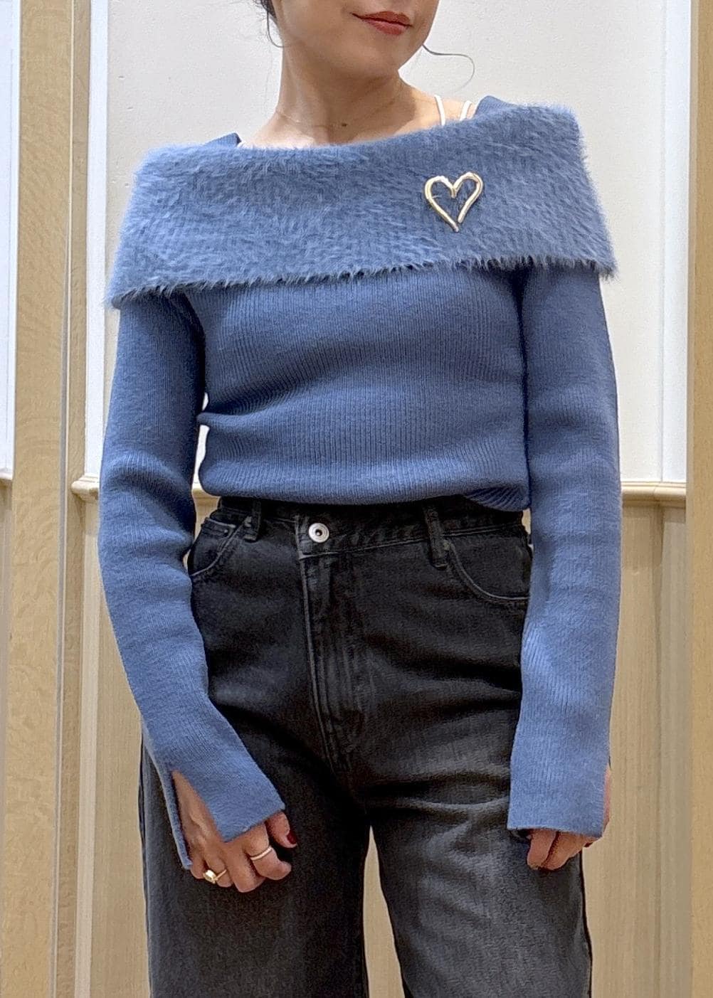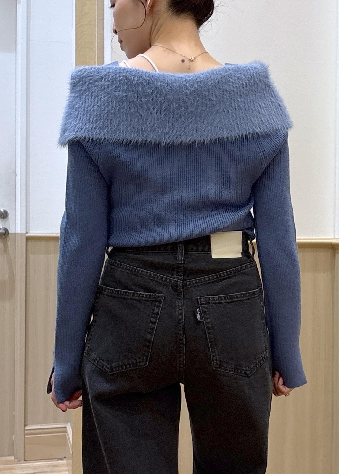 フェザーヤーンオフショルもちもちリブニット/イージーケア