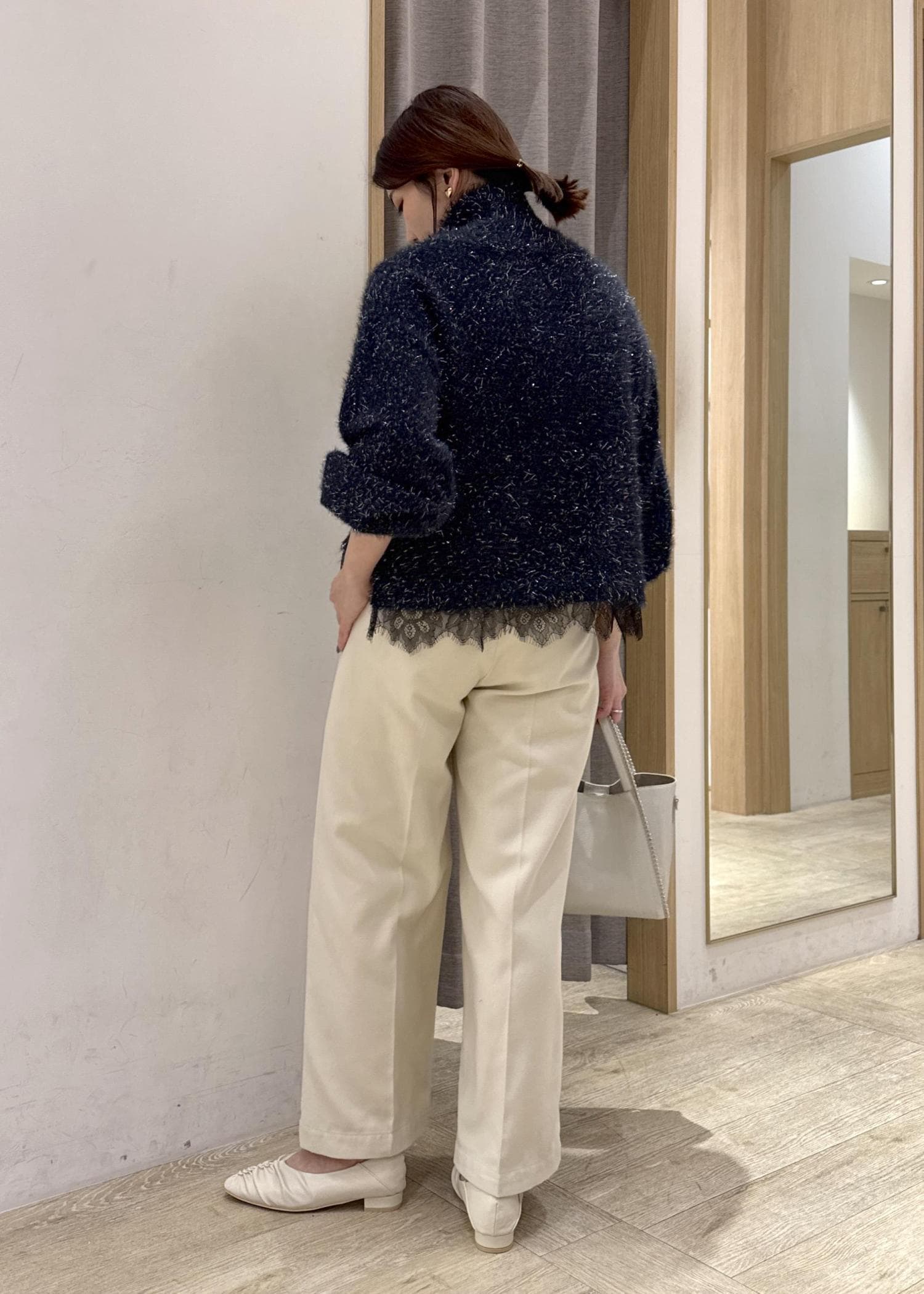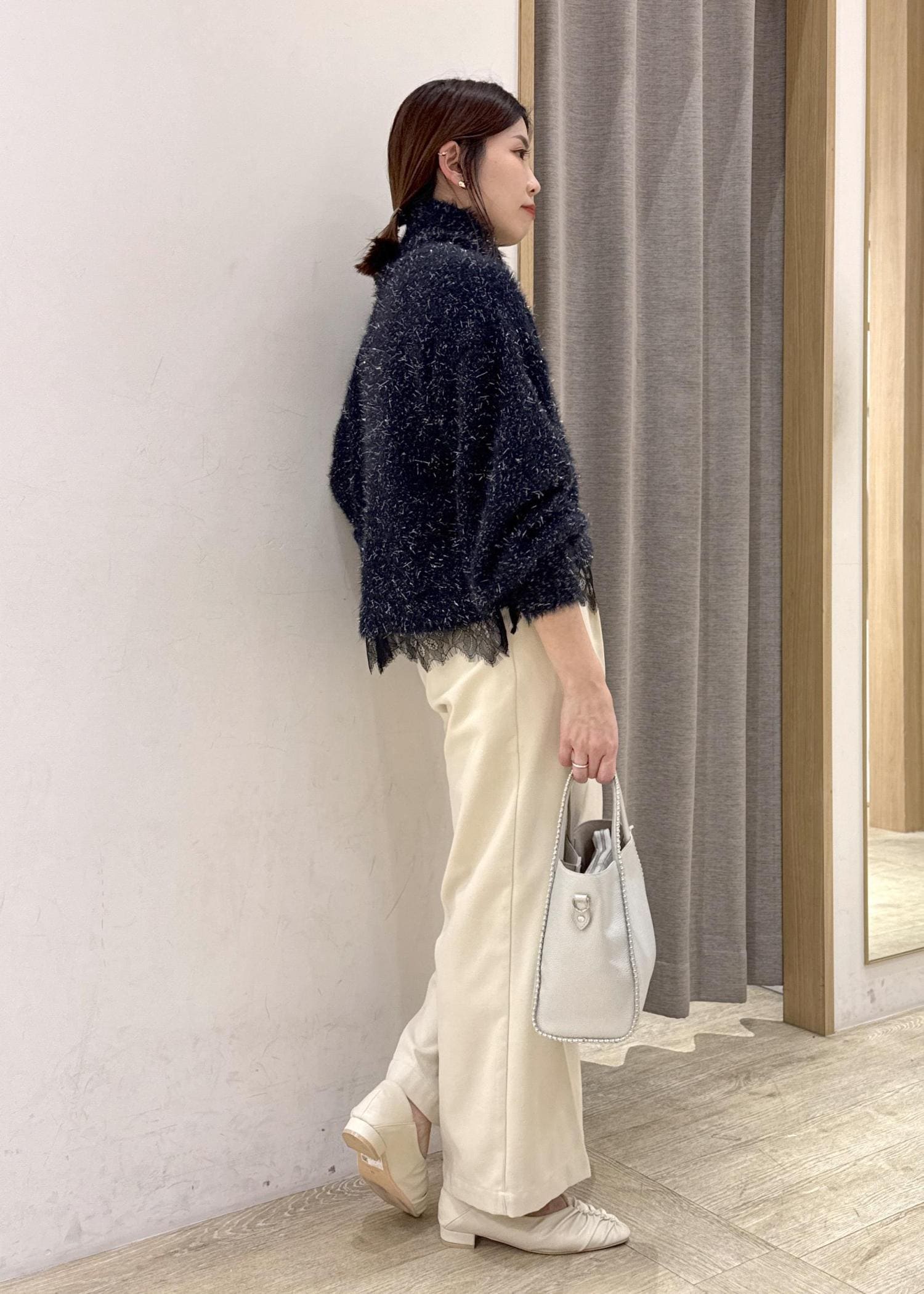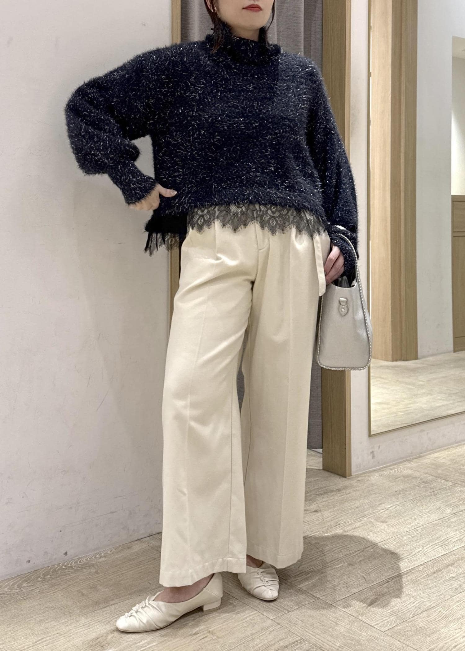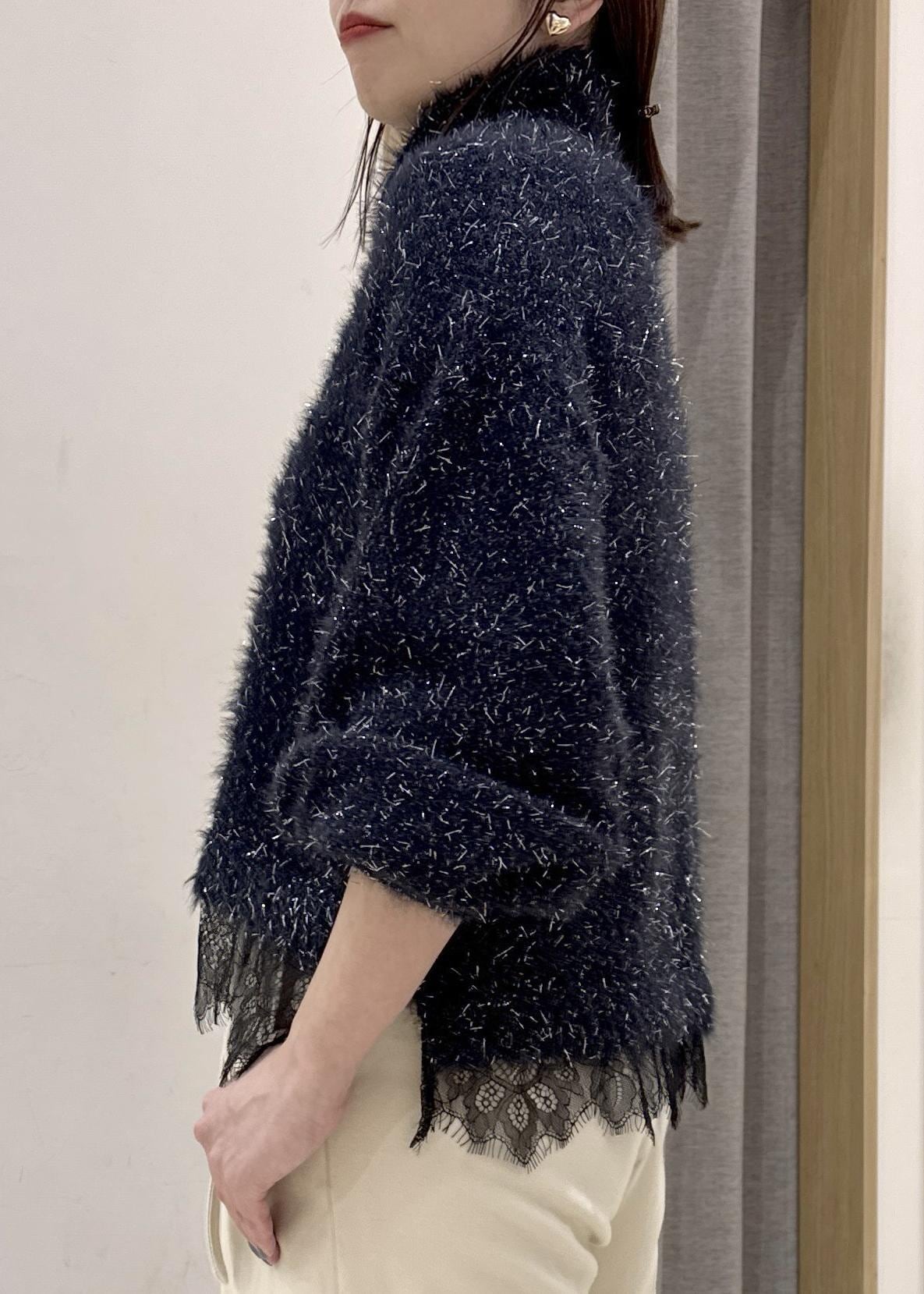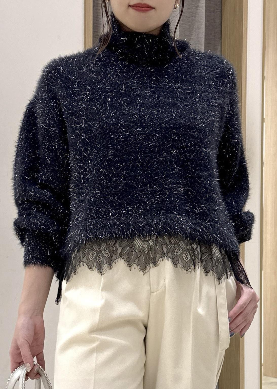 VISラメフェザー裾レースハイネックニットネイビー / F¥6,589レビュー【着心地】