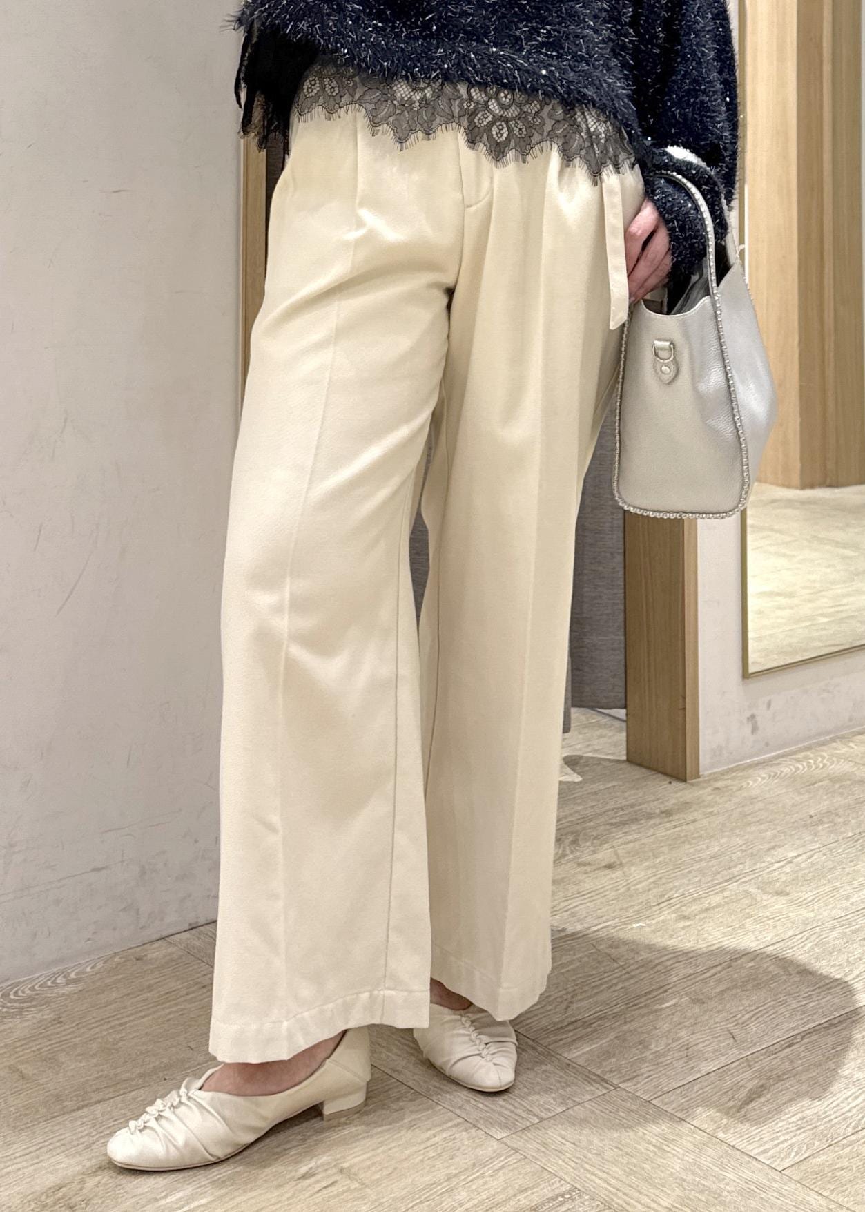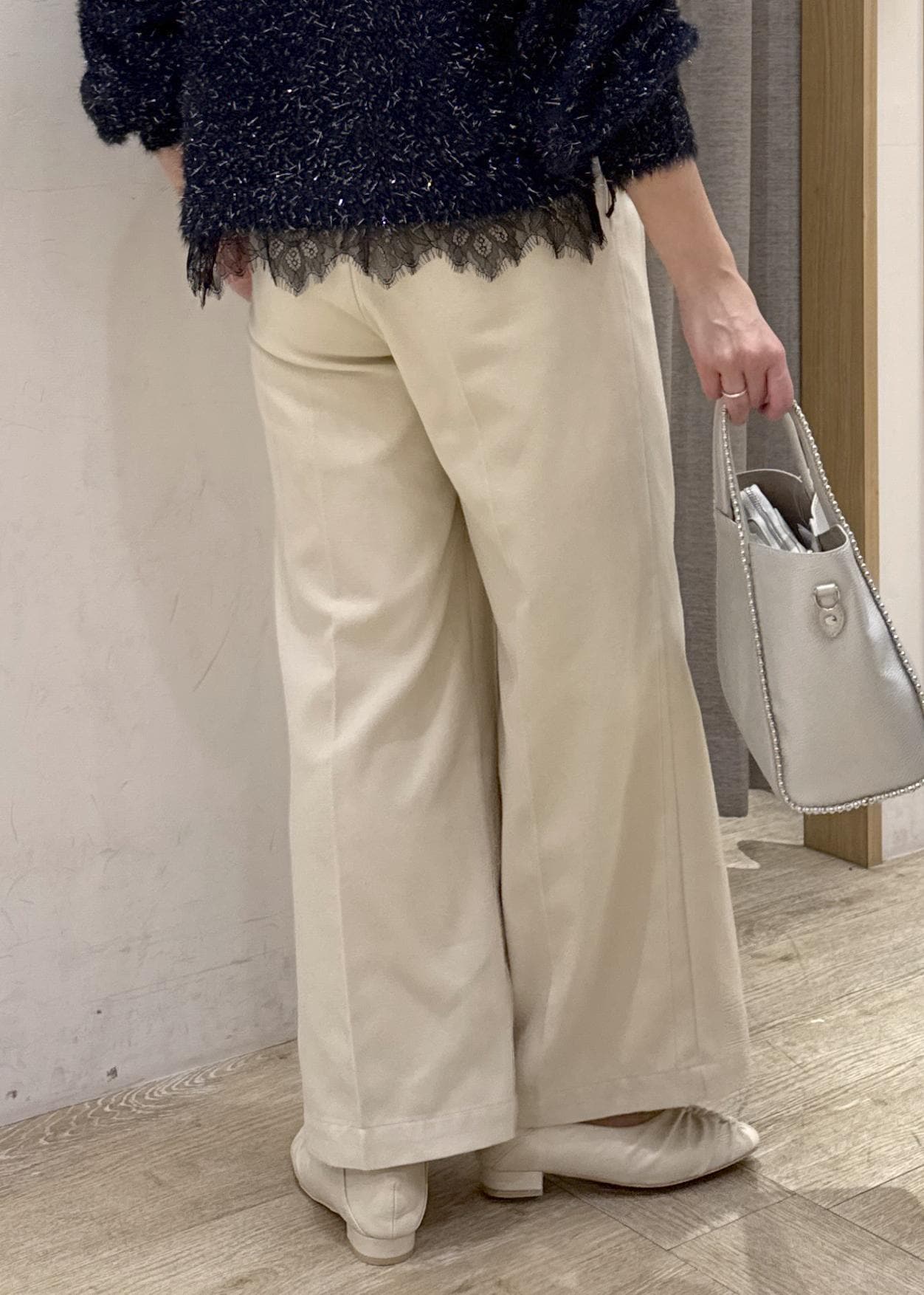 VIS起毛ウールライク版ベルトディテールタックワイドパンツキナリ / S¥6,589レビュー【着心地】