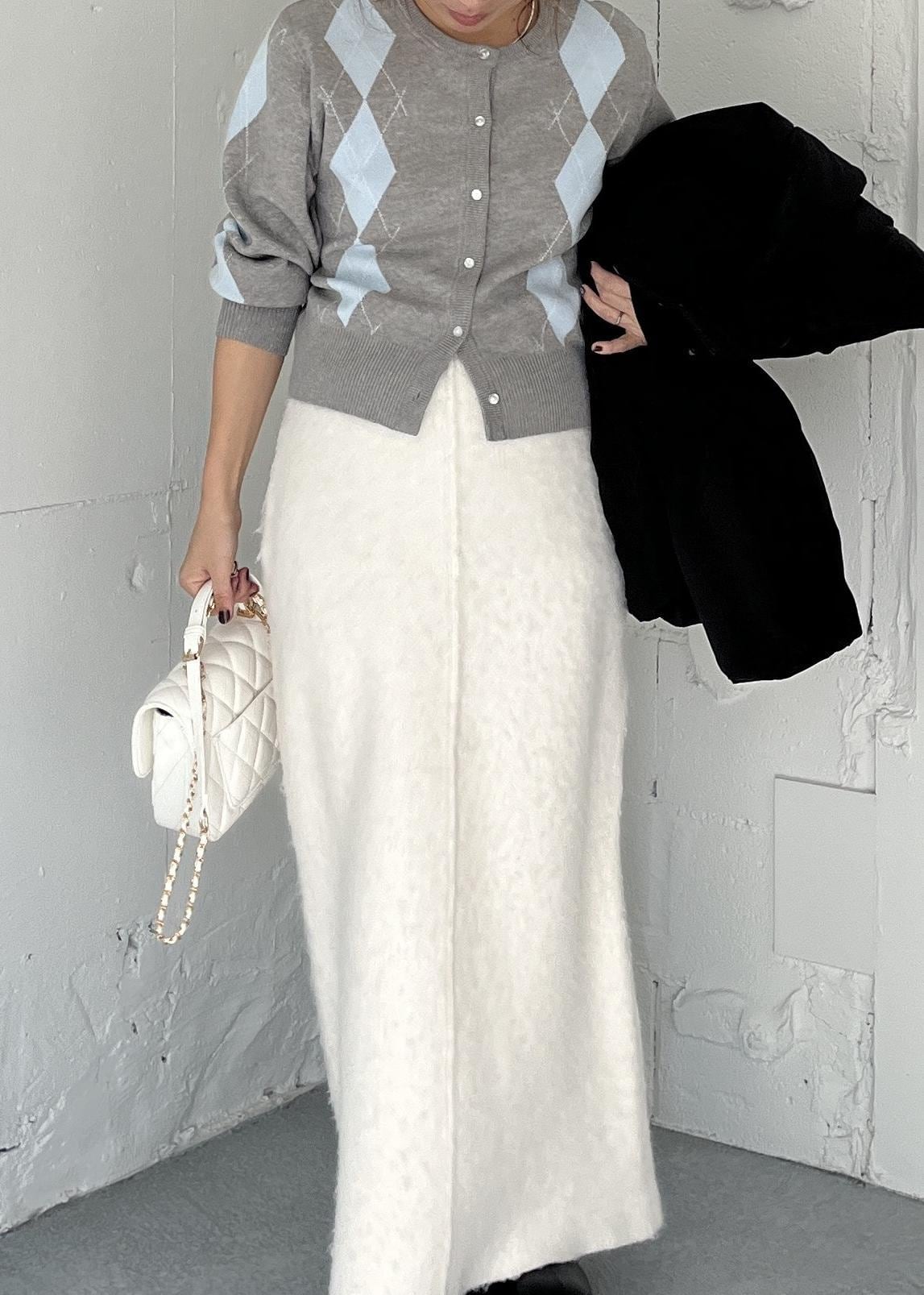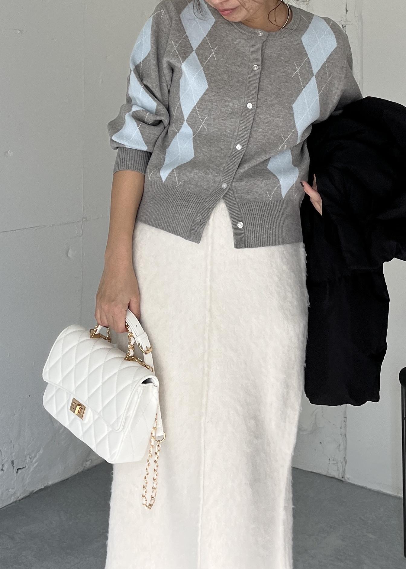 チェックアソートシャギーニットスカート/セットアップ対応