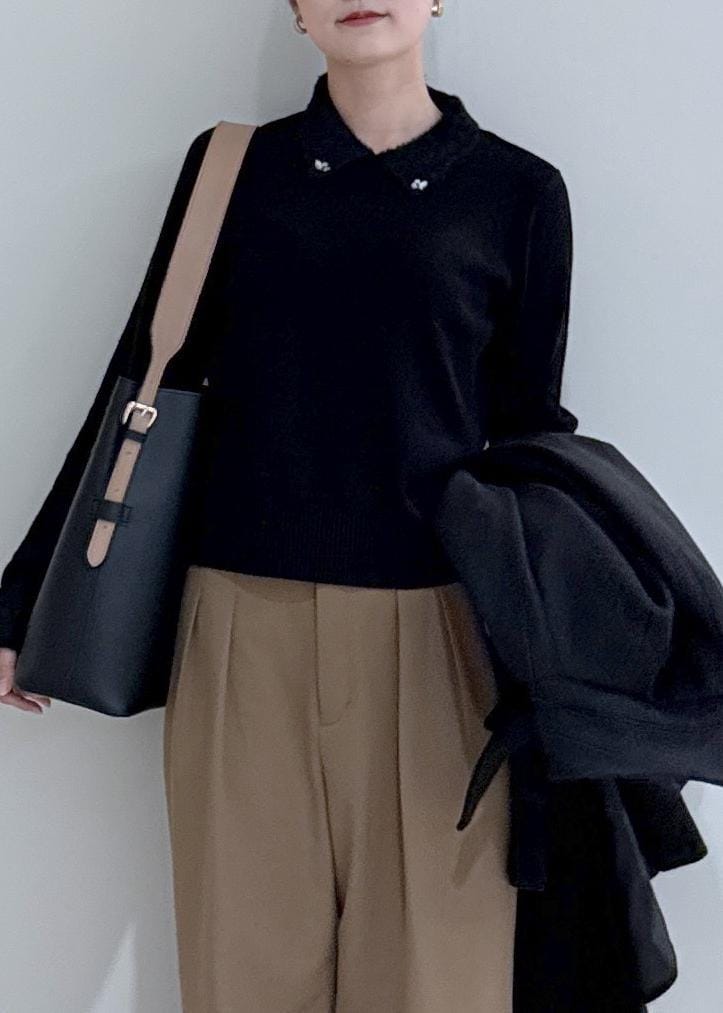 VISビジュー付きシャギーカラーニットトップスブラック / F¥5,489レビュートレンドの襟付きトップス。ビジュー付きでシンプルになりすぎない◎