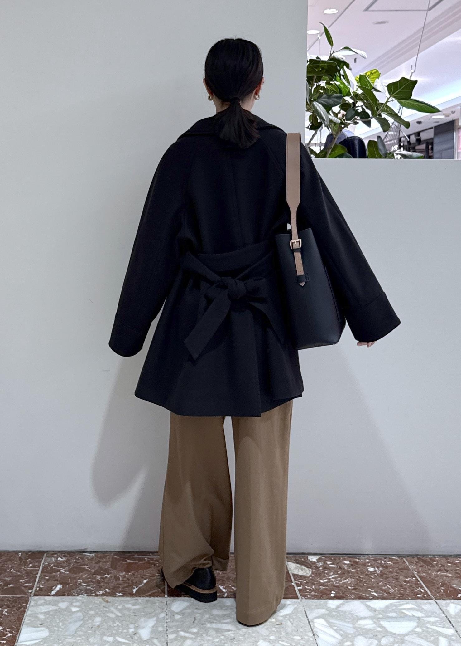 ルーズな印象のワイドパンツですが、ウエストはスッキリしていてメリハリのあるシルエットです。 -