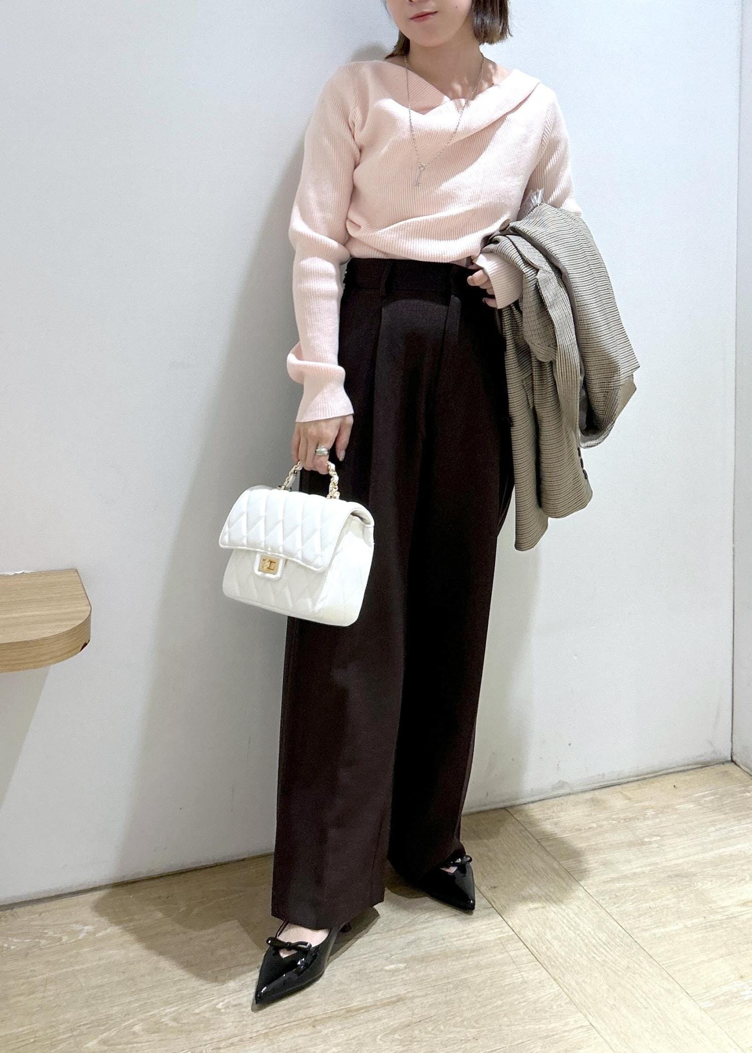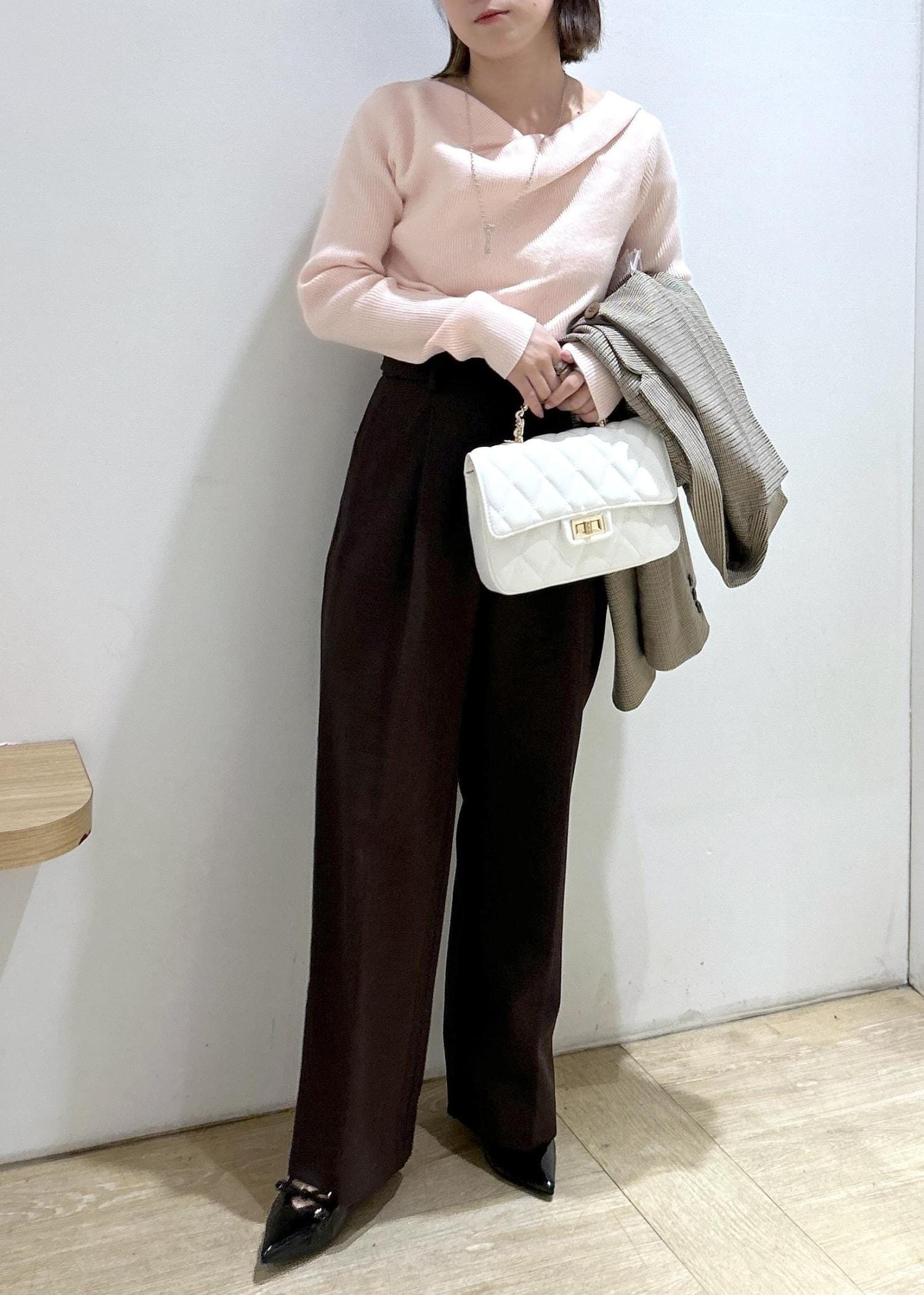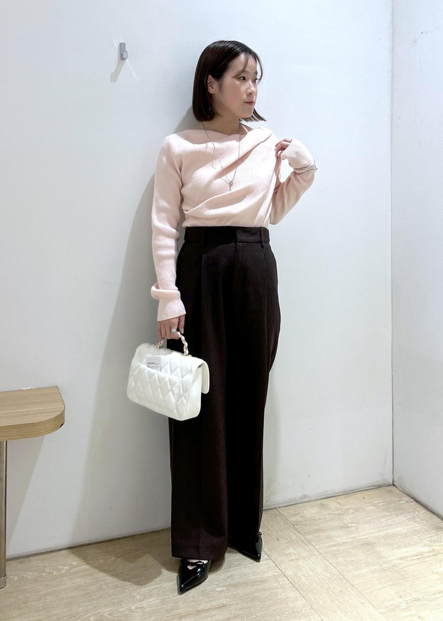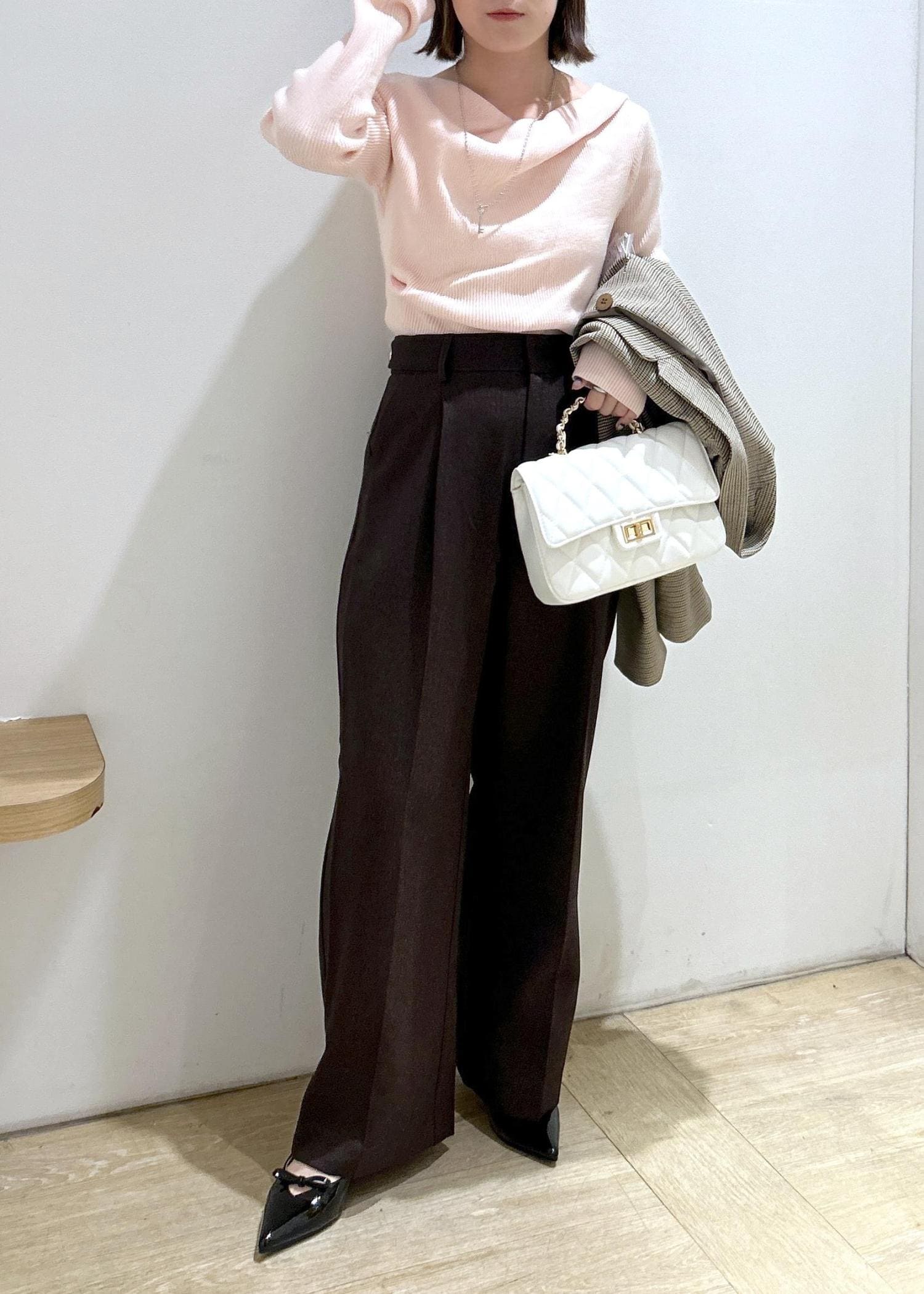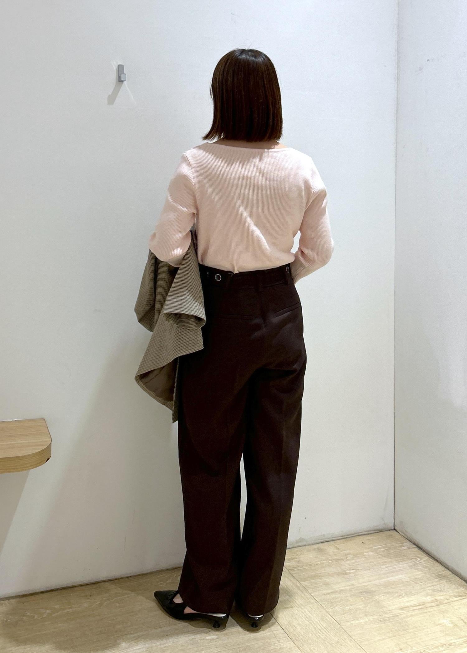 予約VIS【美easy】ウーリッシュワンタックワイドパンツ【セットアップ対応/洗える】ダークブラウン / SS¥6,589レビュー150cmでウエスト、丈のどちらもジャストサイズでした。ウエストが細すぎず、ベルト幅もあるので、お尻や腰骨が目立ちにくいシルエットです。シワになりにくく、お洗濯できます!