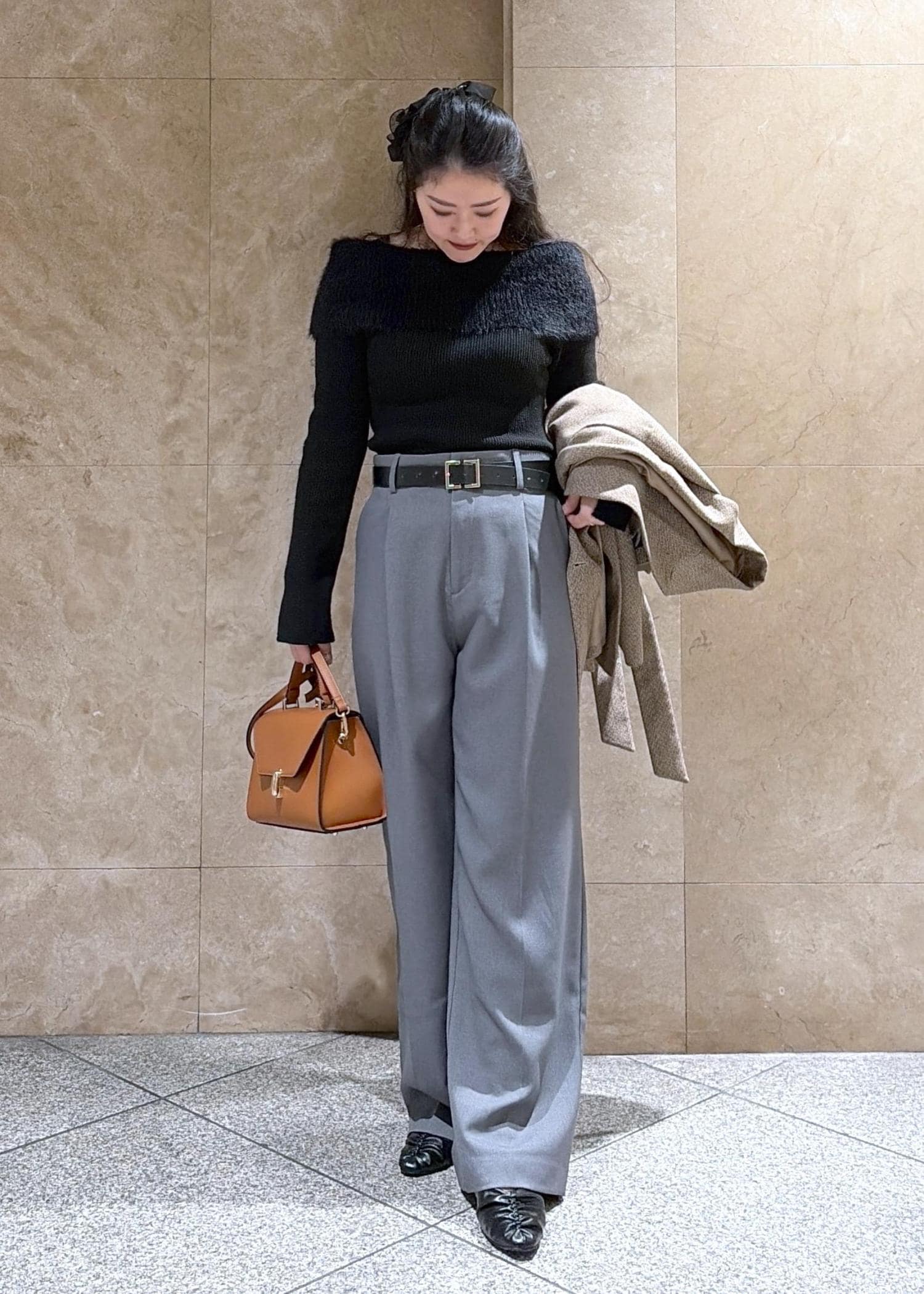 VISフェザーヤーンオフショルもちもちリブニット/イージーケアブラック / F¥5,929レビューオフショルニットにファー付きが登場しました。クリスマス感が一気に増して可愛いです♡♡