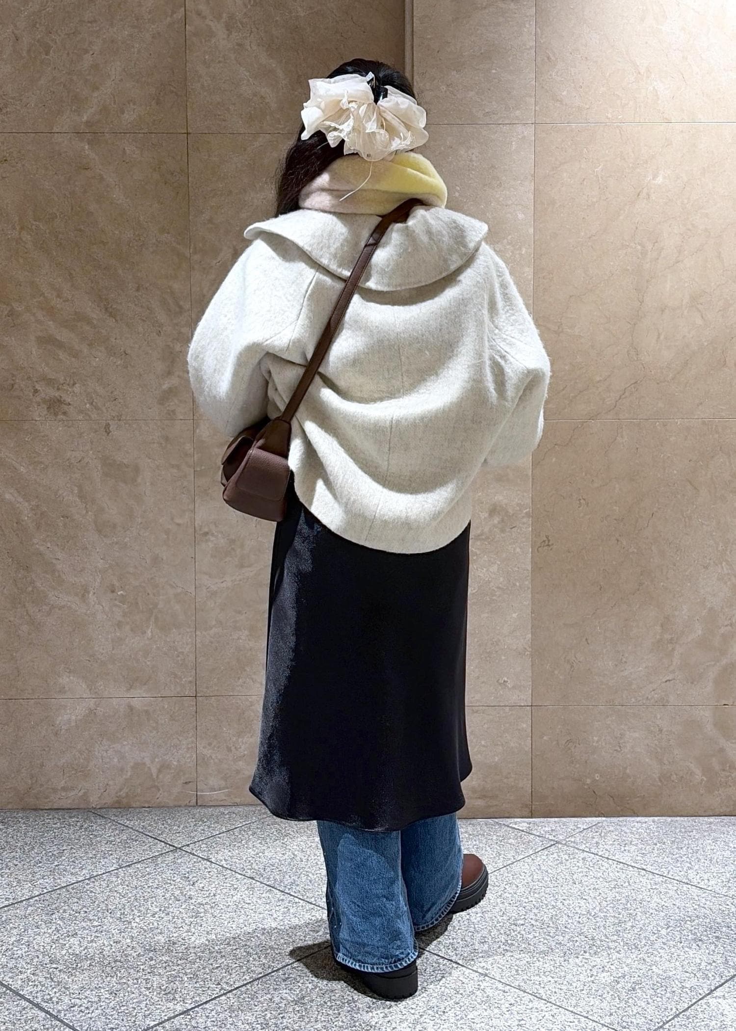 予約VIS【アウター総選挙1位】ビッグカラーモモンガシャギーショートコートオフホワイト / S¥10,989レビュー後ろから見た時のほわんとしたスタイルが可愛すぎて、体型カバーもバッチリ◎