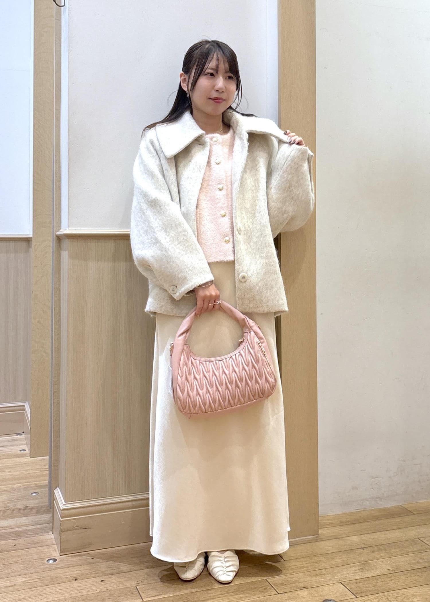 予約VIS【アウター総選挙1位】ビッグカラーモモンガシャギーショートコートオフホワイト / M¥10,989レビュー156センチでSサイズがジャストくらいで、袖は手がしっかり出て動きやすかったです。中に着込んでも苦しくないので、ジャストサイズが好きな方はSサイズで綺麗に着用できると思います!