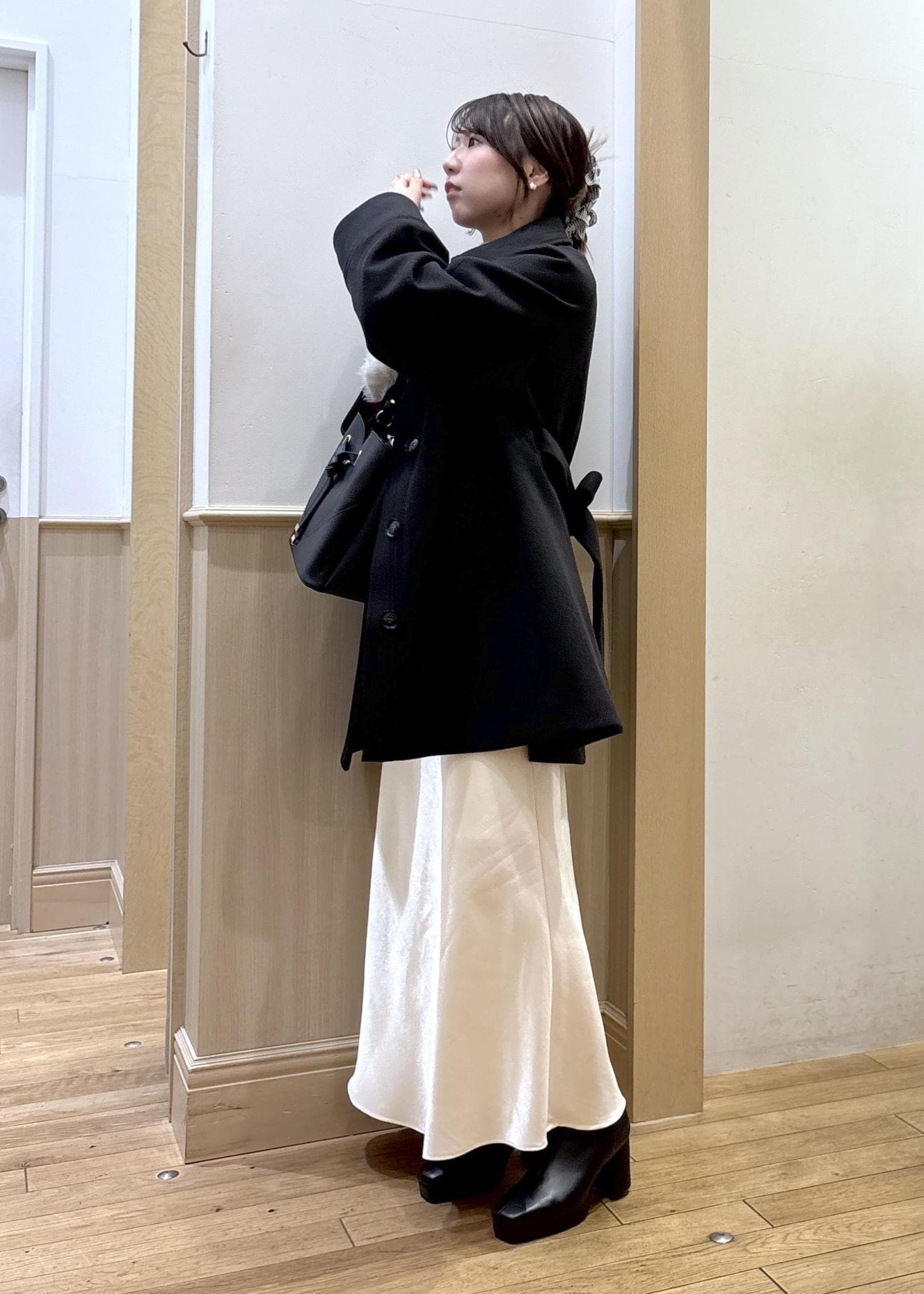 VIS【アウター総選挙2位】フレアーチェスターコートブラック /¥14,080レビューお尻までしっかり隠れるほどよい丈感のアウターです。