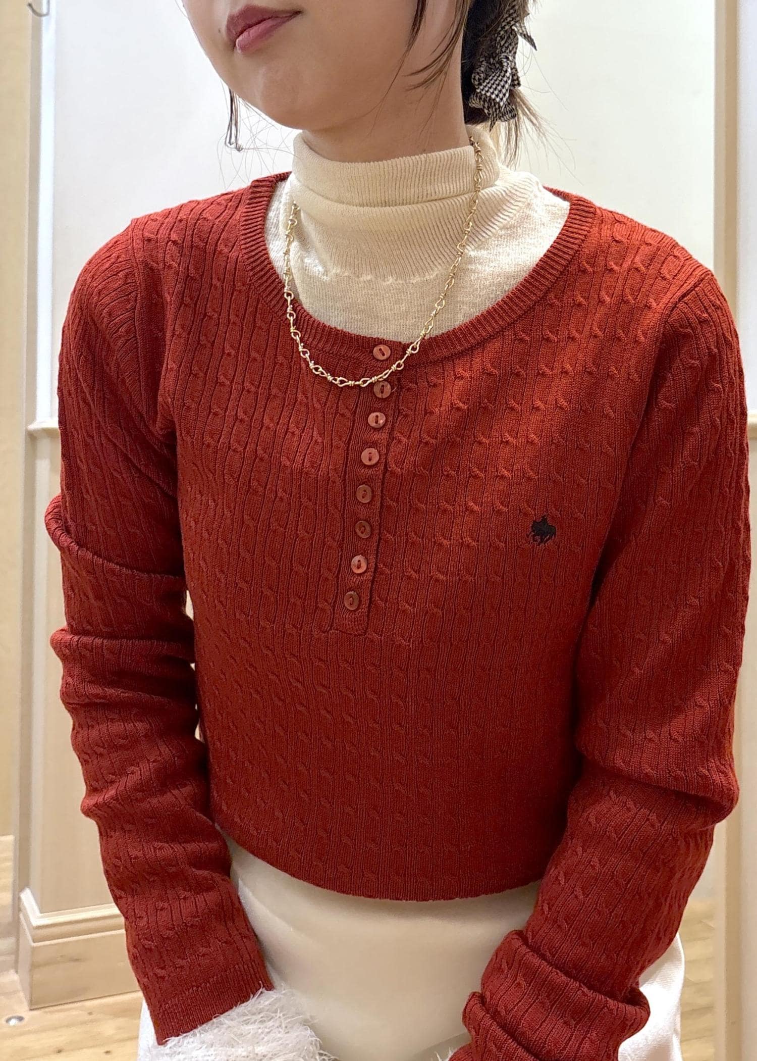 VIS【POLO BCS】VIS別注ヘンリーネックミニケーブルニットトップスレッド系 / F¥6,600レビューほどよく体に沿ってくれるデザインが綺麗なトップスです。インナー使いもできますし、内側にレイヤードで何か着ても着膨れの感じはありませんでした!薄手ニットなので、使い勝手がとても良かったです!