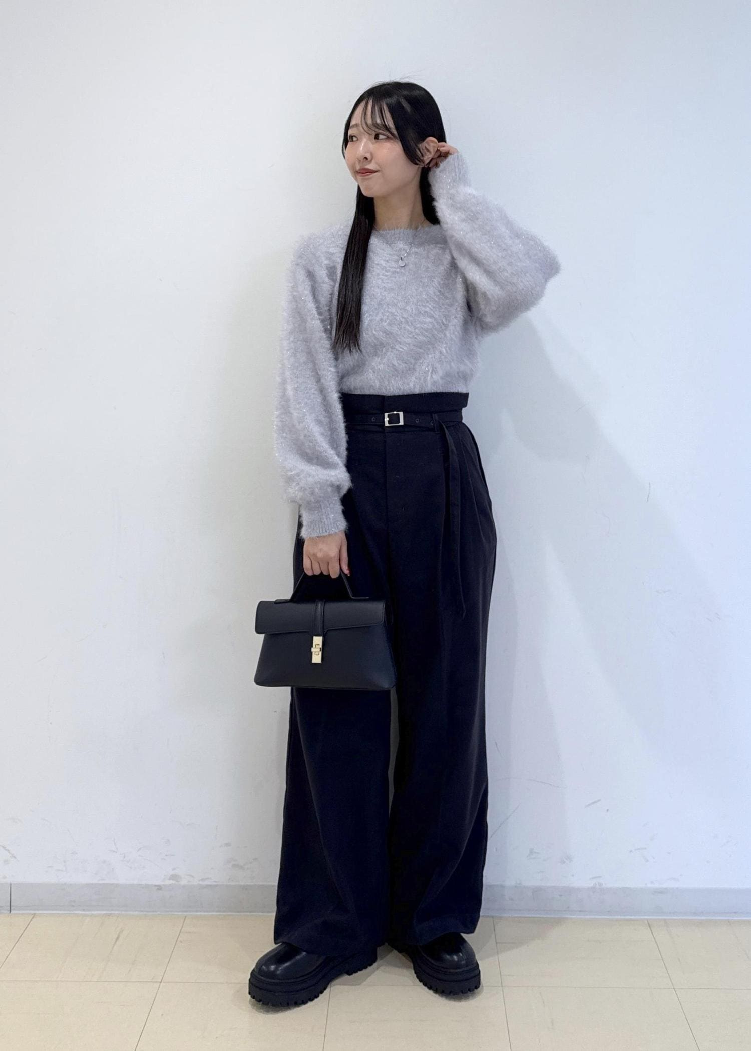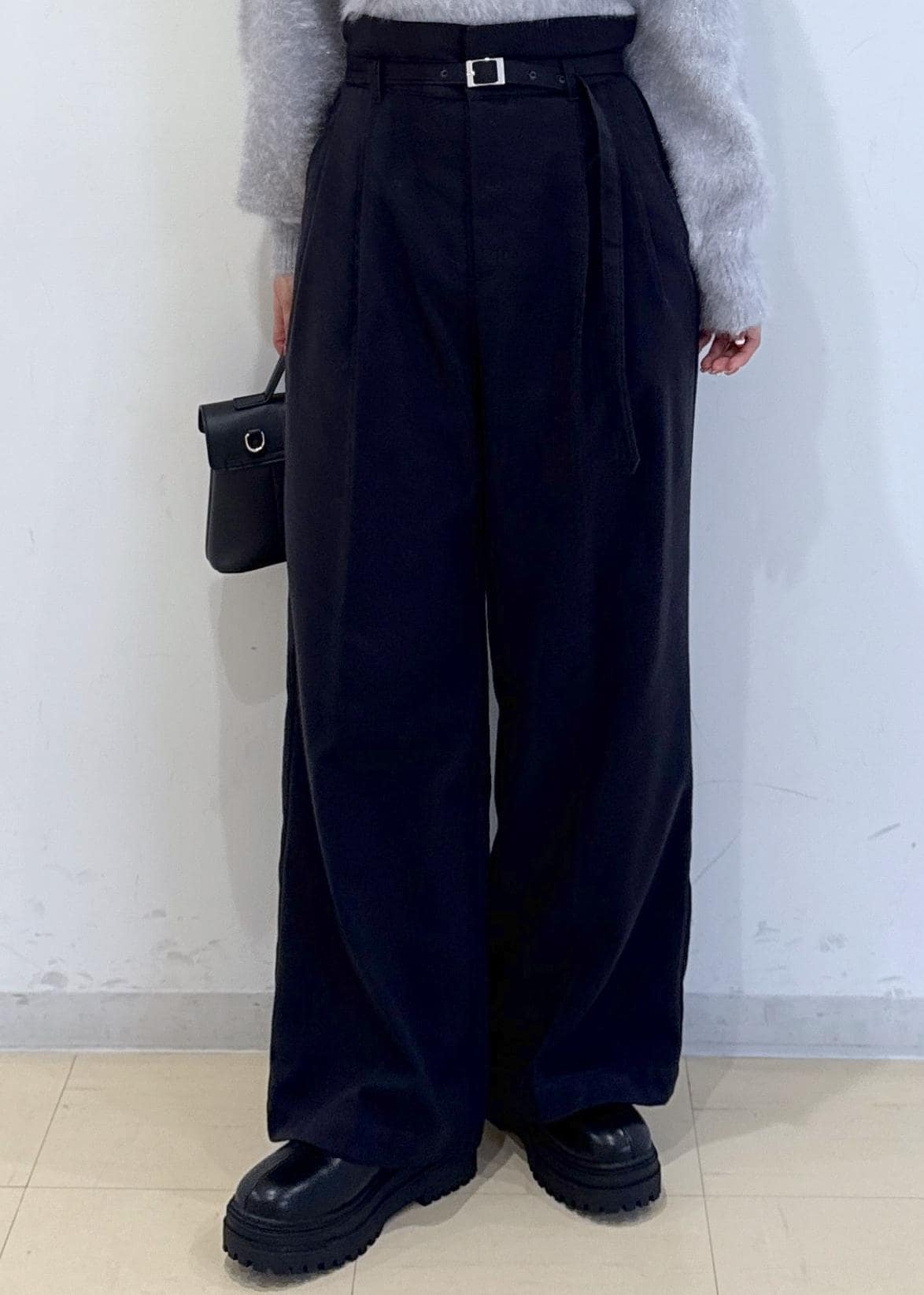 VIS起毛ウールライク版ベルトディテールタックワイドパンツスミクロ / M¥6,589レビュー158cmでMサイズを着用。ペタンコ靴だと下にギリギリするので、白だと汚れます。私はリアルバイして白色汚れてしまったので、このパンツを履く時は厚底で合わせています◎動きやすさ重視でピッタリジャストに履きたい方はSサイズでいいと思います。シルエット綺麗で、裏地もしっかりで暖かいので冬に大活躍する1枚です