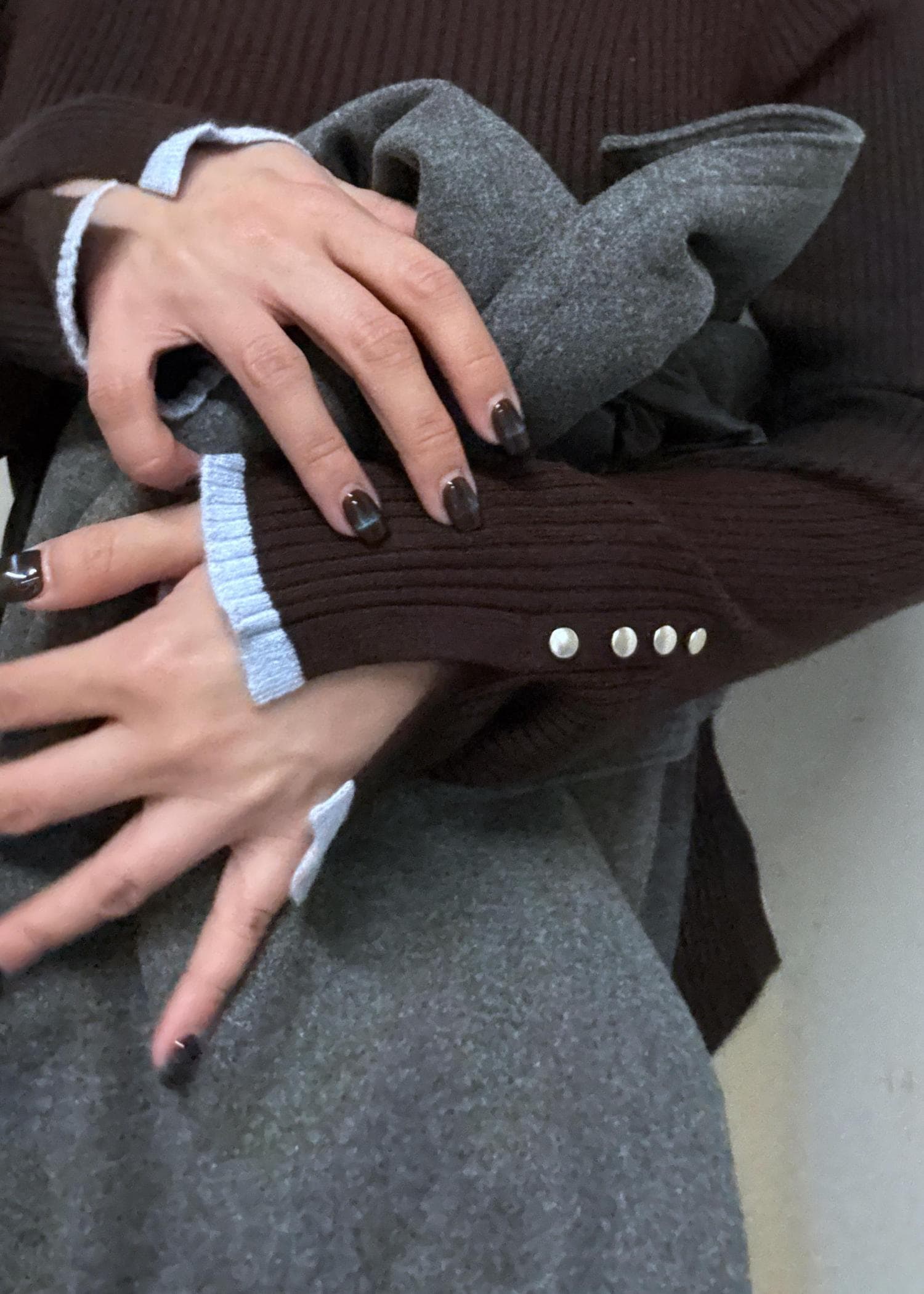 VISスリーブ釦アクセントリブニット/WEB限定FSサイズ・静電気防止ブラウン系 / F¥4,389レビューストレッチ効いていてかなり伸びます。しっとりとしたニット生地でチクチク感はありません。